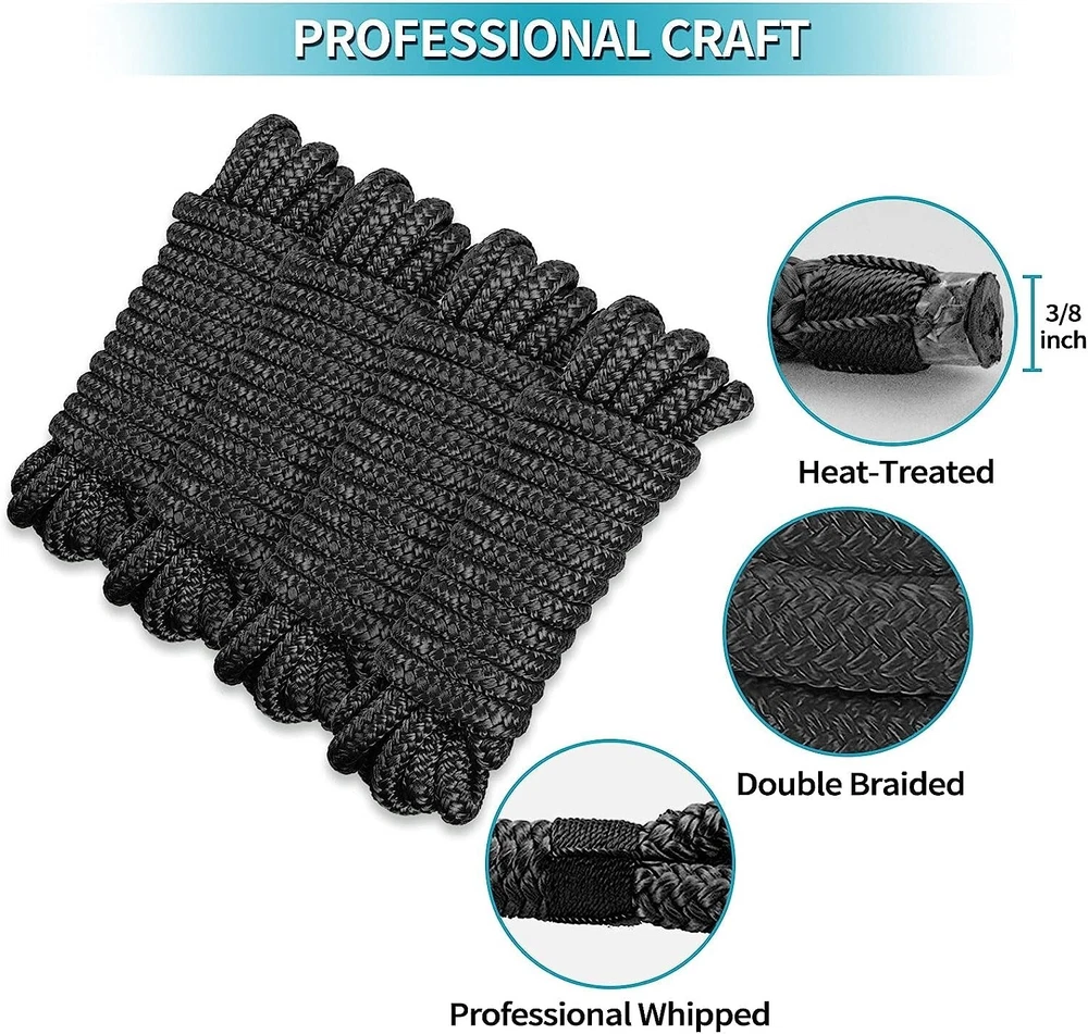 These double-braided nylon fender lines are a game-changer for boat owners! The 3/8" thickness and 15ft length provide perfect versatility, while the sturdy 12" eyelets make attachment effortless. I love that they resist kinking and rotation even under heavy use – they've held up perfectly through multiple seasons. The 4-pack is such a great value, and the black color maintains a clean look. Super impressed with the quality and durability – these outperform more expensive brands I've tried. Shipping was incredibly fast too! Highly recommend for anyone needing reliable fender lines.