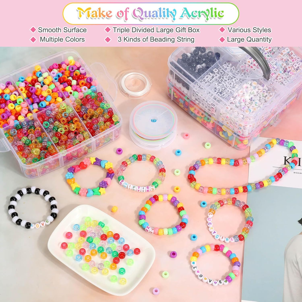 Store New Arrivals Add to Favorite View Feedback Contact Fast deliveries to the customer's home Quality customer service John Make the customers happy! 3800 Pony Beads: Bulk for Bracelets, Hair Braids & Craft - Colorful Plastic, Kandi, Star & Letter Beads for Jewelry Making Description 3800 PONY BEADS KIT: The kandi beads kit includes 700 x colored pony beads, 700 x crystal pony beads, 400 x heart beads, 400 x star beads, 200 x flower beads, 200 x butterfly beads, 600 x colorful letter beads, 400 x black alphabet beads, 200 black and white pony beads,3 rolls of different styles elastic cord and a triple divided box. Great gift for Christmas and birthday. ASSORTED BEADS FOR FRIENDSHIP BRACELET: The pony beads set contains colorful pony beads, heart beads, star beads, letter beads, butterfly beads and flower beads. Different shapes of beads are stored in these three tiers of carrying cases. No mess, easy to store and carry. PREMIUM QUALITY MATERIAL: The shaped pony beads are made of high-quality acrylic with bright colors and smooth surface, not easy to fade or deform, sturdy and durable texture for long time use. These beads come in a variety of lovely shapes and colors, perfect for all kinds of crafts and jewelry making! DIFFERENT STYLES OF ELASTIC CORD: The bracelet making kit comes with 3 rolls of elastic string in white, crystal and rainbow color. These elastic threads can be used to make these craft beads into bracelets, necklaces, braids, and other crafts! WIDE APPLICATION: The assorted pony beads are suitable for most kinds of jewelry making and DIY handicraft projects like bracelets, necklaces, earrings, keychains and handicraft decoration. These colorful kandi beads for crafts can be widely used in classrooms, home, summer camps or party events as decoration or learning tools. Absolutely perfect present for your family, students or friends! Product Description Letter Beads Heart / Star / Flower / Butterfly Beads Pony Beads For Hair Braids For DIY Crafts For Jewelry Making Package Included: - 700 x colored pony beads - 700 x crystal pony beads - 400 x heart beads - 400 x star beads - 200 x flower beads - 200 x butterfly beads - 600 x colorful letter beads - 400 x black alphabet beads - 200 black and white pony beads - 3 rolls of different styles elastic cord - 1 x triple divided box Item model number SK0316 Item dimensions L x W x H 6.69 x 6.3 x 5.51 inches Color Multicolors Material Plastic Country of Origin China Item Weight 1.16 Kilograms Size Various Shapes Beads Model Name Pony Beads Number of Pieces 3600 Product Dimensions 6.69 x 6.3 x 5.51 inches ABOUT US We offer the best prices around on high quality products. Our E-store includes media such as books, movies, music and games while offering electronics, toys, sporting apparel, clothing, tools, general home, garden items and more. SHIPPING We are always working hard to ensure your package arrives as soon as possible. Please understand that some factors like weather, high postal traffic, and the performance of shipping companies are outside of our control. We offer free shipping to the lower 48 states and ship within 2 business days of payment, usually sooner. We do not accept P.O. Boxes. Please provide a physical address. For shipping outside of the continental USA, we only use eBay's Global Shipping Program. The item is shipped to KY and then sent to the rest of the world. International customers are responsible for all duties and taxes. Continue to 'check out' to calculate costs for shipping the item to your country. Messages regarding eBay's Global Shipping Program MUST be directed at eBay EXCLUSIVELY. RETURNS We offer a 30-Day Return Policy on items in which you are not completely satisfied with. You have the option of a full-refund or an exchange of the item. No returns are available on items shipped outside of the USA PAYMENT We accept PayPal. CONTACT US This page content is yet to come Please ad us to your favorite seller and visit again later Thank You CUSTOMER SATISFACTION We try our very best to make sure every customer is completely satisfied. If there's a problem, message us! We're happy to help. WE ACCEPT