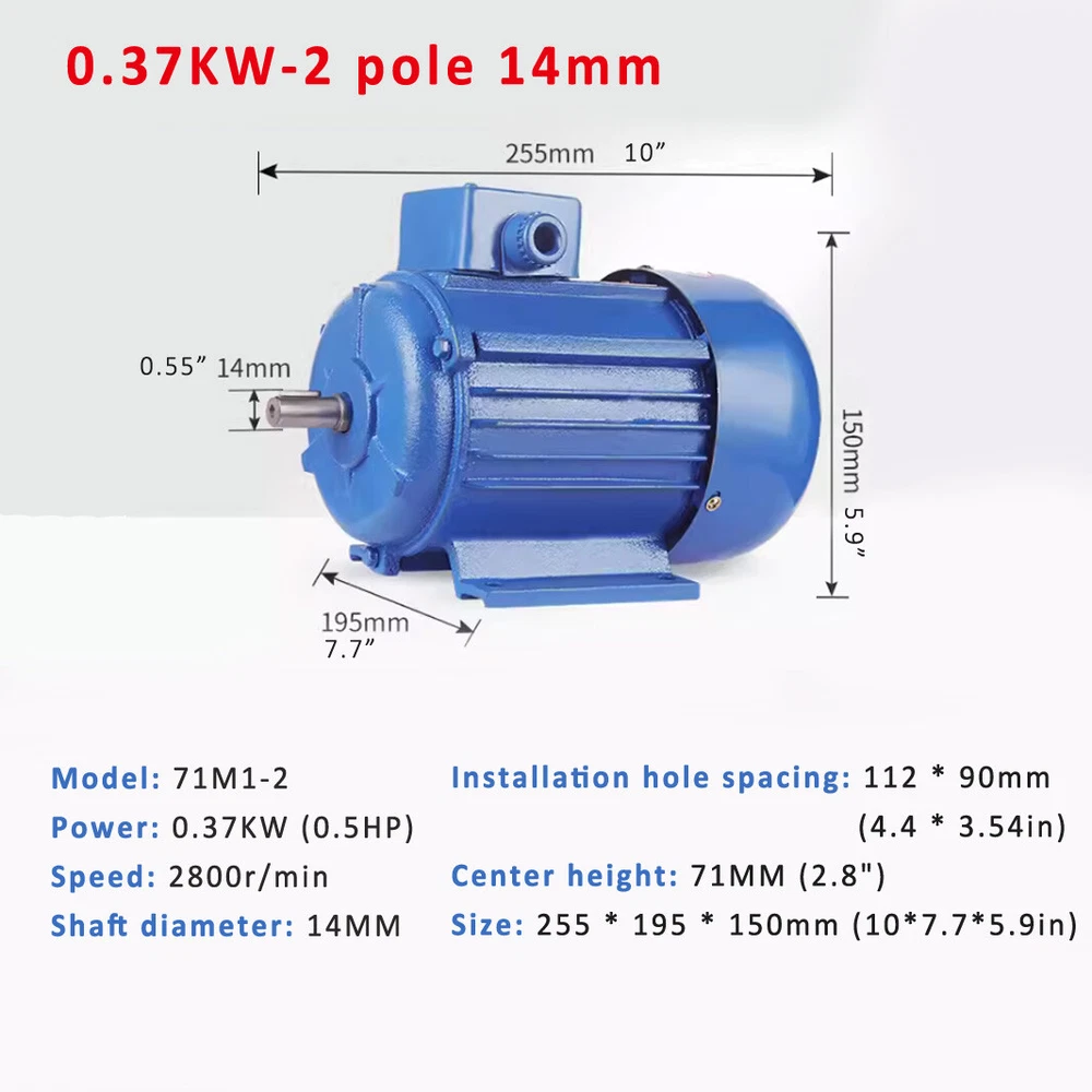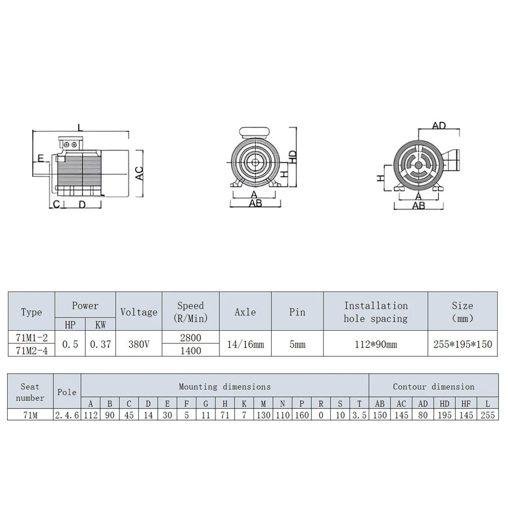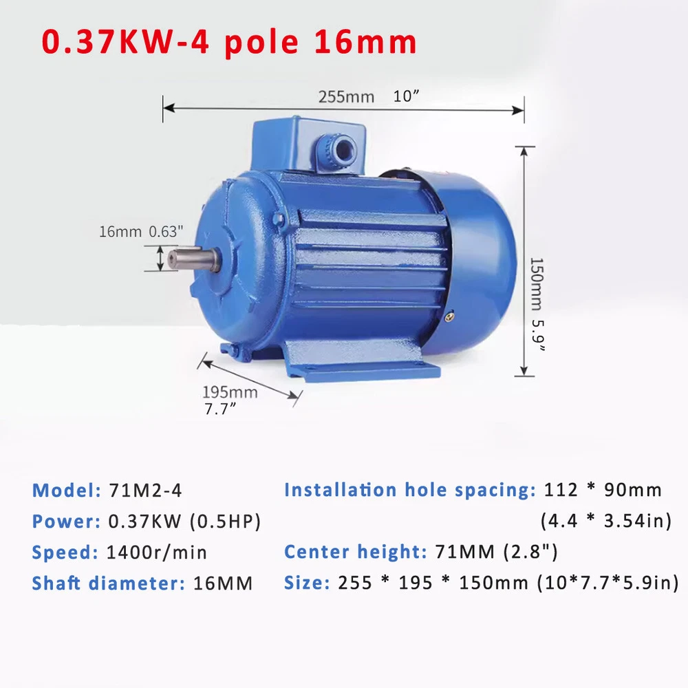 Store Categories Store Categories Lifestyle Home & Garden Tools Sports & Outdoor Electronic Dolls Batteries Accessory Other Product Description Application Air compressors, medical equipment grinding machines, metal cutting machines, pumps, fans, transportation machinery, mixers, food machinery, etc. Specification Model: 71M2-4/71M1-2 Power: 0.37KW (0.5HP) Speed: 1400/2800rpm Voltage: 380V Shaft diameter: 14/16MM Installation hole spacing: 112 * 90mm (4.4 * 3.54in) Center height: 71MM (2.8") Size: 255 * 195 * 150mm (10*7.7*5.9in) Package include 1* Motor Payment Policy Delivery details Terms of sales About us Contact us Payment Policy 1. We accept PayPal only. 2. All major credit cards are accepted through secure payment processor PayPal. 3. Payment must be received within 7 business days of auction closing. 4. If you have bought multiple items from me, you can send me one payment for all the items instead of paying for them individually. When you click the Pay Now button, eBay will automatically determine if there are other items you have won or purchased from me and will combine them for your review. 5. NOTE: Import duties, taxes and chargers are not included in the item price or shipping charges. These charges are the buyer's responsibility. Please check with your country's customs office to determine what these additional costs will be prior to bidding buying. Delivery details 1. We Ship to Worldwide. 2. Items will be shipped within 7-14 business day on payment received. 3. Item are shipped from Shenzhen using Airmail, reach most of the countries within 10 to 35. 4. Delivery time depends on destination and other factors, it may takes up to 40 business days. 5. We are not responsible for undeliverable address, we reserve the right to charge the shipping fee again for returned items due to wrong address. 6. If you do not receive your item by 30 business days, Please feel free to contact us via ebay mail system, we will try our best to resolve any problems with you. Terms of sales 1. You have 7 day to contact us and 10 days to return it from the date it was received. If this item is in your possession more than 7 days, it is considered used and WE WILL NOT ISSUE YOU A REFUND OR REPLACEMENT.There are NO EXCEPTIONS! 2. All Returned items Must Be in the original packaging and you MUST PROVIDE us with the shipping tracking number, specific reason for the return,and your ebay ID. 3. We will refund YOUR FULL WINNING BID AMOUNT, upon receipt of the item in its original condition and packaging with all components and accessories included, AFTER BOTH Buyer and Seller cancel the transaction form ebay.OR, you may choose to have a replacement. 4. Return shipping is to be paid by the Buyer. About us 1. We strive for our customer satisfaction at best possible. If you have any questions, please feel free to email our service specialists 24 Hours a Day, 7 Days a week. We will reply you ASAP. If no response within 24 Hours, please check the spam in your mail box. 2. We greatly appreciate your POSITIVE feedback. Please do NOT leave negative feedback without asking for help. Our aim is to provide Top Level Customer Service, normally so we will try our best to solve any problem you have. 3. Please DON'T leave negative or neutral feedback if you haven't received item in 30 days, because we have mentioned the shipping time repeatedly. Contact us Our customer-oriented service strives for positive feedbacks with all 5 star selling ratings . Please feel free to contact us via eBay message once you have any question before you giving us negative feedback or open case. Business time: GMT8 (9:00-18:00) from Monday to Friday Copyright © 2023 Dianxiaomi