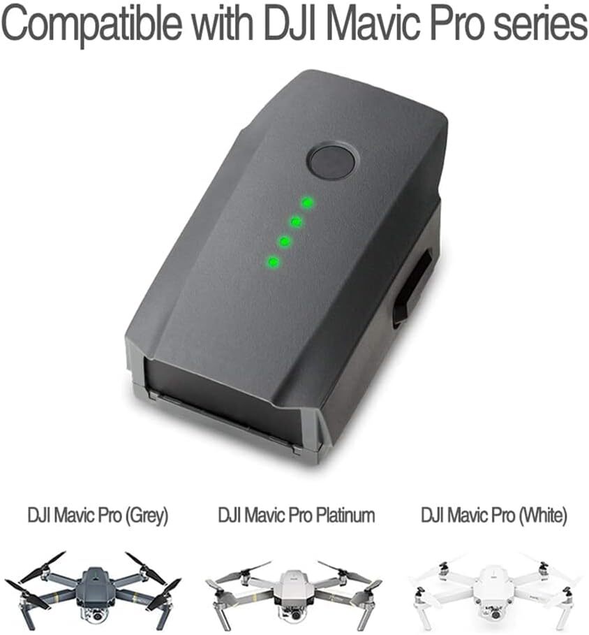 3830mAh 11.4V LiPo Intelligent Flight Battery Compatible for DJI Mavic Pro Drone About this item Intelligent Flight Battery: Cell Type: Rechargeable LiPo | Voltage: 11.4V | Capacity: 3830mAh, it can provide 25-30 minutes of flight time on a single charge, battery life varies with environment and flight mode. 100% Compatibility: The sturdy copper pin can maintain good contact with the drone and the charger. Compatible with DJI Mavic Pro, Mavic Pro Platinum, (NOT fit for Mavic 2) Built-in 4 LED indicator lights to show how much power, that is remaining at the touch of a button. Built-in intelligent charge and discharge protecting IC that can prevent batteries from short-circuit, over-charge, over-discharge, over-voltage, over-current, and over-heating Product Description Specifications: Battery type: Lithium-Polymer Battery Output voltage: 11.4V Capacity: 3830mAh Power: 43.6Wh Battery Weight: 230g /8.11oz Power ON/OFF: Press once and holder the circular power button for 2 seconds to power on/off Compatible with: DJI Mavic Pro DJI Mavic Pro Platinum DJI Mavic Pro Alpine White Original DJI Mavic Pro Charger Not compatible with DJI Marvic 2 NOTE: Please fully charged the battery before the first-time flight, and make several times flight test to make sure the battery fits your Mavic Pro Drone. And better charge with the OEM charger to avoid problems. Product Guarantee: Any problem, please feel free to contact us. Please click the "Ask a question" on our storefront or in "YOUR ORDER" options click the "contact seller". Tips: 1. Please fully charge the battery before each use. 2. Do not subject batteries to adverse conditions such as extreme temperature, deep cycling. Never leave a charging lithium battery unattended. 3. When the battery is unused, please take it out from the drone and store it in a dry, clean, cool, away from heat and metal objects. 4. When the battery is not used for a long time, we recommend using the battery at least once every two to three weeks. 5. After use, it is recommended that the battery be cooled and then recharged.