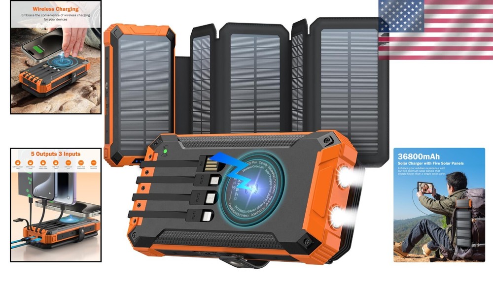 36800mAh Solar Power Bank - Wireless Charger with 5 Outputs & Dual Flashlights ‹ › ‹ › ‹ › ‹ › ‹ › ‹ › ‹ › ‹ › ‹ › 36800mAh Solar Power Bank - Wireless Charger with 5 Outputs & Dual Flashlights Features: High Capacity: Massive 36800mAh battery for safety, durability, and long-lasting performance. Five Solar Panels: Faster charging speeds than single-panel alternatives for an enhanced experience. Built-in Cables: Four built-in output cables that cater to a variety of charging needs. Multi-Device Compatibility: Power up to five devices simultaneously for unparalleled convenience. Wireless Charging Technology: Enjoy quick, cable-free charging on-the-go. Bright Dual Flashlights: Two powerful LED flashlights for illumination during nighttime, emergencies, or outdoor exploration. Durable Protective Design: Features silicone covers for ports, offering drop, dust, and water resistance. Convenient Portability: Includes a carabiner clip to attach to your gear or backpack for hands-free charging. Benefits: No more hassle with multiple charging cables. Stay powered up during vacations, camping trips, or emergencies. Easy portability ensures you can take it anywhere. Reliable light source for outdoor activities at night. Offers peace of mind with a lifetime warranty and dedicated customer support. Why choose our Solar Power Bank? Upgrade your charging experience with our 36800mAh Solar Power Bank. Not only does it provide a powerful battery for your devices, but the five solar panels ensure faster charging on-the-go. Never worry about having the right cable again with the built-in options, and experience the freedom of wireless charging wherever you are. With two bright LED flashlights, feel secure during night adventures or unexpected power outages. Durable, portable, and backed by a lifetime warranty, this is the perfect companion for your mobile lifestyle. Make the smart choice today - order your Solar Power Bank and stay connected effortlessly! Shipping Free & Fast Shipping - We offer free shipping to most of the USA with a normal delivery time of 3-7 days. However, due to the current situation, additional delivery time (up to 3 weeks) may be required for some items. Alternative Carriers - We may use alternative carriers (e.g. USPS, FedEx, UPS, etc.) to ensure your package arrives safely and on time. Due to the use of multiple carriers, we are unable to provide a tracking number automatically. Handling Time - Orders are processed and shipped within 1-2 business days of receiving cleared payment. Shipping Restrictions - Shipping to Alaska, Hawaii, Puerto Rico, Guam, and other US territories may incur shipping charges or delivery restrictions. Please contact us before ordering, or your order can be refunded/cancelled. State Restrictions - There may be restrictions based on your state of purchase. For example, certain items may not be shipped to California due to state regulations. Contact for Tracking Updates - If you require tracking updates or have any concerns about the delivery of your order, please feel free to contact us, and we will be happy to assist you. Return Please see our eBay Return Policy. Thank you. Payment We accept all major credit cards, PayPal, and Apple Pay for your convenience. Your payment information is secure and encrypted to ensure a safe and seamless transaction. Please complete your payment within 3 days of purchase to avoid any delays in shipping. Feedback Your feedback is extremely important to us. We strive to provide the best products and customer service possible. If you are satisfied with your purchase, please take a moment to leave us a positive review. If you have any concerns or issues with your order, please contact us before leaving negative feedback. We are committed to resolving any problems and ensuring your satisfaction. Contact Us If you have any questions or concerns, please feel free to reach out to our customer support team. You can contact us through the eBay messaging system. We are available Monday to Friday, 9:00 am to 5:00 pm EST, and we will do our best to respond to your inquiry within 24 hours. Thank you for supporting our small family business! UPC: Not Set Wireless Charging Standard: Wireless Charging Item Height: Not Set Item Length: Not Set Item Weight: 1.32 pounds Item Width: Not Set Unit Quantity: 1 Connectivity: USB Type C,iOS Items Included: Carabiner,Built-in Cables,LED Flashlights Mounting Location: Not Set Compatible Brand: Not Set Compatible Model: Universal Design/Finish: Durable,Weather-resistant Features: Wireless Charging,High Capacity,Fast Solar Charging,Multi-device Charging,LED Flashlights,Durable Safety Design,Built-in Cables Theme: Not Set Brand: Unbranded Type: Solar Power Bank Number of Ports: 5 Color: Orange Voltage: 5 V Material: Plastic Cable Length: Not Set Mounting Type: Clip MPN: Not Set Country/Region of Manufacture: Not Set Manufacturer Warranty: Not Set Unit Type: lb Personalize: Not Set