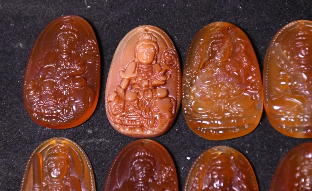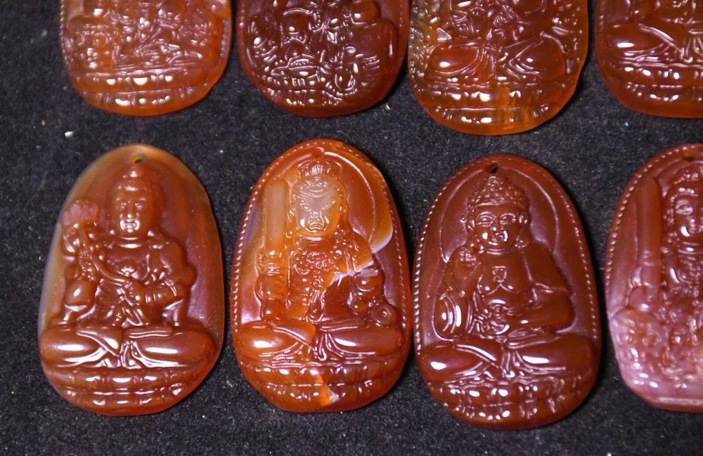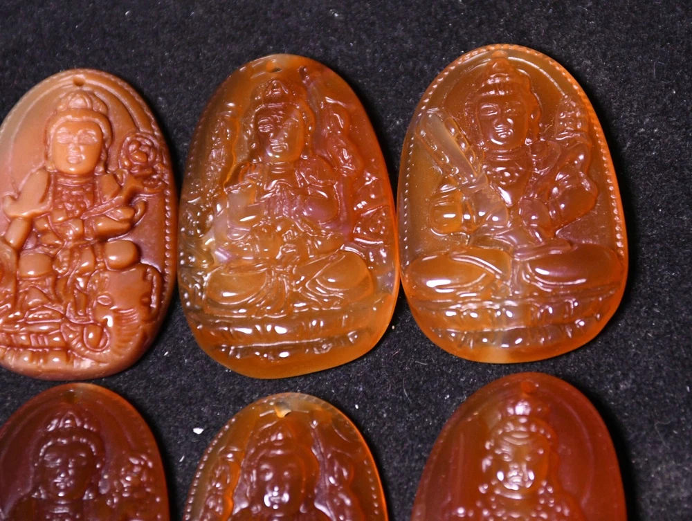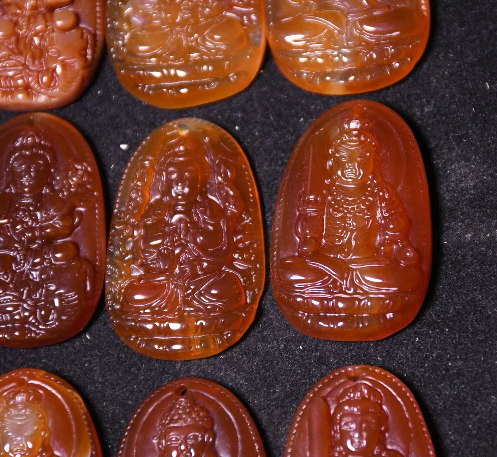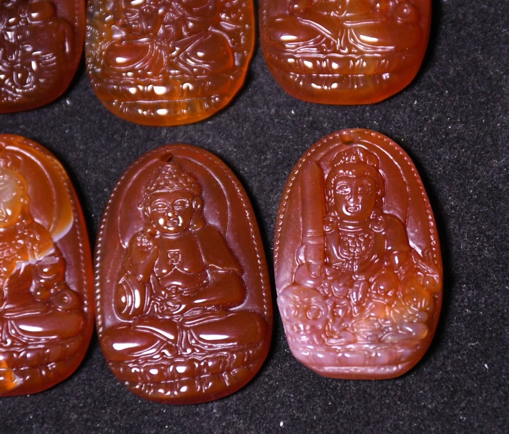 3.8CM China Agate Onyx Carved Kwan-yin Shakyamuni Buddha Amulet Pendant Set