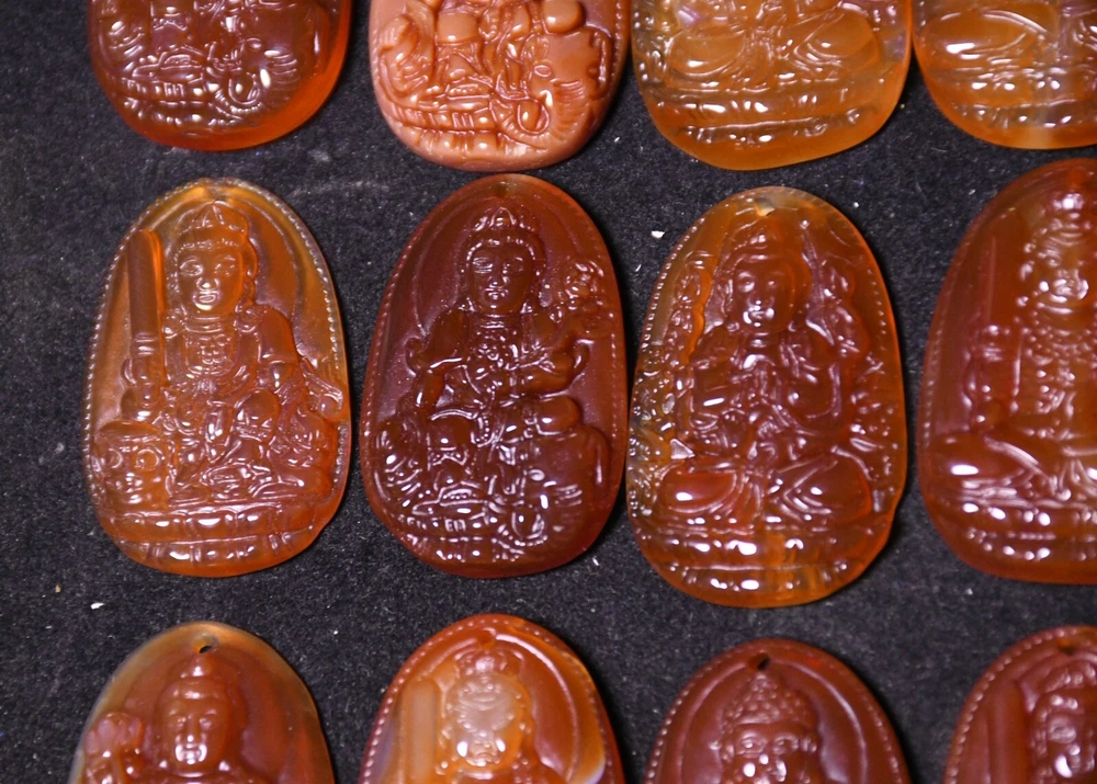 Seller Notes: “3.8CM China Agate Onyx Carved Kwan-yin Shakyamuni Buddha Amulet Pendant Set” Primary Material: Agate Onyx Region of Origin: China Maker: Size: Height 3.8 CM.Long 2.5 CM. breadth 0.5 CM