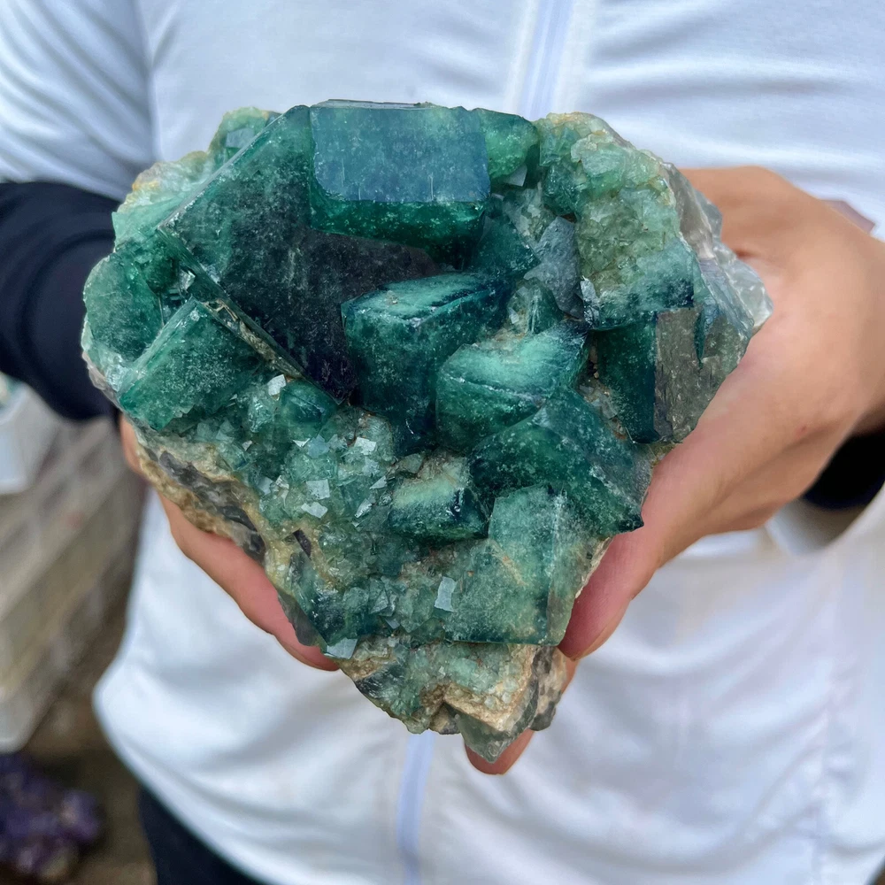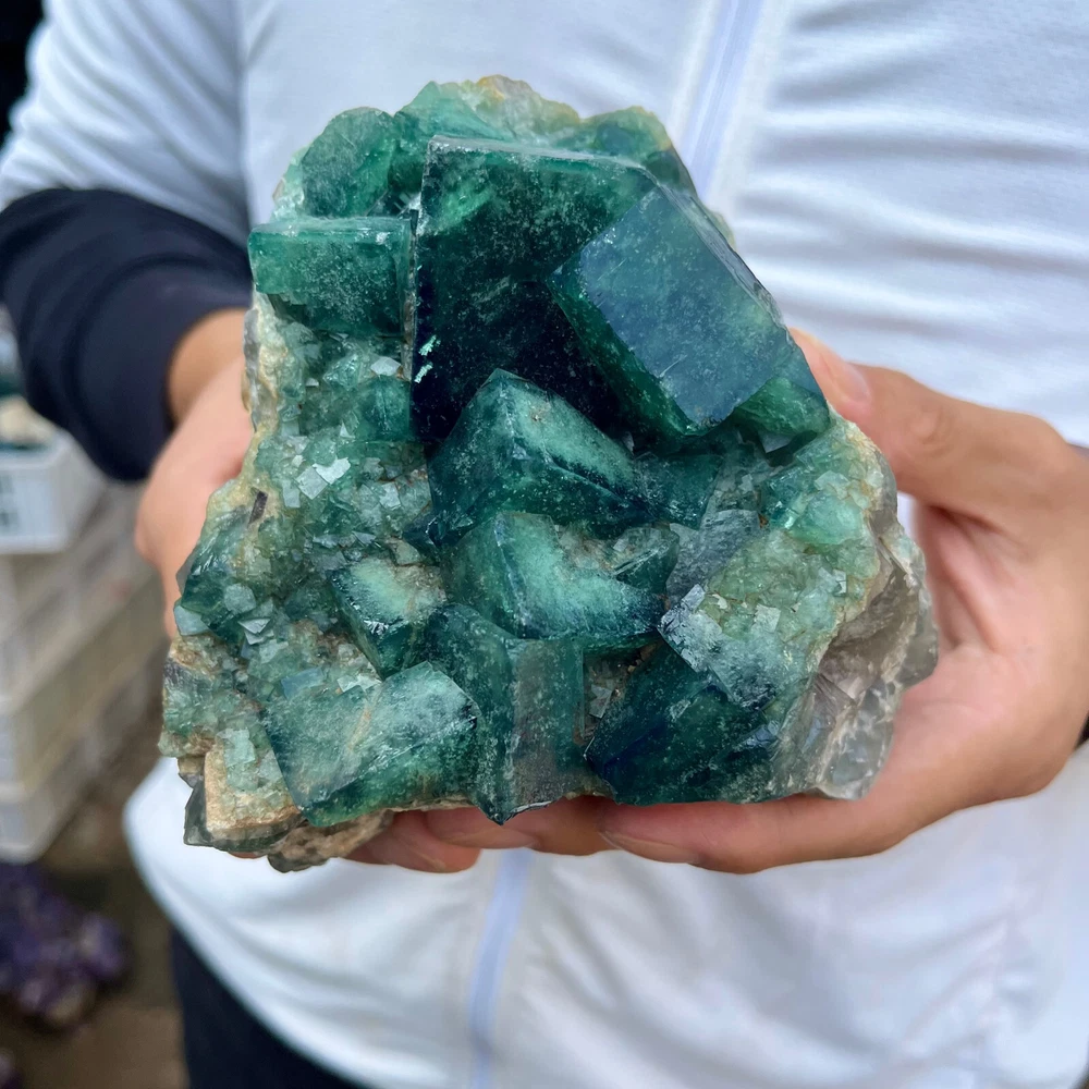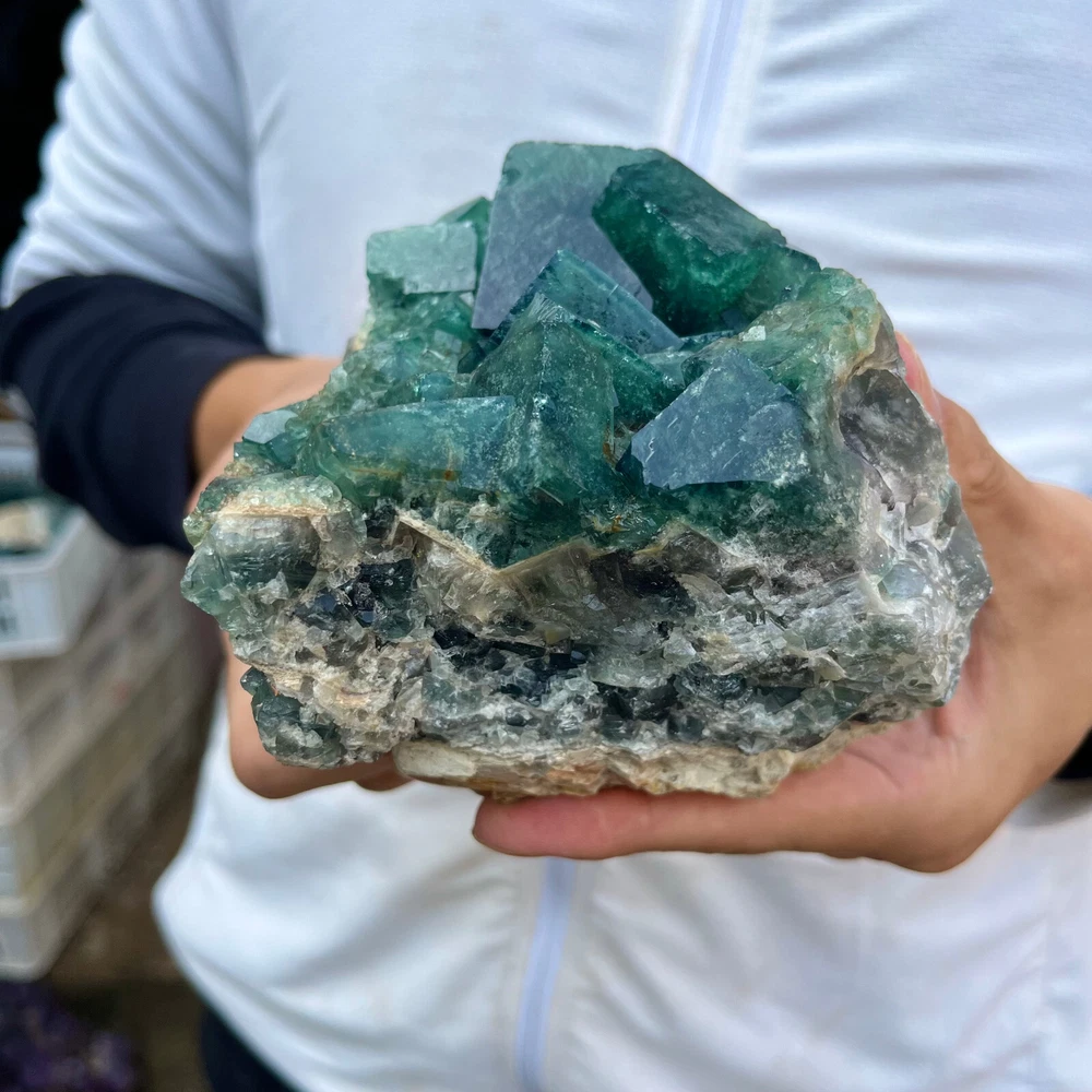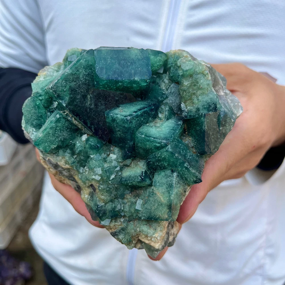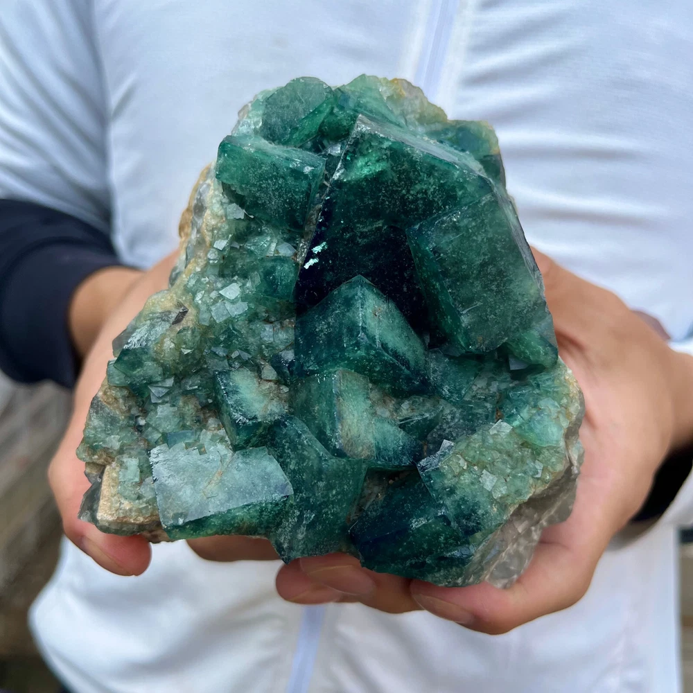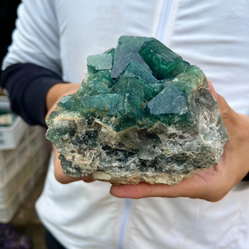 $ 95.043.8LB Natural Green Cube Fluorite Quartz Crystal Cluster Mineral Specimen for Collectors