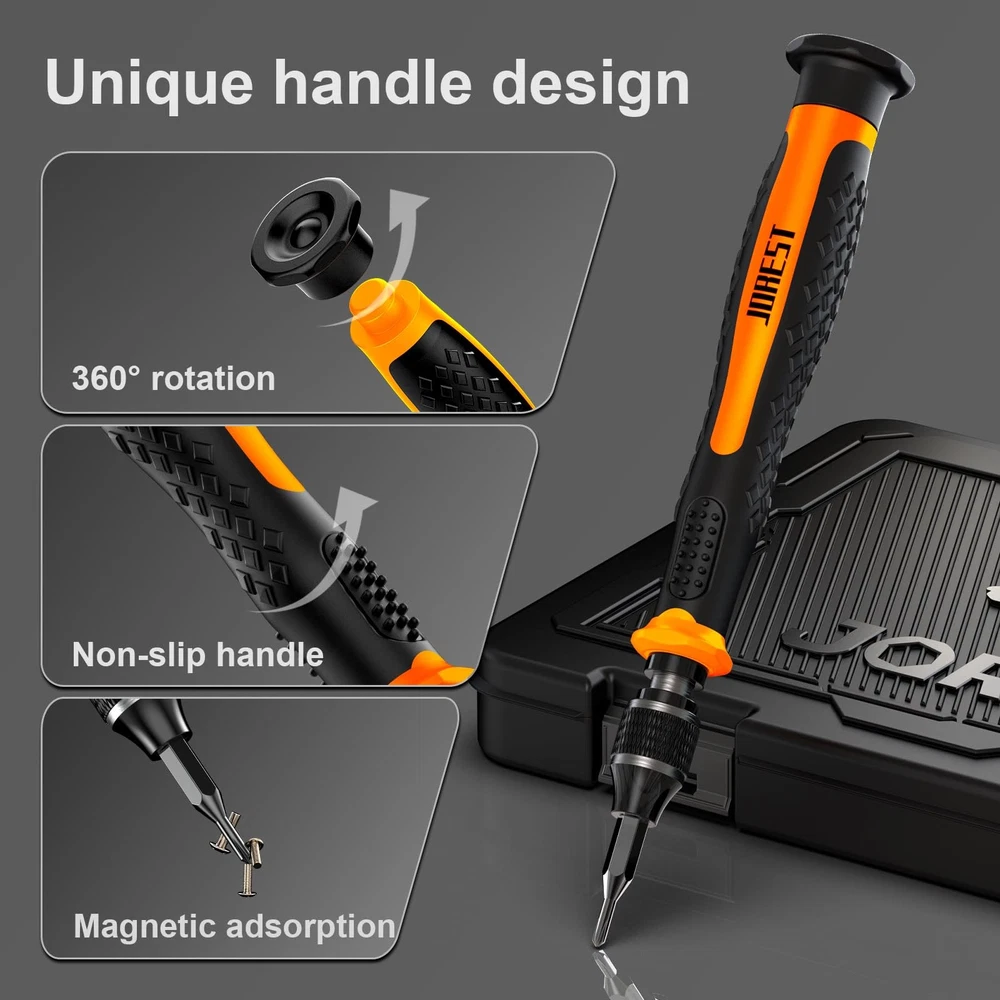 1. This screwdriver set is a lifesaver for DIY projects and gadget repairs! The 38-piece kit includes a wide variety of bits—Phillips, flathead, Torx, and more—plus handy tools like tweezers and spudgers. The magnetic tips make small screws easy to handle, and the S2 steel bits are durable. Compact yet packed with everything you need, it’s perfect for electronics, watches, and everyday fixes. Highly recommend for both pros and hobbyists!