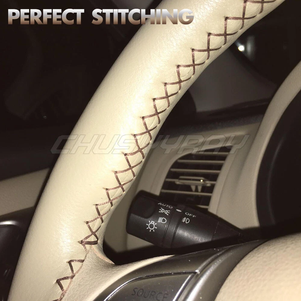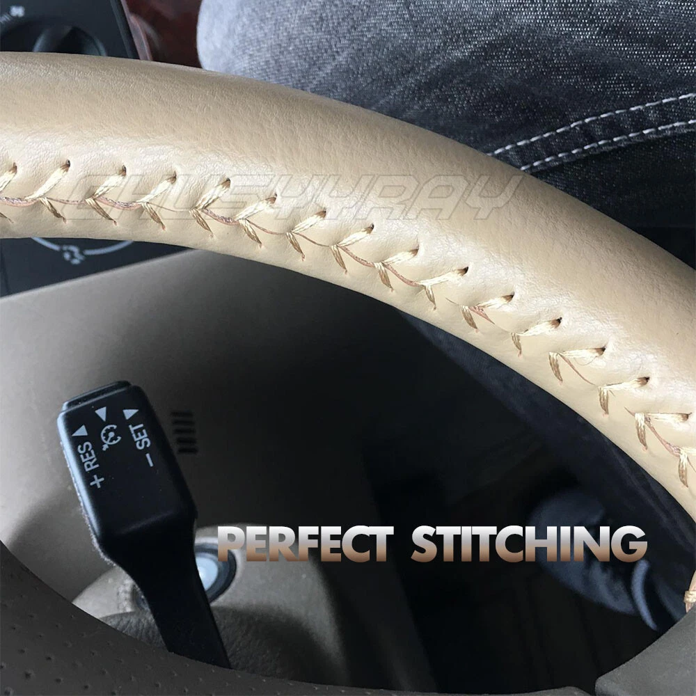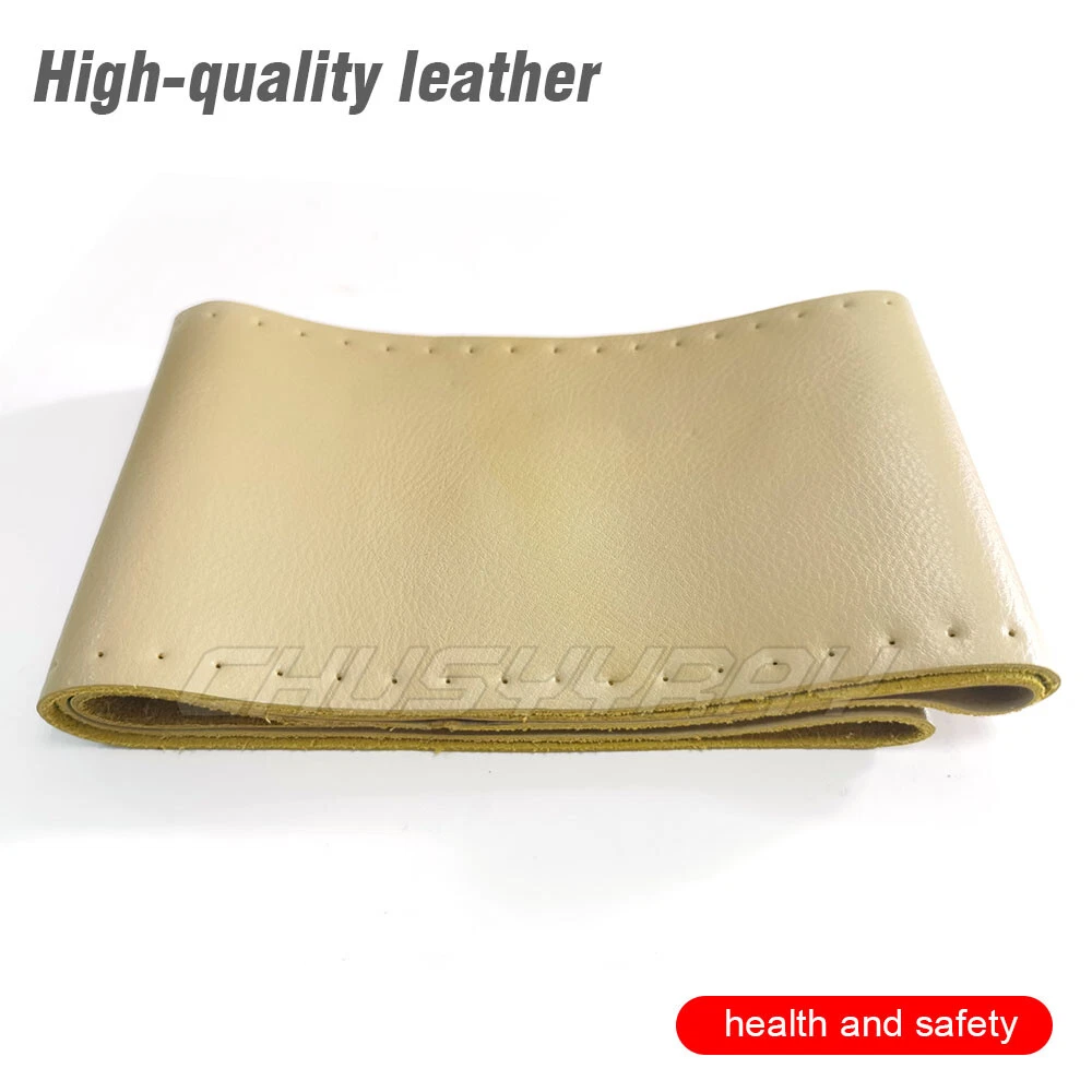 If the product is not suitable or there is a quality problem, please contact our customer service directly to solve the problem. We will give you a satisfactory solution. Brand New and Never been Used Color: Fashion Beige with Needle Elegance and Luxury Design, Fashion and Practical Combination Top Quality Soft Touch Leather, add Comfort, Safty and Protection for your Journey Ergonomic Design Provides Excellent Grip, Skidproof with Tyre Pattern and dotted Design Comfortable Hand Feel, massage your Palm to Relieve Drive Fatigue, Suitable for all Season Easy to Install Description: Steering Wheel Outer Diameter: 37-38cm(14.5"-15") cover size: 38cm(L) x 10.5cm(W) Compatible:Almost 90% car models with 37-38CM outside diameter steering wheel Item included: Steering wheel cover *1 Thread and needle tool set *1 Color: Beige Condition: 100% new (The picture and the actual product have some color difference, the actual color shall prevail in kind) Features: 1.Sewing it by yourself with thread and needle,enjoy DIY pleasure! 2.Provide extra comfortable feeling all round steering wheel. 3.Offer unique decoration for your car 4.No unpleasant smell. 5.No quarantine/customs problem. The package has: 1 leather steering wheel cover 2 needles 2 ties On Jan 23, 2025 at 00:43:38 PST, seller added the following information: