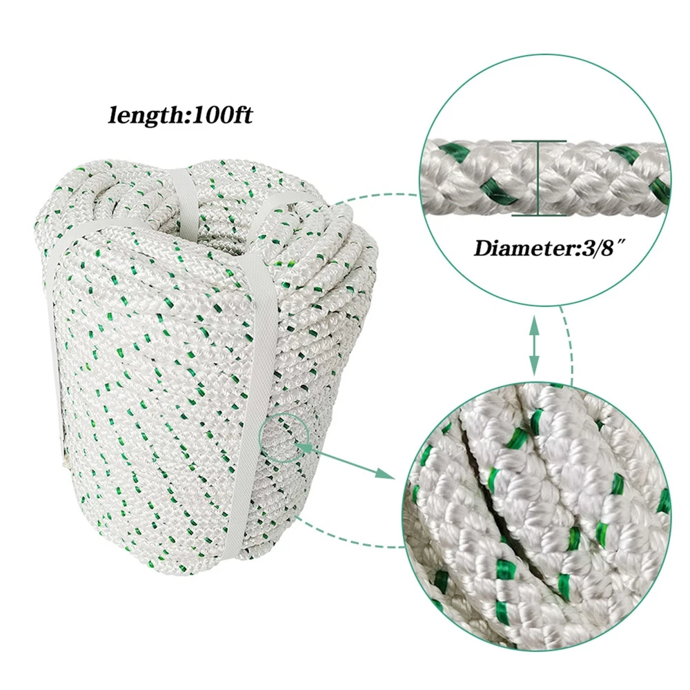 3/8"x100' Heavy Duty Double Braid Polyester Rope Sling Tensile STRENGTH 1500Lbs
