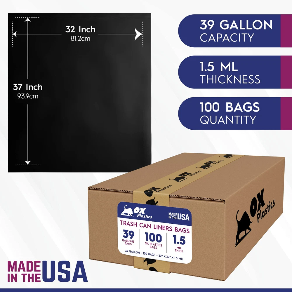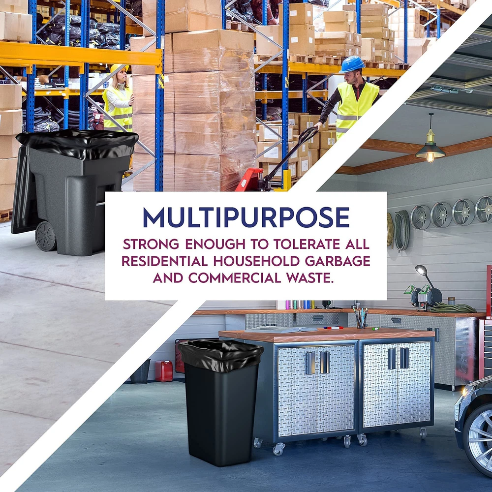 Tear-Resistant: The last thing anyone needs when cleaning up is cheap plastic bags that rip open and make even MORE of a mess. Our tear-resistant household trash bags are made tough, to hold a variety of objects and stay intact no matter what kind of mess life throws at you. You’re clearing yard waste, storing items, or cleaning up after a party, our black garbage bags are there to help with the heavy lifting! Multipurpose: Our Extra-Large Bags Are Not Only Ideal For Kitchen, Home, And Yard Cleanup, They Also Provide An Affordable Alternative To Plastic Bins When It Comes To Durable Temporary Or Long-Term Storage. Fill These Trash Bags With Jagged Pieces Of Lumber, Drywall, Glass, Or Freshly Trimmed Tree Branches Without Fear Of Splitting. Pack Up And Move Easily. Huge Large Size: The Measurement Of 39-Gallon Black Garbage Can Liners, 32" X 37". The Bottom Is A Seal And Bags Come On Rolls. The Trash Or Garbage Bag Liner Is Durable And Designed To Hold The Toughest Garbage With Absolutely No Tears Or Leaks. Strong Enough To Tolerate All Residential Household Garbage And Commercial Waste. Garbage Bag Liners Ensure Can Remain Totally Clean Inside. High Density & Made In Usa: We Manufacture Each Bag With A Unique High-Density Blend To Prevent Tears And To Provide Exceptional Durability For Even The Heaviest Of Loads. The Bottom Of Each Trash Bag Has A Unique Star Seal Design To Prevent Leaks, Improve Carrying Capacity, And Accommodate Your Trash Can Shape. We Proudly Manufacture Trash Bags In The Usa To Ensure That The Quality Of Our Product Meets The Highest Standards. Only Makes The Strongest Bags: There Are Many Specifications In The Trash Bag You Choose. It’S Important When Trash Receptacles Might Contain Sharp Items Like Plastic Forks, Aluminum Pans, And Other Puncturable Trash. You Then Want To Make Sure That Your Bag Thickness Is Low Density.