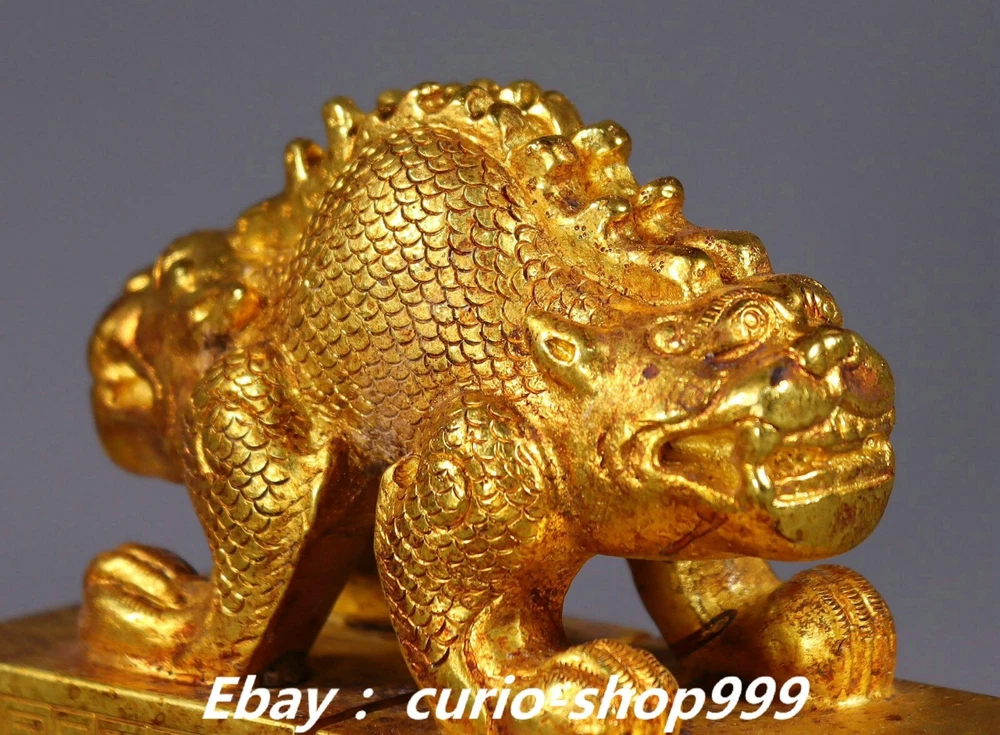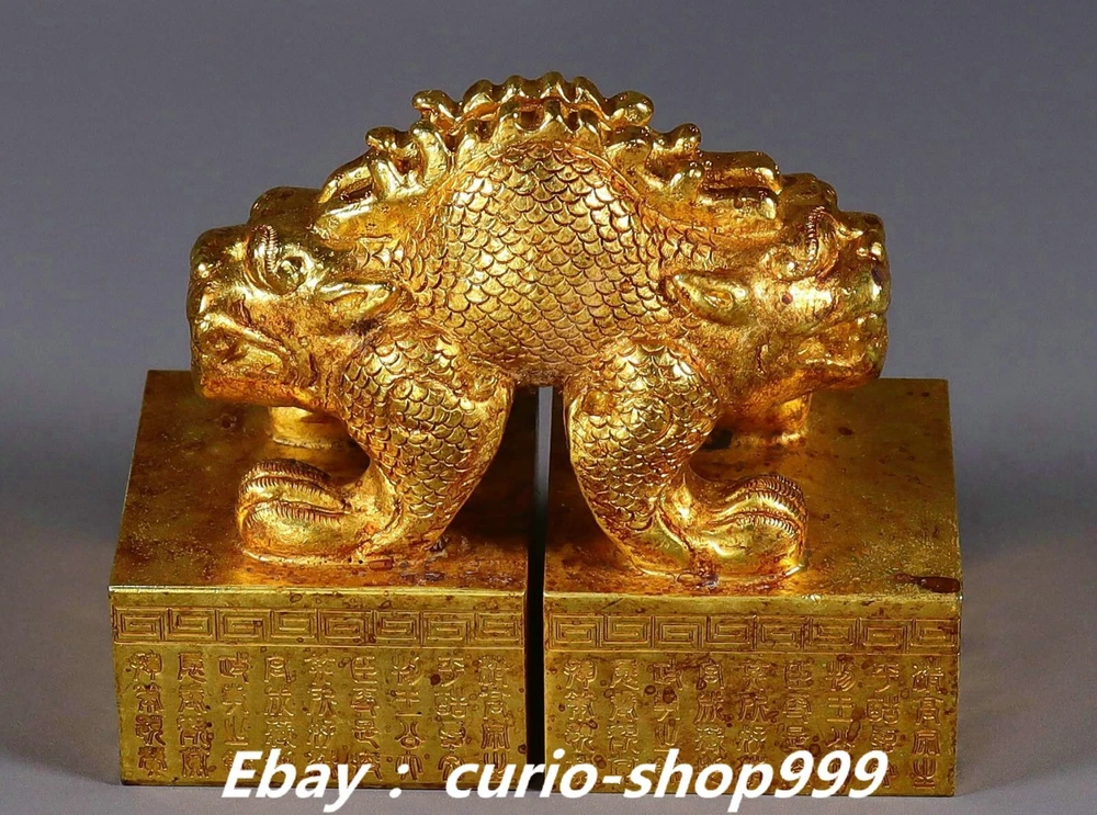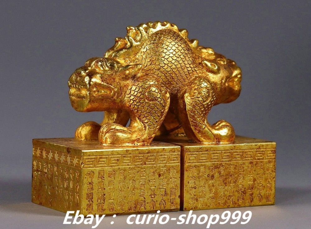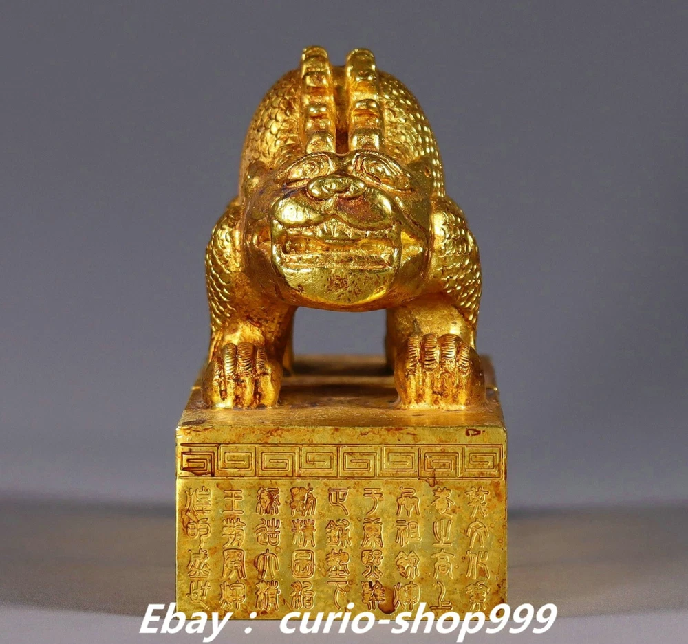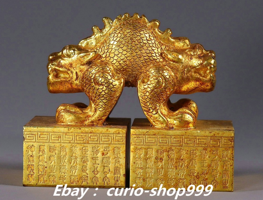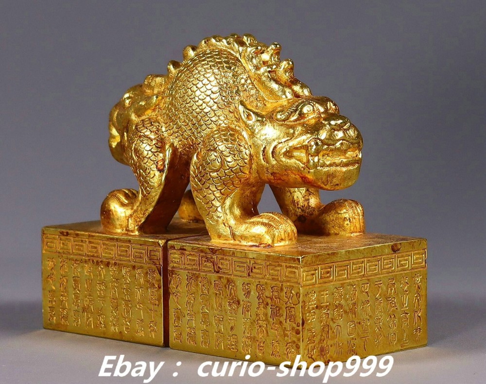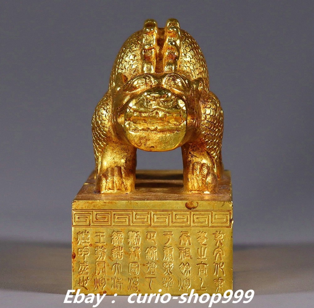 **** Welcome to our antique & Collectable Shop : Porcelain**** Description: Here is 3.9" Old China Dynasty Copper Gold Double Dragon Loong Beast Seal Stamp Signet . It is in good condition, and was created by skilled craftsmen in traditional style with fine handcrafts.This is a great piece of valuable collection, a valuable personal alter or a very good present. the handwork is very fine with incredible detailling. Don't miss out this chance to get it.Wish you good luck! . Material : Copper Gold Size : Heigh t 3.3 Long 3.9 B readth 2.0 (inch) Condition Perfect Condition. Perfect, with no scratches, flaws or repairs. Weight: 2.7 KG----included the weight of packing materials Shipping cost to all over the world countries in Free Honored Customers: We are selling the collectibles products and crafts in Beijing ,China since 1993 and collected them all over the world all the time . In our shop the bronze sculpture, animal, vase, urn, flowerpot,Incense Burner.Table chair sets. Militaria goods. buddha statues, Bodhisattva Statues, Buddhist Ritual Items etc is our speciality .Many of the items we sell come from our own personal collection and have been in our family for a very long time .My great-grandfather was the first in this family to start collecting art & antiques when he still lived in San Xi and Tibet around 1922 ,some of the paintings he once collected can now be seen in museums around the globe.We won't make money from t he shipping cost, if you dislike the item when you receive it,we can refund all of your money to you within thirty days. Please confidence for bidding . We recommend the combine shipping and offer you an big price discount if you order more items together ! 2024.10.03 四 号