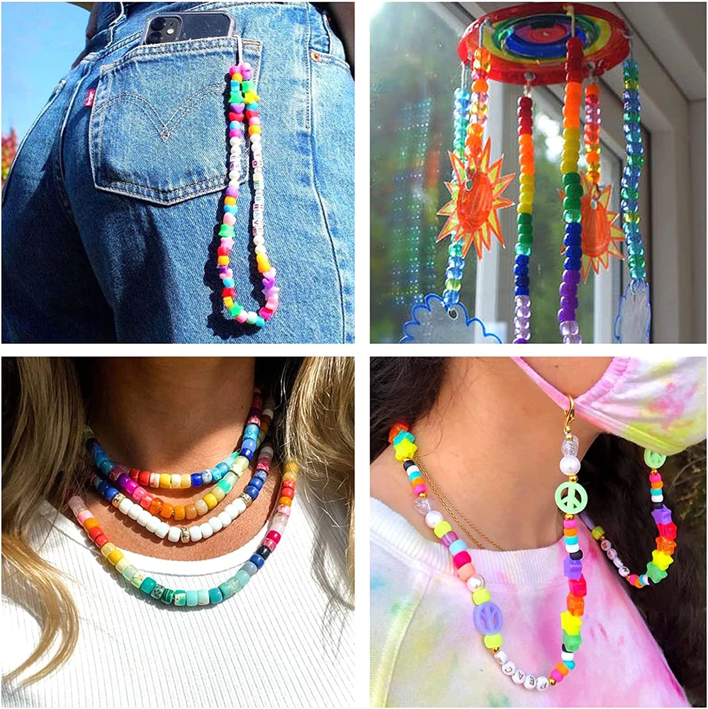 Rich colors: 2400 rainbow beads set contains 48 colors, 50 beads per color. There are 5 styles for you to choose: pure color, pearl color, transparent color, flash color, AB color. Each color is completely different, suitable for your DIY projects of various styles. Premium quality: These pony beads are made of premium quality acrylic. The surface is smooth and shiny, strong and sturdy, not easy to fade. Appropriate size: The size of pony beads is 6*9mm, and the hole diameter is 4mm. The size of the oblate letter beads is 4*7mm, and the hole diameter is 1mm. The size of the square letter beads is 6*6mm, and the hole diameter is 3.5mm. The letter beads with 2 specifications and plastic beads are harmoniously matched, so this set is very suitable for making all kinds of jewelry and handicrafts. Wide range of uses: The rainbow beads set can be used not only to make beautiful necklaces and bracelets, but also to make cute cartoons or animal images. Use them with letter beads to make your own souvenir. Convenient Storage: You will receive 3 separate plastic boxes, beads of different colors and different kinds are placed separately, which is very convenient for you to store and carry. The box itself is also sturdy and closes tightly. You can buy with confidence. The 3690 beads set includes 2400 plastic rainbow beads in 48 colors and 1560 letter beads with 4 styles, which are very suitable for making bracelets and jewelry. Package contains: 6*9mm plastic beads: 2600 pcs, 48 colors 4*7mm letter beads: 560 white beads with black letter, 280 white beads with colorful letter 6*6mm letter beads: 480 white beads with black letter, 240 white beads with colorful letter 2 rolls of 10m elastic thread The rainbow beads set can not only be used to make beautiful necklaces and bracelets, but also can be made into cute cartoons or animal images. Use them with letter beads to make a unique souvenir.