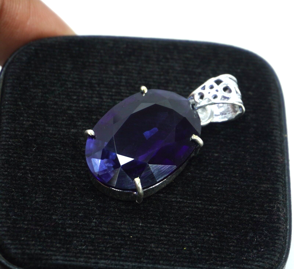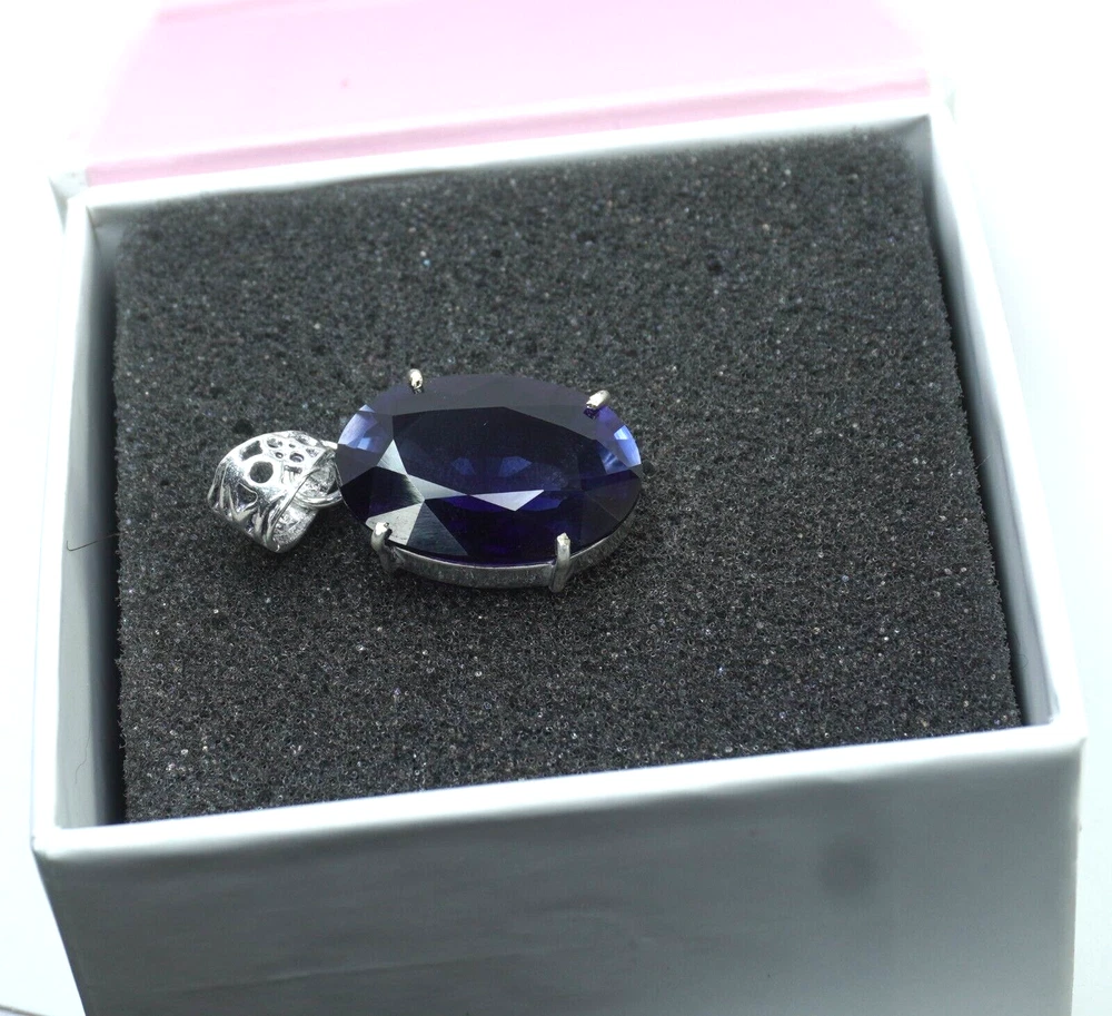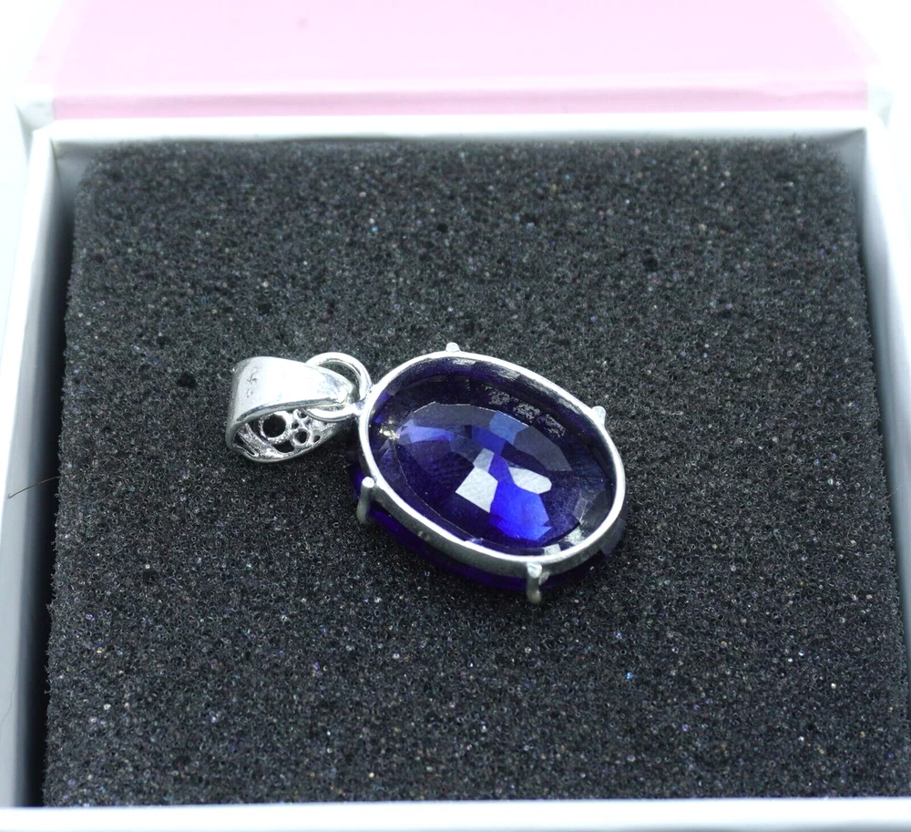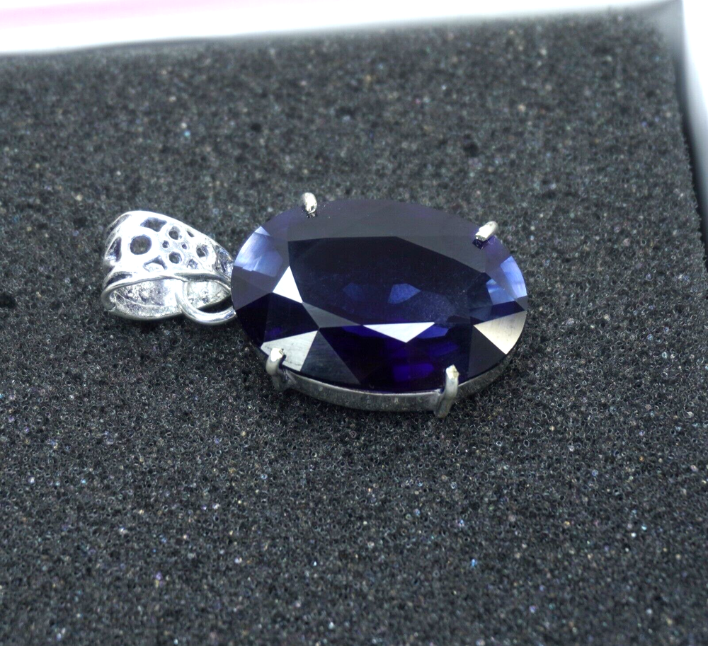 Closure: Hook Handmade: Yes Features: Adjustable Chain Type: N/A Cut Grade: Excellent UPC: Does Not Apply Secondary Stone: N/A Metal Purity: 925 Pendant Shape: Oval Era: Undated Main Stone Length: 23 mm Main Stone: Sapphire Country/Region of Manufacture: India Main Stone Creation: Natural Country of Origin: Sri Lanka Brand: Jitendergems Metal: Silver Type: Pendant gtin13: Does Not Apply Vintage: Yes Necklace Length: N/A Main Stone Treatment: Not Enhanced Pendant/Locket Type: Charm Setting Style: Prong Gemstone Clarity Grade: Eye Clean Main Stone Color: Blue Occasion: Anniversary, Birthday, Christening, Christmas, Engagement, Mother's Day, Valentine's Day, Wedding Seller Warranty: Yes Material: Gemstone Main Stone Depth: 7 mm Wholesale: Yes Base Metal: Silver Seller Notes: “''New Condition"” Signed: Yes Theme: Nature Main Stone Shape: Oval Color: Blue Number of Gemstones: 1 Personalize: Yes Main Stone Width: 17 mm Style: Pendant