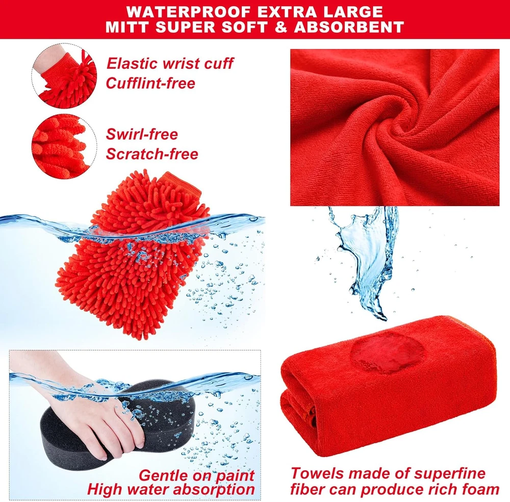 Store New Arrivals Add to Favorite View Feedback Contact 39Pcs Car Wash Cleaning Kit with Foam Gun Sprayer Detailing Brushes Collapsible Bucket Windshield Cleaning Tool Tire Brush Towels Complete Interior Exterior Detailing Set for Car Description Item model number GPAA003-XC-39P-Red Brand GPUSFAK Country of Origin China Manufacturer Part Number GPAA003-XC-39P-Red Item Weight 4.77 pounds Manufacturer GPUSFAK Package Dimensions 13.86 x 10.71 x 6.1 inches Size 39Pcs 39Pcs Car Wash Kit: 1 low-pressure foam gun with twist nozzles and quick coupling, 1 collapsible bucket, 1 windshield cleaning tool and 100 ml spray bottle, 1 stone clearing hook, 4 car hooks, 1 wash sponge, 2 wax applicator pads, 1 hub brush, 1 window water scraper, 1 air conditioner brush, 5 detailing brushes, 3 wire brushes, 1 tire brush, 1 large wash mitt, 2 towels, 1 duster, 1 storage bag Complete Car Cleaning Kit: The 2-in-1 functional foam gun can be flexibly adjusted to spray foam or water mode for quick car washing. The 180° rotating car windshield tool helps to easily clean the interior car glass as well as its edge area. Stone clearing hook helps to clean rocks off your tires and extend the life of your tires. Car wash sponge and wax pads is great for keeping your car clean and new. 4 headrest hooks help you organize your interior clutter Premium Cleaning Tools: Car cleaning towels are made of soft and durable materials. Please wash them before use. Large waterproof car wash gloves protect your hands from injury. The window water scraper helps to clean the car windows quickly. Brushes of different sizes and materials help you clean the nooks and crannies of your car with ease Scope of Application: Our automotive cleaning kits can be used for interior and exterior cleaning and waxing of cars, trucks, motorcycles, RVs and more. They can also be used to clean your home or office area for all your cleaning needs High Quality Car Wash Kit: Our car cleaning kit helps you clean your car quickly and efficiently. It is perfect for everyone who drives a car. You can give it to your friends and family on Thanksgiving, Christmas and other holidays Product Description GPUSFAK 39Pcs Car Wash Cleaning Tools Kit Set Products Include: 39PCS CAR WASH KIT: 1 low-pressure foam gun with twist nozzles and quick coupling, 1 collapsible bucket, 1 windshield cleaning tool and 100ml spray bottle, 1 stone clearing hook, 4 car hooks, 1 wash sponge, 2 wax applicator pads, 1 hub brush, 1 window water scraper, 1 air conditioner brush, 5 detailing brushes, 3 wire brushes, 1 tire brush, 1 large wash mitt, 2 towels, 1 duster, 1 storage bag. · The most comprehensive car wash kit dedicated to making your cleaning easy. · Space-saving, lightweight and quite easy to carry with. · The 2-in-1 functional foam gun can be flexibly adjusted to spray foam or water mode, and the regulator on the handle helps you easily fix the water pressure for an efficient car wash. Insert the siphon Assemble the spray gun switch handle with the spray gun Foam rod inserted into mixing head Screw the bottle onto the mixing head Safety latch Adjustable Foam Ratio Dial 0-5 Water pipe quick connector Joint installation process for connecting 1/2" hose ABOUT US We offer the best prices around on high quality products. Our E-store includes media such as books, movies, music and games while offering electronics, toys, sporting apparel, clothing, tools, general home, garden items and more. SHIPPING We are always working hard to ensure your package arrives as soon as possible. Please understand that some factors like weather, high postal traffic, and the performance of shipping companies are outside of our control. We offer free shipping to the lower 48 states and ship within 2 business days of payment, usually sooner. We do not accept P.O. Boxes. Please provide a physical address. RETURNS We offer a 30-Day Return Policy on items which you are not completely satisfied with. You have the option for a full-refund or an exchange of the item. No returns are available on items shipped outside of the USA. PAYMENT We accept PayPal. CONTACT US This page content is yet to come Please ad us to your favorite seller and visit again later Thank You CUSTOMER SATISFACTION We try our very best to make sure every customer is completely satisfied. If there's a problem, message us! We're happy to help.