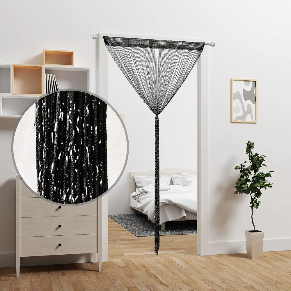 39x79 Inch Door String Curtain Doorway Beads Curtain Haning Room Divider Features: ✔️APPLICATIONS: Beaded Curtain Door String curtains are suitable for your doorways window, wall, living room, bedroom,, patio, closet, kitchen, office, balcony, wall, bookcase, study room, desk, laundry room door or window decoration; More places are waiting for you to discover. ✔️SIZE:100×200cm(39"×79"); [Please note]-Sparse or dense depends on the hanging quantity, more width and density, please add quantity as appropriate. ✔️MATERIAL: 100% Polyester; String curtain panels are silver Lurex foil, each Strings has a stunning glitter effect. ✔️Easy to Hang: The String curtains hang using any standard curtain rod, if too long, you can easily trim size you need;It is a little bit elastic, we can trim them to flush height.These are not toys and are not intended for children to play with or move around unsupervised. ✔️FUNCTIONS:This beaded curtain is generally hung on French windows, doors, walls or other spaces you want to divide. It can create a relaxing atmosphere. It has a good ventilation effect and can block the animals from the outside to a certain extent. Description: About This Product: Material: Curtains are made of eco-friendly 100% polyester. Dimensions: 35×79in/90×200cm. You can trim them to the size and shape you want. Weight: 8oz, (220g) Per Pcs, heavier design better sag. Health: No harmful substances will be produced in the sun. HANG: Pole pocket. Suitable for all kinds of rods. Package includes: 1pc String Curtain Panel. Application: Durable and attractive rope curtain panels for room decor. A modern way to decorate the window or door. These string curtains have a pocket at the top for tension rod, pole or wire. Great for doors, windows, weddings, coffee houses, homes, offices, reception rooms, hotels. Separate spaces to provide a private and comfortable space for your work or rest. Soft sunlight and string curtains create a beautiful picture in your home. Please note: Please Unpack gradually to avoid tangling the strings. If you need a wider width, simply order more String Panels. Hand wash only.Simply rinse with water. If machine washable, bundle in sections first. Please pass slowly and watch out for children and pets. Colors may vary slightly due to and screen settings. Due to handmade, please allow slight size difference, deviation: ±1%. 🌻 If you need more quantity than shown available - just send me a message and I'll increase the purchased limit for you 🌻 SHIPPING We are always working hard to ensure your package arrives as soon as possible. Please understand that some factors like weather, high postal traffic, and the performance of shipping companies are outside of our control. We offer free shipping to the lower 48 states. We do not accept P.O. Boxes. Please provide a physical address. Thank you 🌻 TRANSLATE with x English Arabic Hebrew Polish Bulgarian Hindi Portuguese Catalan Hmong Daw Romanian Chinese Simplified Hungarian Russian Chinese Traditional Indonesian Slovak Czech Italian Slovenian Danish Japanese Spanish Dutch Klingon Swedish English Korean Thai Estonian Latvian Turkish Finnish Lithuanian Ukrainian French Malay Urdu German Maltese Vietnamese Greek Norwegian Welsh Haitian Creole Persian