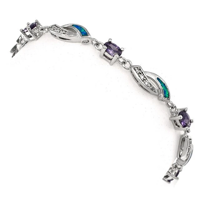 3CT Amethyst & Australian Opal Inlay 925 Sterling Silver Tennis Bracelet OX5