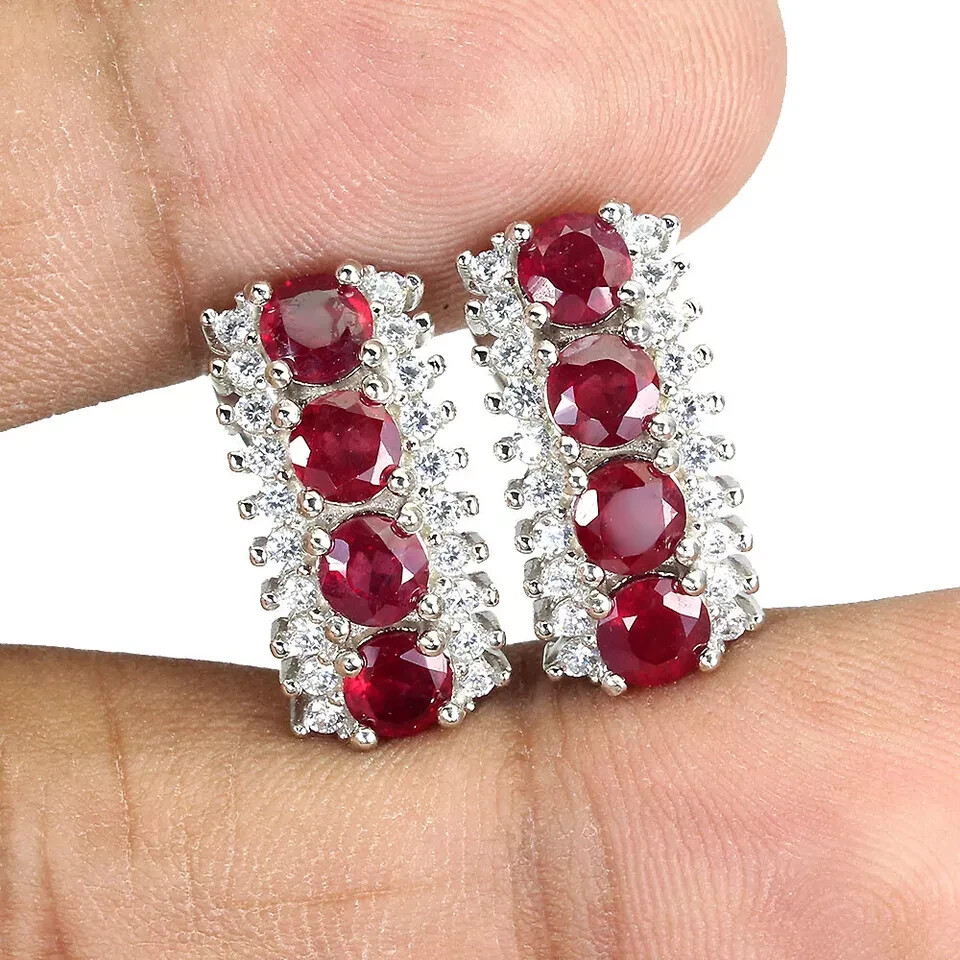 Blule Star_Manufacturer We Offer Customization Want to add a personal touch to this piece? Contact us and we will create one just for you. Customization We Offer : These handmade vintage-style hoop and huggie earrings feature a total of 3 carats of simulated red ruby gemstones set in 925 white sterling silver. The round cut rubies have a width of 5.5mm and a depth of 3mm, with excellent clarity grade. The earrings have a leverback closure and are nickel-free. They are customizable and can be personalized according to the buyer's requirements, making them suitable for various occasions such as engagements, weddings, birthdays, and holidays like Mother's Day and Christmas. The intricate design and high-quality materials make these earrings a beautiful and unique accessory. Payment We only accept payment via Payoneer, Please sent the payment to us within 8 days after the auction has ended, or you will have unpaid case auto open by eBay. Shipping We will ship all items within 5-7 business days of purchase during the work week (M-F) excluding holidays. If you order on Friday, your order will be shipped the following business day. Tracking will be provided when it becomes available. Domestic delivery may take up to 1 week. It all depends on the local office. Once the order leaves our location, we have no control over delivery times. We will only ship to a corresponding Govt Z.P.O.Dept Verified Address. Please make sure your address is current and correct. If the information does not match, your order may be cancelled. Buyers are responsible for all customs, duties and taxes for your respective countries. Delivery times for International Shipping will vary. California Buyers Pay 9.0% Tax on all orders case auto open by eBay. Terms of Sale Returns are accepted. Buyer must contact us within 30 days after the item is received. Item must be returned in unworn and resalable condition. We will only issue a refund for the purchase price, excluding any shipping fees. If we are at fault, we will provide a full refund. Buyer is responsible for all return shipping costs. Feedback Please do not leave a negative feedback as a way to communicate. Any rating given to a seller can neither be changed nor modified. So better communicate for faster resolution to any disputes. If you have any concerns regarding your purchase, please contact us via eBay Message, we assure you that a satisfactory resolution will be reached. Please help us maintain a 5 Star DSR rating in all 4 rating categories, if you feel otherwise, please let us know how we can score a perfect rating from you before you rate us. Thank you Visit Again