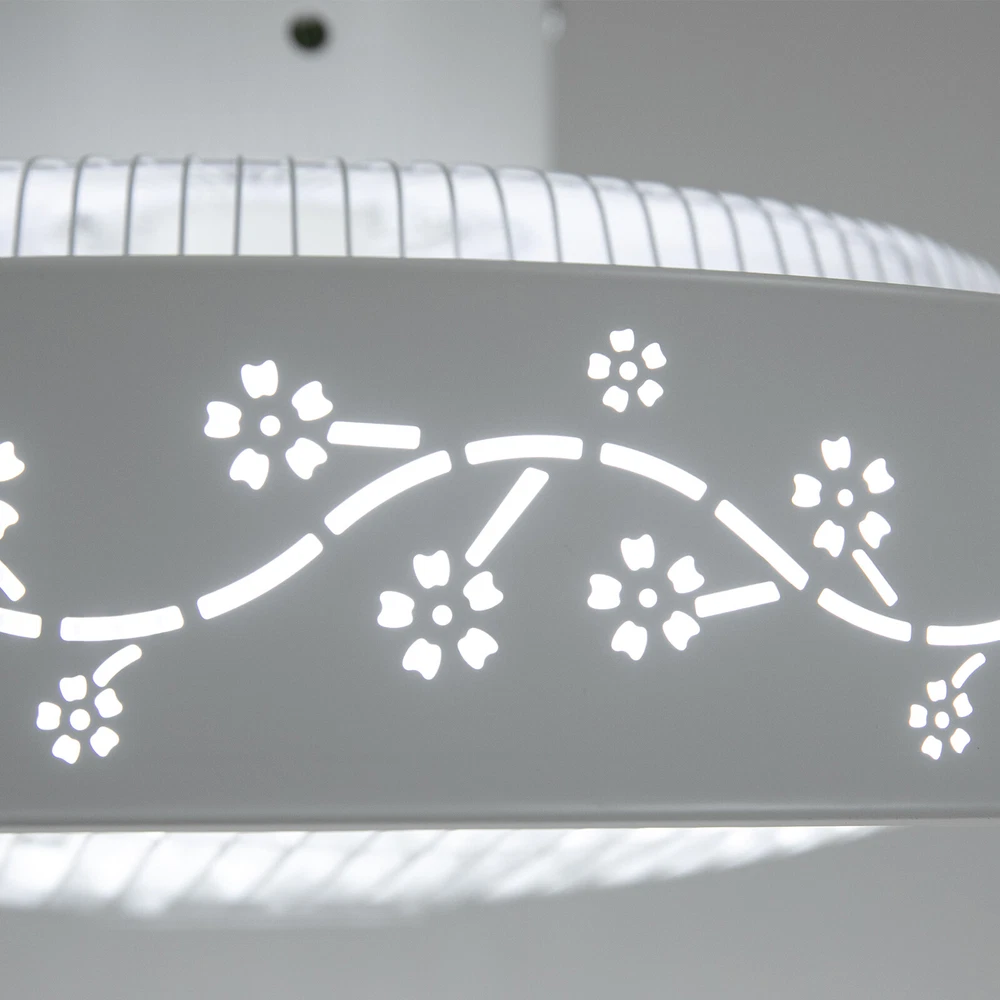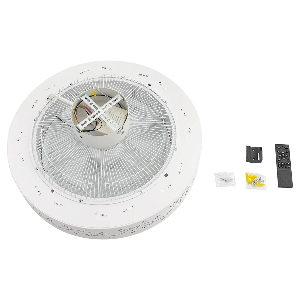 Specifications Color: White Material: Iron, ABS, PVC Process: Matt Paint Motor Type: Copper Motor Mount Type: Ceiling Mounted Light Source: COB Voltage: 110V Efficiency: E Fan Speed Gears: 6 Time Setting: 2H Motor Power: 15W Motor Speed: 950rpm Noise: About 40dB Brightness Adjustable Range: 60LM Three Adjustable Color Temperature: 3000K, 4200K, 6500K Illumination Area: 15-25㎡/161.46-269ft² Suitable Room Height: 2.6m/8.53ft Battery Type: 2*AAA Batteries(Not Included) Remote Control Distance: 5-10m/16.4-32.8ft Product Size(D*H): 55*22cm/21.65*8.66inch Packaging Size: 52*52*25cm/20.47*20.47*9.84inch Gross Weight: 4kg/8.82lbs Net Weight: 3kg/6.61 Package Included 1*Ceiling Fan Light 1*Remote Control Other Accessories for Installation Have a nice day~ Description Description This ceiling fan light will bring a cool breeze and soft light to your home, making your room more cozy and warm. It comes with six wind speeds, which can bring you a comfortable and controllable wind. The infinitely dimmable function meets your different lighting needs. The remote and App control methods provide you with a high-quality and convenient life. Key Features Build to Last: Made of high-quality iron, ABS, and PVC materials with the matt paint process, this product is resistant to corrosion, rust, and abrasion and has a long service life. Stylish Appearance: The round lampshade with flower patterns brings this product a beautiful appearance, and such an eye-catching outlook will add a touch of elegance to your room and show your good taste to your guests. Dimmable Light: The product comes with three color temperature adjustments (3000K, 4200K, 6500K) and step-less control of the light brightness, which can create the atmosphere you need. Excellent Fan Performance: The product comes with an air guide wheel function to spread the wind evenly throughout the room. In addition, you can adjust the six wind speeds and the reversible function to meet your needs. Thoughtful Design: The 2-hour timer function allows you to fall asleep with a cool breeze. The memory function adds even more convenience by saving you the time of setting the ceiling fan light each time you turn it on. Smart Control: The product allows you to easily control and adjust the fan and light modes via remote control and APP, adding to your life extra convenience. High Safety: The fan blades are hidden inside a round cover, which can avoid accidents caused by getting caught in the blades, making it much safer than traditional fans. Easy to Clean: The smooth surface and simple structure allow you to remove the dust on the surface of this light with a towel. Ideal Gift: With practical function and a beautiful appearance, it can be an ideal housewarming gift for your friends, families, and colleagues. Details Copper Motor: The copper motor is sturdy and durable, and will provide the fan with strong power and a low noise(about 40db) during running. Rounded Edges: The burr-free edges can effectively protect your hands and skin from being scratched during installation or cleaning. Application It is suitable for rooms with 161.46-269ft² areas such as living rooms, bedrooms, kitchens, dining rooms, entrances, hallways, foyers, doorways, basements, restaurants, cafes, stores, children's rooms, and nurseries. Specifications Color: White Material: Iron, ABS, PVC Process: Matt Paint Motor Type: Copper Motor Mount Type: Ceiling Mounted Light Source: COB Voltage: 110V Efficiency: E Fan Speed Gears: 6 Time Setting: 2H Motor Power: 15W Motor Speed: 950rpm Noise: About 40dB Brightness Adjustable Range: 60LM Three Adjustable Color Temperature: 3000K, 4200K, 6500K Illumination Area: 15-25㎡/161.46-269ft² Suitable Room Height: 2.6m/8.53ft Battery Type: 2*AAA Batteries(Not Included) Remote Control Distance: 5-10m/16.4-32.8ft Product Size(D*H): 55*22cm/21.65*8.66inch Packaging Size: 52*52*25cm/20.47*20.47*9.84inch Gross Weight: 4kg/8.82lbs Net Weight: 3kg/6.61 Package Included 1*Ceiling Fan Light 1*Remote Control Other Accessories for Installation Notes Please check the size carefully before ordering. The remote control does not include batteries, so you need to prepare 2 AAA batteries yourself. For a safe and secure installation, please make sure that all wires are connected and all screws are tightened into the ceiling. When unpacking, be careful not to pull with the wires as a bad connection may result. Please do not turn on the power until fully assembled. Please conduct a power test before installation. We recommend installation by professionals. Please do not install it next to the air conditioner or heater, which will affect the service life of the product. Please wear electric insulation gloves (not included) and avoid scratching the surface of the product and the electric wire when installing. Please use this item within the applicable voltage range and clean it regularly. Please wipe with a soft cloth, it is not suitable to clean with cleaning agents. Please allow the slight color difference caused by the shooting light and 1-3cm error due to manual measurement, and make sure you do not mind before you order. Payment Delivery details Terms of sales About us Contact us Payment We accept ebay payment 。 Fees such as import duties, taxes are not included in the item price or shipping costs. These charges are the buyer's responsibility. Delivery details Shipping: 2-9 working days to: USA Terms of sales We maintain high standards of excellence and strive for hundred percent customer satisfaction. Feedback is very important to us. We hope that you contact us immediately before you give neutral or negative feedback, so that we can address your concerns. It is impossible to address issues if we do not know about them! About us Your satis faction is our ultimate goal. We work hard to earn your trust and future business. Our certified technicians have tested each item before shipping. The unit comes with 1 year limited warranty on all manufacturing defects. a) If yo