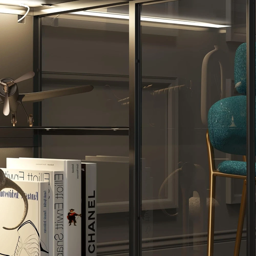 Product Description About this item [Storage Cabinet with LED Light] - black storage cabinte with glass doors features switch control LED lights, 3 colors adjustable: warm yellow, natural and cool white. The storage shelves are glass, the high-definition glass shelves presenting your collection perfectly, making it visible even from a distance. [Sturdy & Durable] - This storage display cabinet is crafted from engineered MDF board, iron and glass. The thick metal frames and top panel is sleek and easy cleaning, the sturdy legs offer reliable support. The glass shelves can hold weight up to 22 lbs, the top can hold up to 33 lbs. [Large Capacity] - Overall sizes: 55.1”W x 15.7”D x 29.5”H. Total 4 storage compartments, each compartment: 26.6”W x 15”D. This sideboard cabinet with lights is luxury with sleek surface and durable materials. Black panels, transparent glass doors and metal framed doors are creating luxury charming. [Versatile Storage Cabinet] - This black cabinet is suitable for many occasions, like entryway, hallway, living room, kitchen, dining room and office. Also you can treat it as sideboard cabinet, cupboard cabinet, accent cabinet, bar cabinet, curio & display cabinet, console table and so on. [Assembly Required] - This buffet cabinet with storage is easy to assemble, you just need to follow the instruction manual to easily assemble a complete chest of drawers, feel free to tell us your problem. Storage Cabinet with 3-Color LED Lights, Glass Shelves & 4 Compartments, Sideboard Buffet Cabinet with Solid Metal Legs, Modern Display Cabinet for Living Room Dining Room, Black. black storage cabinte with glass doors features switch control LED lights, 3 colors adjustable: warm yellow, natural and cool white. The storage shelves are glass shelves, the high-definition glass shelf presents your collection perfectly, making it visible even from a distance.