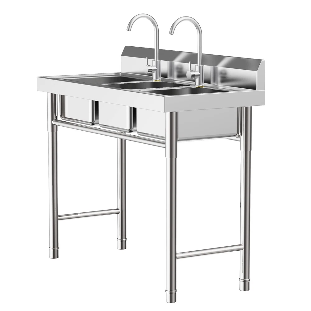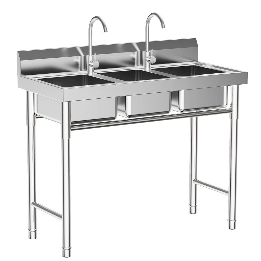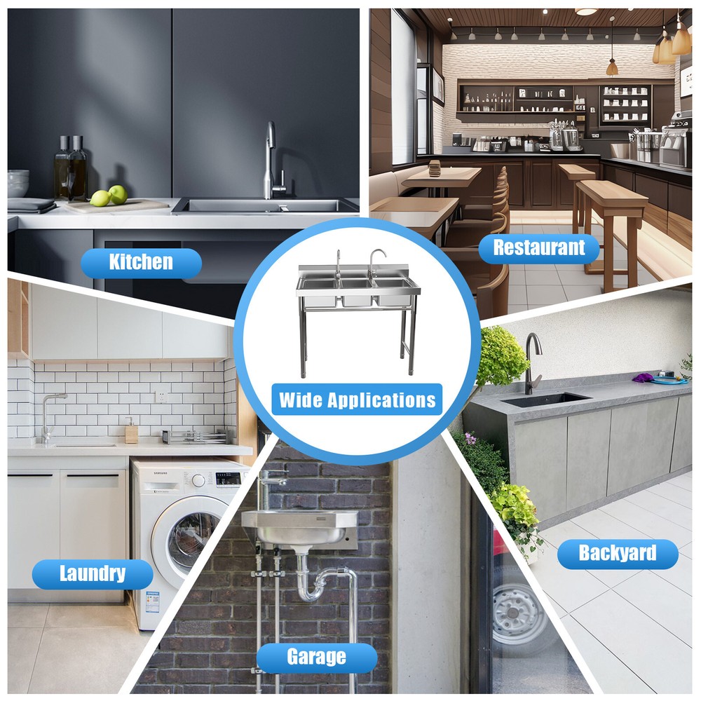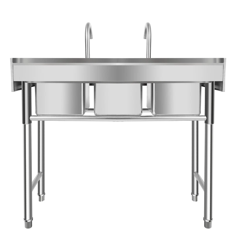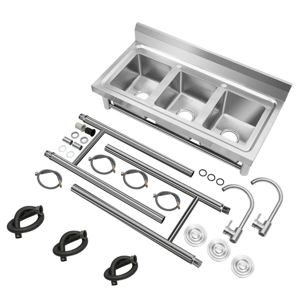 3-Compartment Sink Bowl Kitchen Stainless Steel Catering Prep Table Washing Sink Description This Commercial Stainless Steel Sink Is a Great Cleaning Aid for Washing Fruit and Vegetables, Clothes, Cutlery, and Kitchenware. with Three Deep Sinks, It Can Handle a Large Number of Cleaning Tasks on Commercial Premises. It Is Made of Thickened Stainless Steel, so It Has Excellent Resistance to Rust and Corrosion. Such a High Capacity and Large Capacity Commercial Stainless Steel Sink Is a Wise Choice for You! Application This Commercial Stainless Steel Sink Is Suitable for Use in Restaurants, Canteens, Snack Bars, and More. with Its Large Capacity, Easy Cleaning, and Corrosion Resistance, It Is a Great Addition to Any Kitchen or Laundry Room. Specification Material: 304 Stainless Steel , Pvc Color: Silver Number of Sinks: 3 Shape: Rectangular Process: Polishing, Welding, Cutting, Wire Drawing Installation Method: Freestanding Max. Load-bearing Capacity: 200kg/440.92lbs Single Sank Capacity: 13-15l/3.43 - 3.96 Gal Gross Weight: 15kg/33.06lbs Net Weight: 14.5kg/31.96lbs Package Size: 104*53*40cm/41*20.86*15.74in Sink Size: 28*23*18cm/11*9*7in Individual Sink Internal Dimensions: 25.9*28.44*24.89cm/10.2*11.2*9.8in Product Size: 99*46*91cm/39*18*35.8in Height of Support Frame: 80cm/31.5in Countertop Thickness: 5.08cm/2in Splashback Height: 9.9cm/3.9in Length of Drainpipe: 82cm/32.28in Package Included 3*Sinks 4*Support Feet 3*Drains All Accessories Needed for Installation Key Features High-quality Material : the Commercial Stainless Steel Sink Is Made of High-quality 304 Stainless Steel . the Corrosion-resistant, Non-rusting 304 Stainless Steel Gives This Product Long Service Life. Excellent Load-bearing Capacity : the Commercial Stainless Steel Sink Bracket Has a Solid H-shaped Construction That Provides It with a Maximum Weight Capacity of 440.92 Lbs. Large Capacity : the Commercial Stainless Steel Sinks Have a Capacity of 3.43-3.96 Gallons Each, Allowing You to Place Enough Dishes or Clothes. and Three Sinks Allow You to Soak, Wash and Drain at the Same Time, Compared to Other Single or Two Sinks. Easy to Clean : This Commercial Stainless Steel Sink Has Been Superbly Polished so the Surface Is Smooth and Fine, Which Makes It Very Easy to Clean. All You Need to Do Is Wipe with a Damp Cloth or Rinse with Water. Fast Drainage : the Sink Is Equipped with Guidelines to Drain Quickly, Making the Sink less Likely to Accumulate Water and Cleaner. Wire Drawing Process : This Commercial Stainless Steel Sink Adopts a Professional Wire Drawing Process That Gives the Surface a Metallic Shine. the Brushed Surface Is Also More Resistant to Wear and Scratches, Making It Shiny and Smooth Even After Long Periods of Use. Suitable Height : the 33.5" Height of the Commercial Stainless Steel Sink Is Suitable for Most Heights. the Right Height Allows You to Say Goodbye to Bending over to Clean Dishes, Which Is Very Comfortable and Easy. Superb Craftsmanship : We Use Laser Cutting, Mechanical Welding, and Polishing to Create a High-quality Sink for You, Making the Sink Strong and Durable Splash-proof : This Commercial Stainless Steel Sink Has a Raised Splashback to Prevent Water Spills on the Wall. This Not Only Protects the Wall but Also Eases the Cleaning Task. Details Stainless Steel Feet : the Four Stainless Steel Feet on the Bottom Provide Excellent Support for the Commercial Stainless Steel Sink. and the Support Feet with a Detachable and Adjustable Design Are Not Only Easy to Assemble and Disassemble but Also Can Be Adjusted at Will to Adapt to Different Grounds. Recesses : the Recess in the Countertop Prevents Water from Spilling out and Getting Your Clothes Wet, Which Is Very Thoughtful. Thicker Support Beams : the Sink Has Thicker Support Beams at the Bottom to Increase the Load-bearing Capacity of the Product. Stainless Steel Drain Spout : the Drain Spout Is Made of High-quality Stainless Steel and Is Corrosion-resistant and Rust-free. the Stainless Steel Drainage Spout Extends the Life of the Product. Filter : the Drain Is Equipped with a Filter to Effectively Filter and Prevent Blockages. Pvc Drainage Pipes : the Drainage Pipes Are Made of Wear-resistant and Waterproof Pvc, Which Is Very Durable. Notes Please Allow the Slight Color Difference Caused by the Shooting Light and 1-3cm Error Due to Manual Measurement. Please Make Sure You Do Not Mind Before You Order. Payment Delivery details Terms of sales About us Contact us Payment We accept ebay payment 。 Fees such as import duties, taxes are not included in the item price or shipping costs. These charges are the buyer's responsibility. Delivery details Shipping: 2-9 working days to: USA Terms of sales We maintain high standards of excellence and strive for hundred percent customer satisfaction. Feedback is very important to us. We hope that you contact us immediately before you give neutral or negative feedback, so that we can address your concerns. It is impossible to address issues if we do not know about them! About us Your satis faction is our ultimate goal. We work hard to earn your trust and future business. Our certified technicians have tested each item before shipping. The unit comes with 1 year limited warranty on all manufacturing defects. a) If you receive a defective item, you may return it or ask for a discount. Please contact us within 14 days after you receive the package. b) What you returned must be intact and in its original packaging as re? u. Customer is responsible for shipping costs of the returned item. c) We will cover the cost of shipping back t with the shipping rate indicated in the registration page. We will send you a new unit or refund the full payment you paid. Thank you. Contact us Business Hour Business Hour: Monday To Friday: 8:30 AM to 5:00 PM (Beijing China time) Due to time zones, our reply to your questions may not be immediately. But within above working time, we will reply your email within 24 hours. If it's non