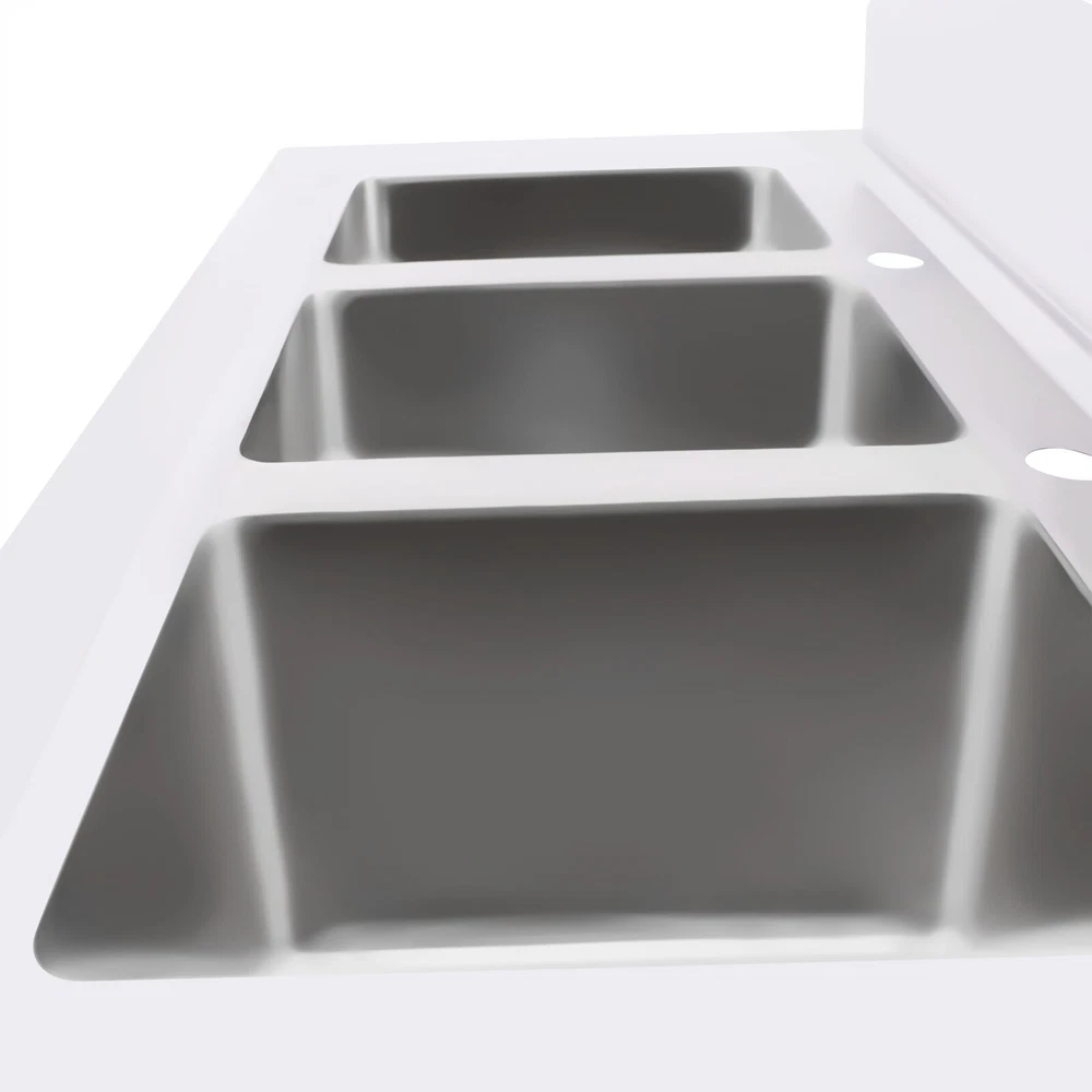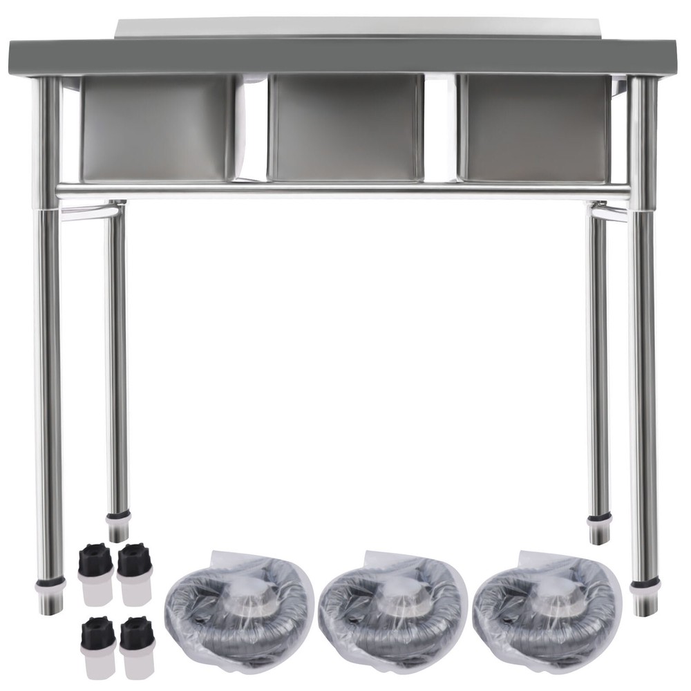 3-Compartment Sink Bowl Kitchen Stainless Steel Catering Prep Table Washing Sink Description This Commercial Stainless Steel Sink Is a Great Cleaning Aid for Washing Fruit and Vegetables, Clothes, Cutlery, and Kitchenware. with Three Deep Sinks, It Can Handle a Large Number of Cleaning Tasks on Commercial Premises. It Is Made of Thickened Stainless Steel, so It Has Excellent Resistance to Rust and Corrosion. Such a High Capacity and Large Capacity Commercial Stainless Steel Sink Is a Wise Choice for You! Application This Commercial Stainless Steel Sink Is Suitable for Use in Restaurants, Canteens, Snack Bars, and More. with Its Large Capacity, Easy Cleaning, and Corrosion Resistance, It Is a Great Addition to Any Kitchen or Laundry Room. Specification Material: 304 Stainless Steel , Pvc Color: Silver Number of Sinks: 3 Shape: Rectangular Process: Polishing, Welding, Cutting, Wire Drawing Installation Method: Freestanding Max. Load-bearing Capacity: 200kg/440.92lbs Single Sank Capacity: 13-15l/3.43 - 3.96 Gal Gross Weight: 15kg/33.06lbs Net Weight: 14.5kg/31.96lbs Package Size: 104*53*40cm/41*20.86*15.74in Sink Size: 28*23*18cm/11*9*7in Individual Sink Internal Dimensions: 25.9*28.44*24.89cm/10.2*11.2*9.8in Product Size: 99*46*91cm/39*18*35.8in Height of Support Frame: 80cm/31.5in Countertop Thickness: 5.08cm/2in Splashback Height: 9.9cm/3.9in Length of Drainpipe: 82cm/32.28in Package Included 3*Sinks 4*Support Feet 3*Drains All Accessories Needed for Installation Key Features High-quality Material : the Commercial Stainless Steel Sink Is Made of High-quality 304 Stainless Steel . the Corrosion-resistant, Non-rusting 304 Stainless Steel Gives This Product Long Service Life. Excellent Load-bearing Capacity : the Commercial Stainless Steel Sink Bracket Has a Solid H-shaped Construction That Provides It with a Maximum Weight Capacity of 440.92 Lbs. Large Capacity : the Commercial Stainless Steel Sinks Have a Capacity of 3.43-3.96 Gallons Each, Allowing You to Place Enough Dishes or Clothes. and Three Sinks Allow You to Soak, Wash and Drain at the Same Time, Compared to Other Single or Two Sinks. Easy to Clean : This Commercial Stainless Steel Sink Has Been Superbly Polished so the Surface Is Smooth and Fine, Which Makes It Very Easy to Clean. All You Need to Do Is Wipe with a Damp Cloth or Rinse with Water. Fast Drainage : the Sink Is Equipped with Guidelines to Drain Quickly, Making the Sink less Likely to Accumulate Water and Cleaner. Wire Drawing Process : This Commercial Stainless Steel Sink Adopts a Professional Wire Drawing Process That Gives the Surface a Metallic Shine. the Brushed Surface Is Also More Resistant to Wear and Scratches, Making It Shiny and Smooth Even After Long Periods of Use. Suitable Height : the 33.5" Height of the Commercial Stainless Steel Sink Is Suitable for Most Heights. the Right Height Allows You to Say Goodbye to Bending over to Clean Dishes, Which Is Very Comfortable and Easy. Superb Craftsmanship : We Use Laser Cutting, Mechanical Welding, and Polishing to Create a High-quality Sink for You, Making the Sink Strong and Durable Splash-proof : This Commercial Stainless Steel Sink Has a Raised Splashback to Prevent Water Spills on the Wall. This Not Only Protects the Wall but Also Eases the Cleaning Task. Details Stainless Steel Feet : the Four Stainless Steel Feet on the Bottom Provide Excellent Support for the Commercial Stainless Steel Sink. and the Support Feet with a Detachable and Adjustable Design Are Not Only Easy to Assemble and Disassemble but Also Can Be Adjusted at Will to Adapt to Different Grounds. Recesses : the Recess in the Countertop Prevents Water from Spilling out and Getting Your Clothes Wet, Which Is Very Thoughtful. Thicker Support Beams : the Sink Has Thicker Support Beams at the Bottom to Increase the Load-bearing Capacity of the Product. Stainless Steel Drain Spout : the Drain Spout Is Made of High-quality Stainless Steel and Is Corrosion-resistant and Rust-free. the Stainless Steel Drainage Spout Extends the Life of the Product. Filter : the Drain Is Equipped with a Filter to Effectively Filter and Prevent Blockages. Pvc Drainage Pipes : the Drainage Pipes Are Made of Wear-resistant and Waterproof Pvc, Which Is Very Durable. Notes Please Allow the Slight Color Difference Caused by the Shooting Light and 1-3cm Error Due to Manual Measurement. Please Make Sure You Do Not Mind Before You Order. Payment Delivery details Terms of sales About us Contact us Payment We accept ebay payment 。 Fees such as import duties, taxes are not included in the item price or shipping costs. These charges are the buyer's responsibility. Delivery details Shipping: 2-9 working days to: USA Terms of sales We maintain high standards of excellence and strive for hundred percent customer satisfaction. Feedback is very important to us. We hope that you contact us immediately before you give neutral or negative feedback, so that we can address your concerns. It is impossible to address issues if we do not know about them! About us Your satis faction is our ultimate goal. We work hard to earn your trust and future business. Our certified technicians have tested each item before shipping. The unit comes with 1 year limited warranty on all manufacturing defects. a) If you receive a defective item, you may return it or ask for a discount. Please contact us within 14 days after you receive the package. b) What you returned must be intact and in its original packaging as re? u. Customer is responsible for shipping costs of the returned item. c) We will cover the cost of shipping back t with the shipping rate indicated in the registration page. We will send you a new unit or refund the full payment you paid. Thank you. Contact us Business Hour Business Hour: Monday To Friday: 8:30 AM to 5:00 PM (Beijing China time) Due to time zones, our reply to your questions may not be immediately. But within above working time, we will reply your email within 24 hours. If it's non