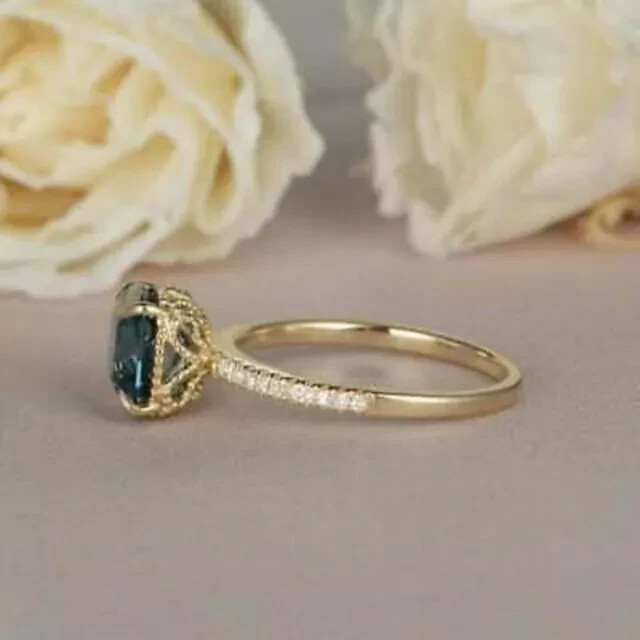 3Ct Cushion Cut London Blue Topaz Wedding Ring in 14K Gold Plating