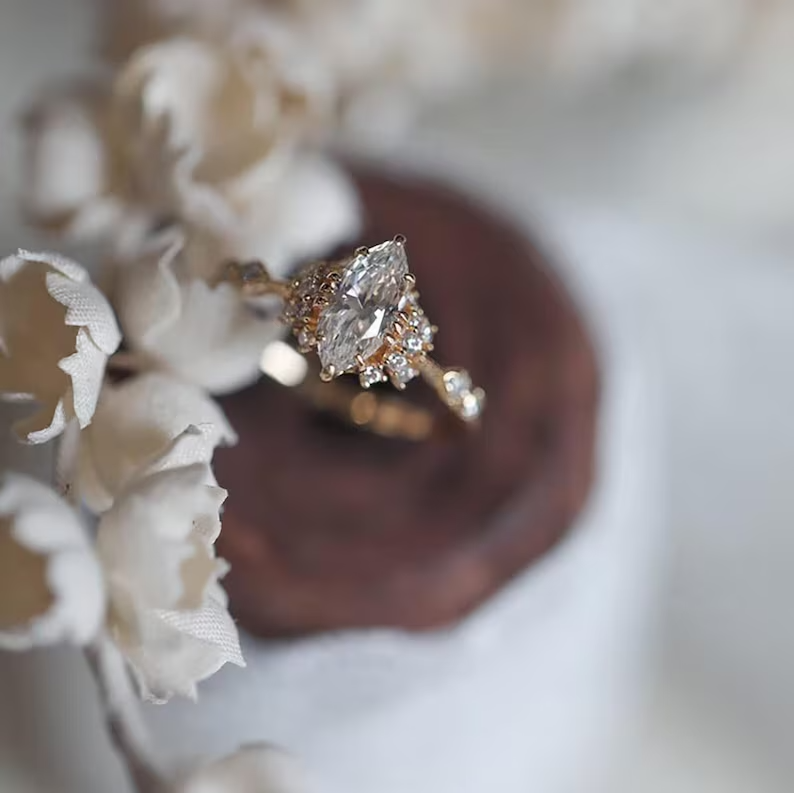 3Ct Marquise Cut Natural Moissanite Women's Wedding Ring 14k Yellow Gold Plated