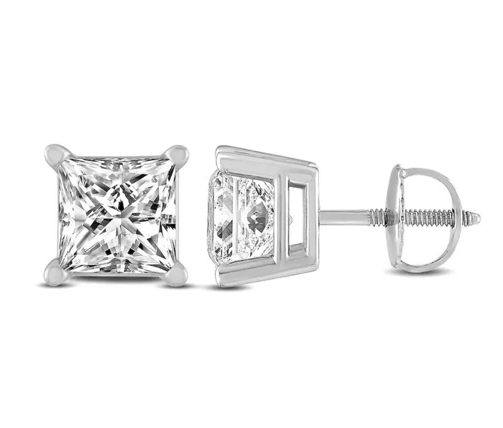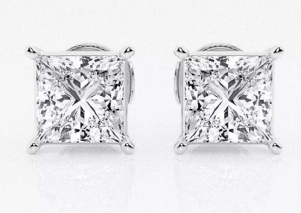 3.00 Carat Princess Brilliant Cut Solitaire Stud Screw Back Basket Earrings in 14K White Gold Value $395.00 These exquisite lab created white sapphire stud ear rings are crafted out of 14K White Gold and brilliant stud earrings. This design of stud earrings is one of the most desired and classy of all. They are set in a unique, secure, 4-prong designer style setting. They emit every shade of light that a natural diamond would emit. The radiance and fire of these stud earrings is equivalent if not superior to a natural diamond of a FL Clarity, D Color, Excellent Cut. Brand --> Hallmark Clearance Total Carat Weight (TCW) --> 3 .00 Carats (1.50 Ct. Approx. 7mm Each) Metal --> 14K White Gold Stud Type --> Lab Created / White Sapphire Top Quality Item. Design --> Studs Main Stone Shape --> Princess Cut Color --> D Clarity --> FL Setting --> 4-Prong Designer Style Type of Post or Back --> Screw Back Number of Stones --> 2 Country of Manufacture --> United States America Origin of Stones --> Lab Created White Sapphire Availability --> Limited Quantity So What Will I Be Receiving in the Mail? A Pair of 14K White Gold Round Brilliant Cut Stud Earrings . An Elegant and Luxury Jewelry Box REFUNDS We guarantee your satisfaction and offer a 30-day money-back return (or exchange) policy. If for ANY reason you are unsatisfied with your purchase, please contact us first before opening up a case or leaving negative/neutral feedback so that we could make things right! We are here to help YOU!