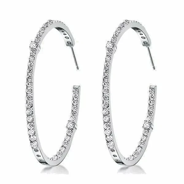 3Ct Round Cut Simulated Diamond Women's Hoop Earrings In 14k White Gold Plated
