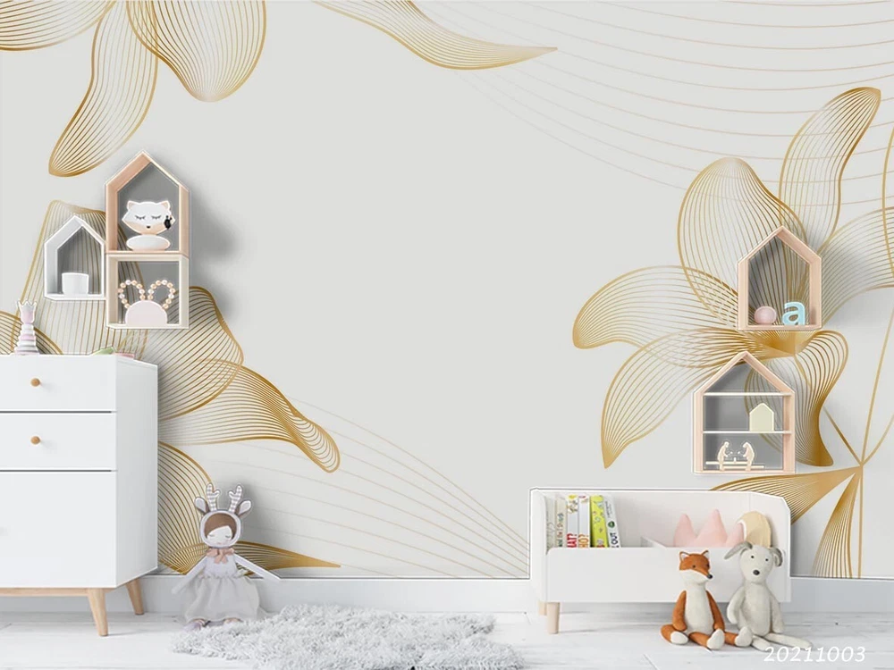 3D Abstract Gold Floral Wall Murals Wallpaper Murals Wall Sticker 151