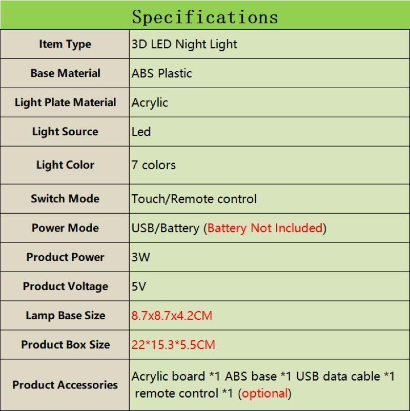 Free and fast shipping , shipping take up 1-7 Business Days 30 Day Return Accepted EASY PAYMENT via PayPal, Credit Card, PayPal Credit, Google Pay... Table Lamp LED 3d Airplane Plastic Modern Multicolor Small Touch USB Novelty 3D lights are suitable for the following situations Valentine's Day present Birthday present Wedding gifts Opening ceremony Commemorative award Advertising promotion Business gift Public relations planning Holiday gift Employee Benefits REVIEWS The product came very well packaged. I'm very happy. thank you for everything. Seller strongly recommended. This is great! I definitely recommend! Product looks amazing Delivery was fast. Excellent seller, great communication. I advise everyone to buy it!