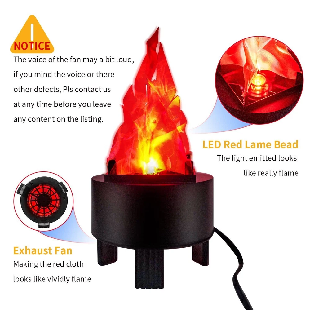 3D Artificial Fake Fire Flames - 110V LED Effect Light Electric Fake Campfire Lamp, Realistic Simulated Prop Flame Lamp for Christmas/Halloween/New Year/Indoor/Stage/Party/ Night Club Decorations 【3D FLICKERING FIRE FLAME LIGHT】-- The bottom fan matches the red LED spotlight, presenting a realistic silk flame effect without the safety risk of a real flame. It creates the illusion of real flames and flickering. 【SAFE & HIGH QUALITY MATERIALS】-- The fake campfire shell is mainly made of high-quality ABS plastic, which is safe, sturdy, durable and environmentally friendly. The flame lamp is equipped with a fan inside to make the flame effect more realistic. 【EASY TO USE】--LED desk flame lamp does not need battery power supply. Simply take out the flame lamp from the box and place it on the mounting seat you want, insert the 110V plug into the corresponding slot, and Can produce realistic burning flames. 【APPLICABLE OCCASIONS】--The flame simulation lamp is very suitable for outdoor or indoor use, such as disco, KTV, bar, stage, club, party, nightclub, etc. It is also suitable for Halloween, Christmas, etc. to create the event theme fantasy and party atmosphere you want. 【ENERGY SAVING & PORTABLE】--The artificial effect light has low power consumption, stable lighting performance and long service life. Base diameter: 12cm/4.7in, base height: 10cm/3.93in, flame height: 13cm/5.1in. The lightweight and compact design makes it easy to carry and store in a cabinet. Do you want to make your Halloween, Christmas, New Year, etc. full of festive atmosphere? Our 3D flickering flame fire is made of high-quality materials, with low power consumption, stable lighting performance and long service life. No battery, easy to use, almost no need to assemble. The compact size fits most places. Suitable for stage performances, bars, pubs, nightclubs, backyards, parks, shops, celebrations, festivals, etc. Features: Made of sturdy ABS plastic, LED lights are lit, low power consumption, stable lighting performance and long service life. It is easy to use, almost no assembly, no battery, just insert the 110V US plug into the corresponding slot. The light and compact design makes it easy to carry and store in a cabinet, and it is convenient to take out when needed. Very suitable for Halloween, Christmas, discos, dance halls, KTV, bars, stages, clubs, parties, etc. Specifications: Material: ABS + Fabric Weight: 280g Base Diameter: 12cm/4.7in Base Height: 10cm/3.9in Flame Height: 13cm/5.1in Rated Power: 3W Rated Voltage: 110V Light Source: 1 Pcs Red LED Light NOTE: This product is not waterproof, please stay away from water sources to avoid line damage! When powering on, please do not put your hands into the rotating fan blades, so as not to injure your hands! Due to the difference in fire effect lighting and screen settings, the color of the product may be slightly different from the picture, please refer to the actual product. What you get: 1 x LED Flame Effect Light Welcome to WIHQIBVCE, may you have a pleasant shopping experience! If you have any problems about our products, please feel free to contact us at any time ! Shipping We offer FREE shipping on all orders! We ship within Three business days of payment, usually sooner. We use a selection of shipping services such as UPS, FedEx, USPS etc. We only ship to the lower 48 states, no APO/FPO addresses or PO Boxes allowed. Local pickups and combined shipping options are not provided at this time. Return You can return a product for up to 30 days from the date you purchased it. Any product you return must be in the same condition you received it and in the original packaging. Please keep the receipt. Feedback Customer satisfaction is very important to us. If you have any problem with your order, please contact us and we will do our best to make you satisfied. Contact Us If you have any queries, please contact us via ebay. We usually respond within 24 hours on weekdays. Please visit our eBay store to check out other items for sale! Thank you for shopping at our store. Please pay as soon as possible after winning an auction, as that will allow us to post your item to you sooner!