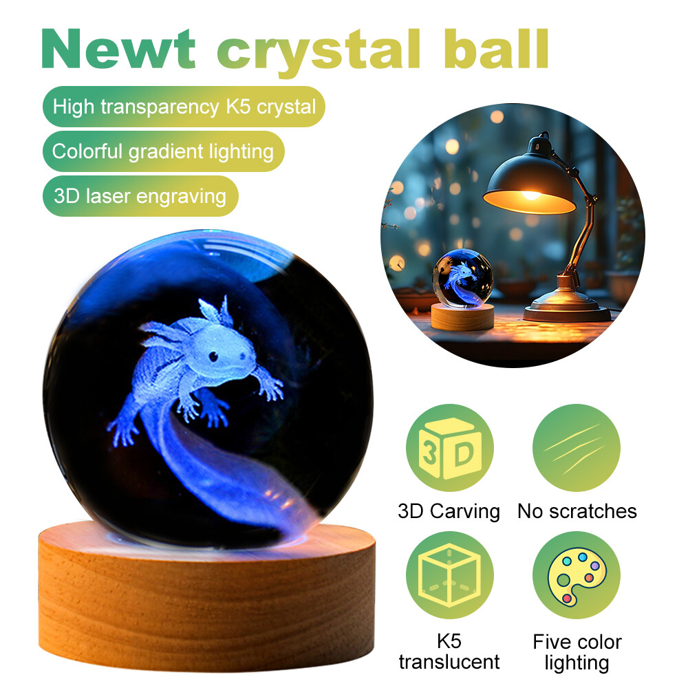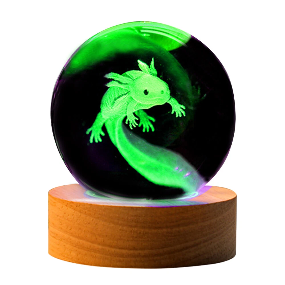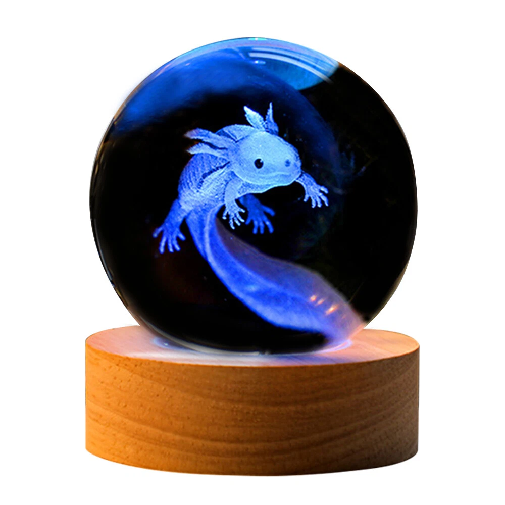 3D Axolotl Crystal Ball Night Light Colorful Laser Engraved Birthday Gift for Home Decor