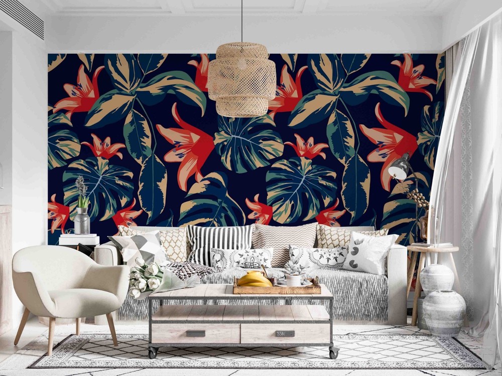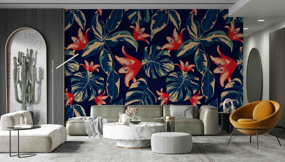 $ 15.013D Blue Black Plants Leaves Pattern Wall Murals Wallpaper Murals Wall Sticker