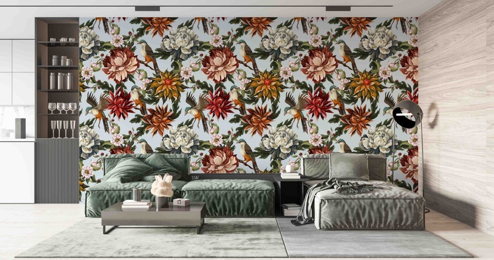 3D Flowers Leaves Watercolor Pattern Wall Murals Wallpaper Murals Wall Sticker
