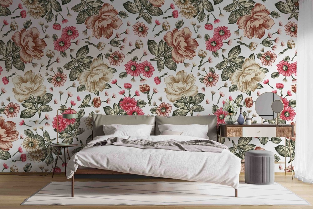 $ 15.013D Baroque Style Flowers Pattern Wall Murals Wallpaper Murals Wall Sticker 32