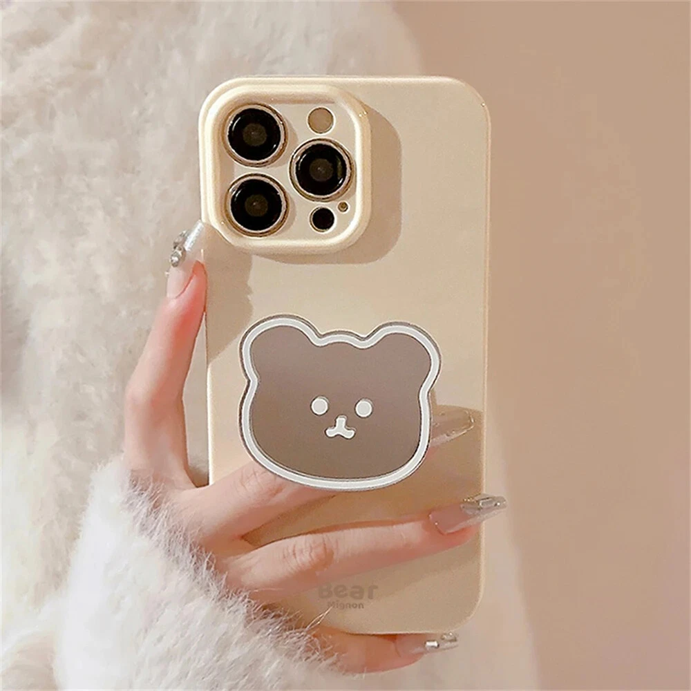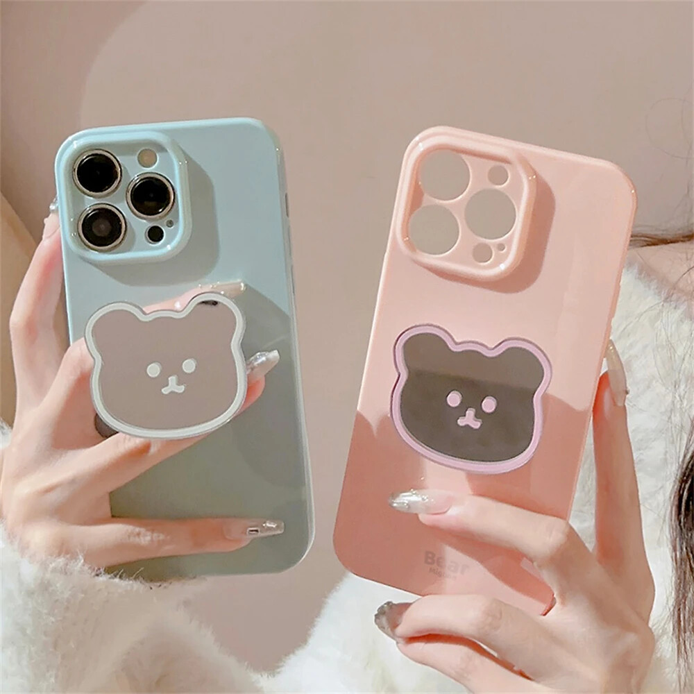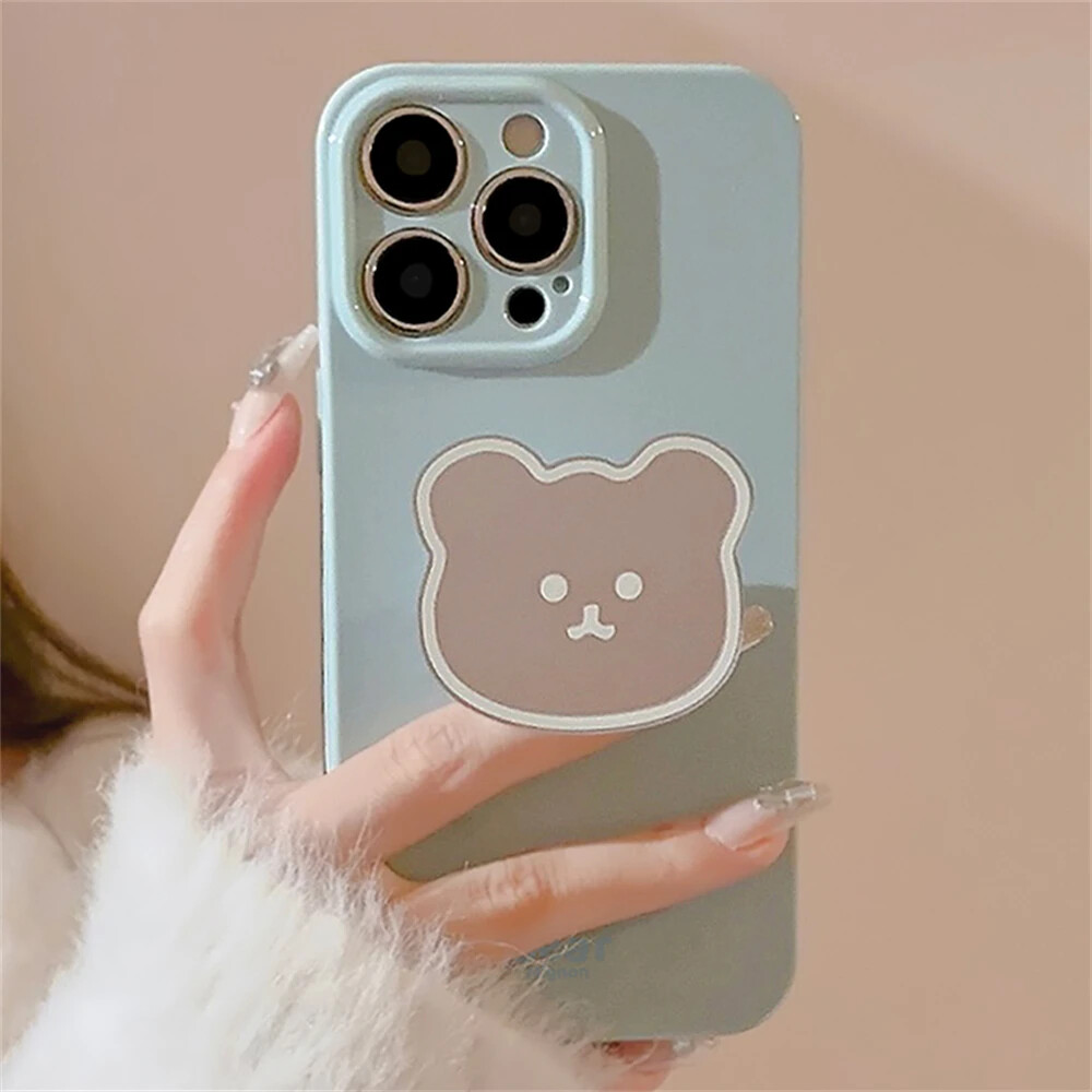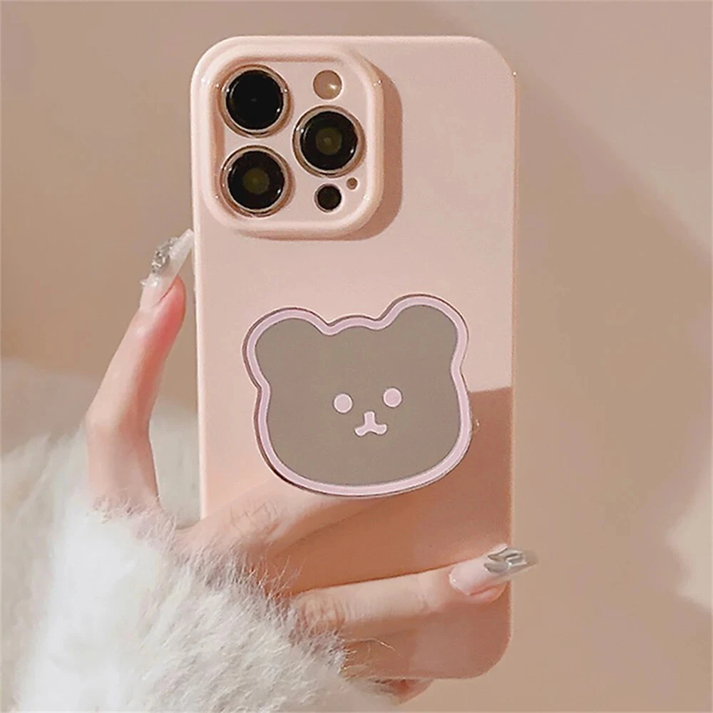 3D Bear Mirror Soft Candy Color Case for iPhone 14 ProMax 13 12 11