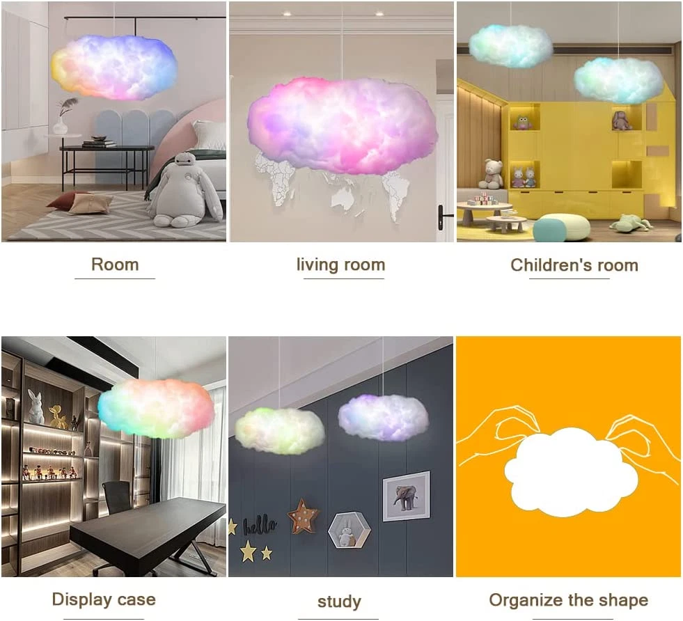 gtin13: 726084254527 Is Cordless?: No Light Source Type: LED Item Package Quantity: 1 Voltage: 5 Volts Recommended Uses For Product: Decoration Special Feature: Remote Controlled Mounting Type: Ceiling Mount Batteries Required?: No Batteries Included?: No Specific Uses For Product: Home decoration, Parties, Events Brand: Does not apply Part Number: VES5618 Product Dimensions: 11.8"D x 23.6"W x 11.8"H Age Range (Description): Adult, Kid Type: Does not apply Number of Pieces: 2 Material: Metal Included Components: Remote Control Water Resistance Level: Waterproof Wattage: 5 watts Number of Items: 2 Connectivity Technology: Bluetooth, USB Power Source: plug-in_electric Is Electric: Yes Style: Modern Shade Height: 11.8 Inches Control Method: Remote Controller Type: app Installation Type: Ceiling Mount Item Weight: 0.01 Pounds Special Features: Remote Controlled Indoor/Outdoor Usage: Indoor UPC: 726084254527 Shade Color: White Light Shape: cloud-like Connectivity Protocol: Bluetooth Lighting Method: Adjustable Shade Material: Cotton Color: Multicolor Lamp Type: Mood Light Number of Light Sources: 360 Is Waterproof: True Switch Type: Remote Room Type: Kitchen, Bedroom Item model number: cloud-lights