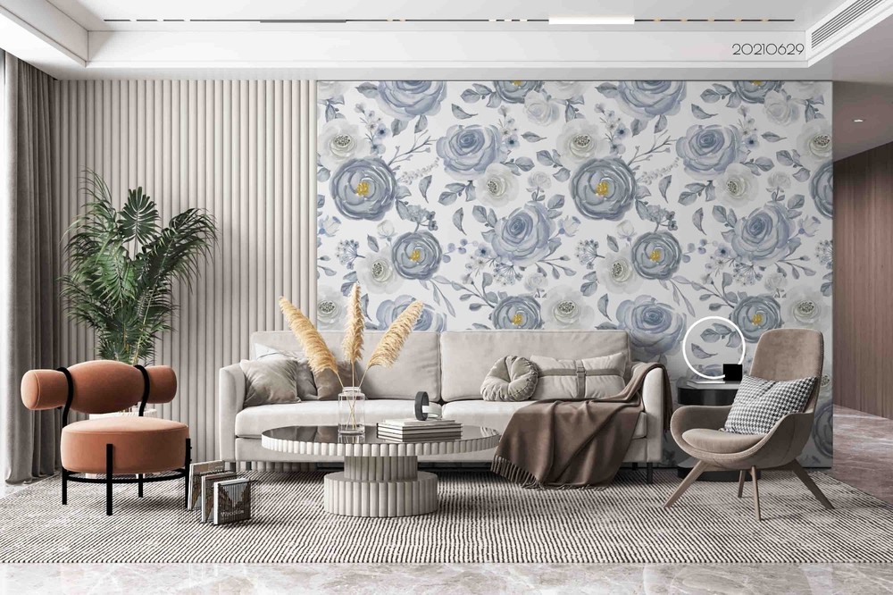 3D Flowers Flora Watercolor Pattern Wall Murals Wallpaper Murals Wall Sticker