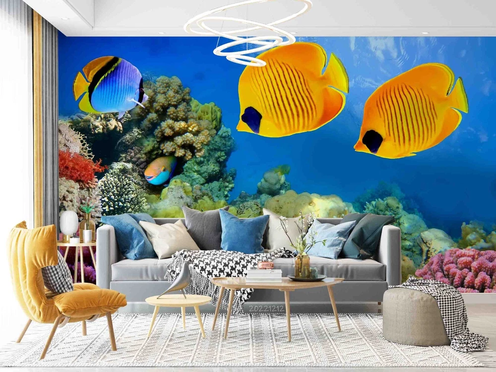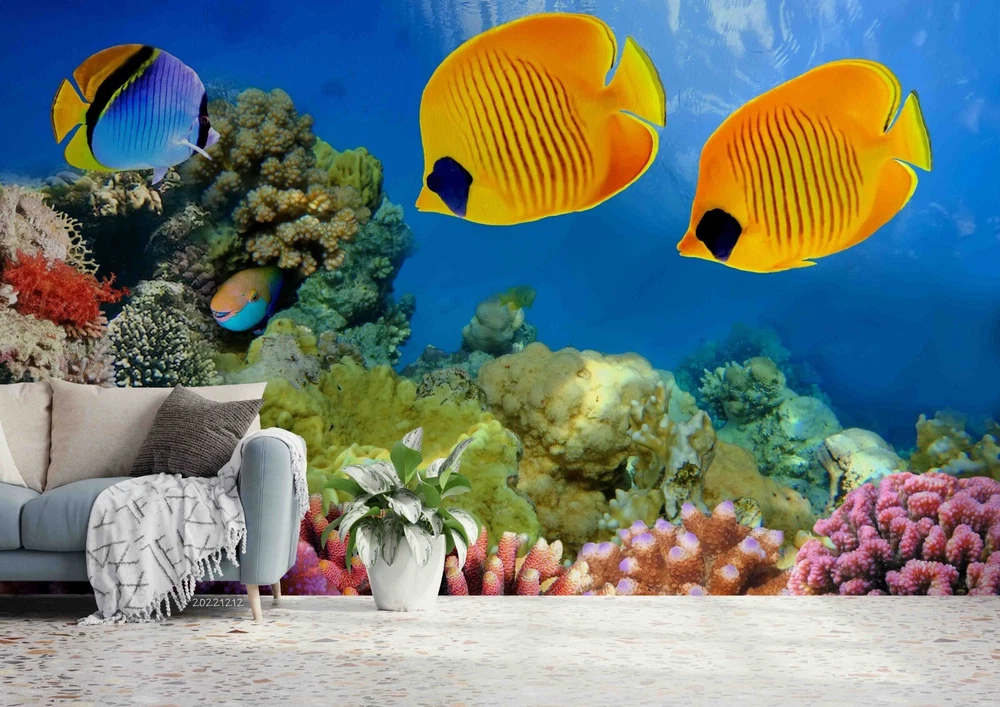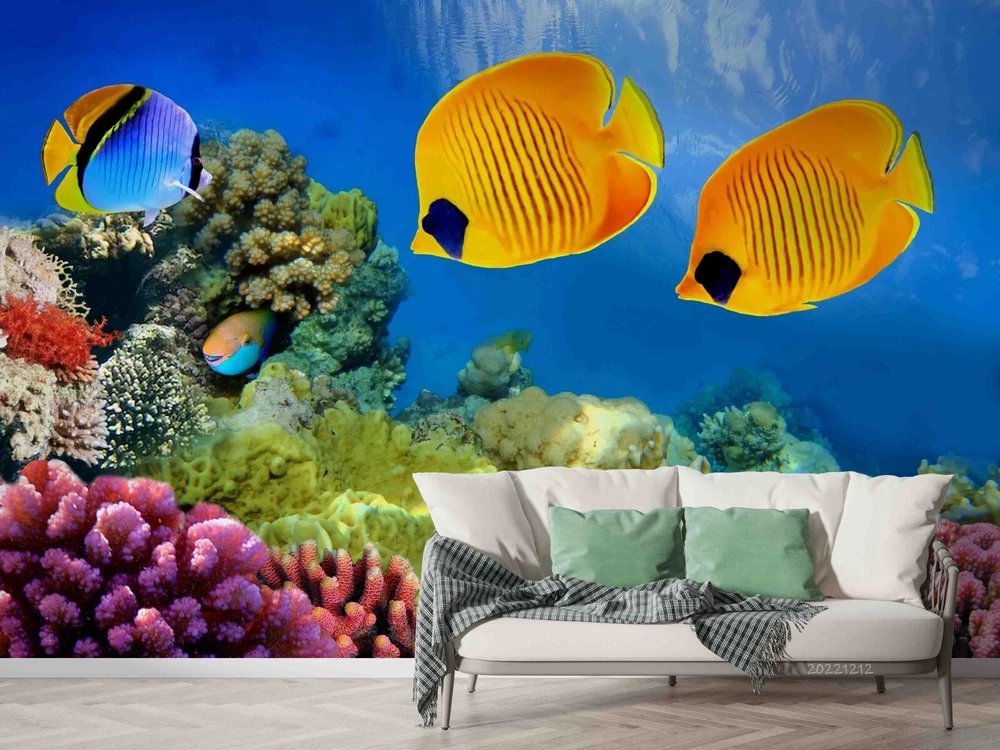 3D Blue Underwater World Coral Fish Wall Murals Wallpaper Murals Wall Sticker