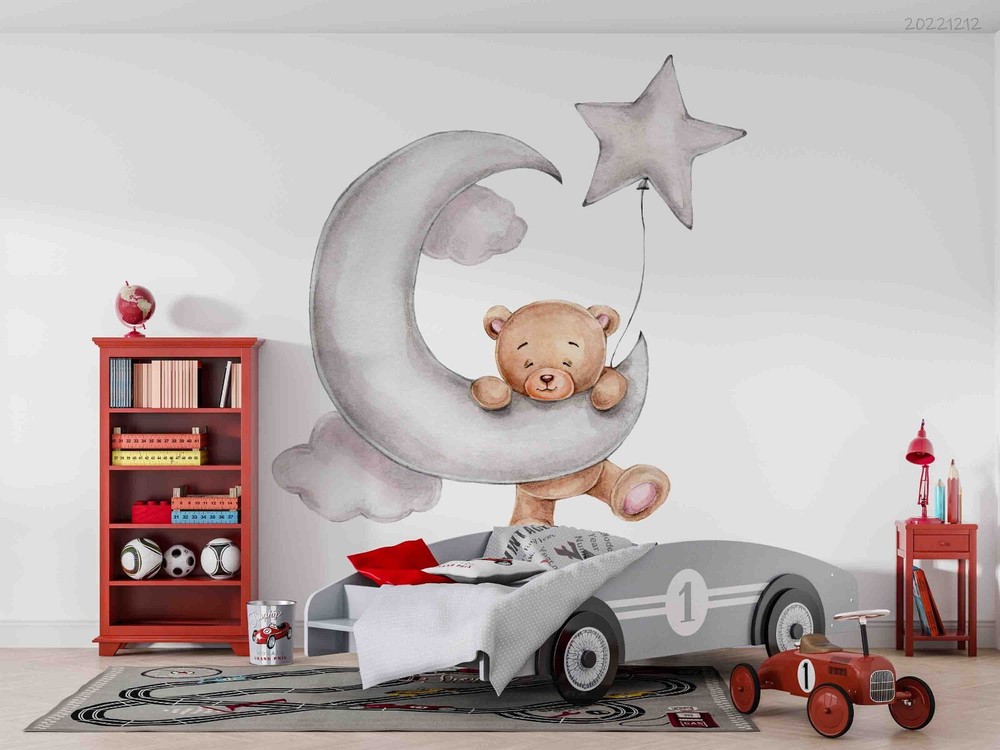 3D Cartoon Animal Bear Cloud Kids Wall Murals Wallpaper Murals Wall Sticker
