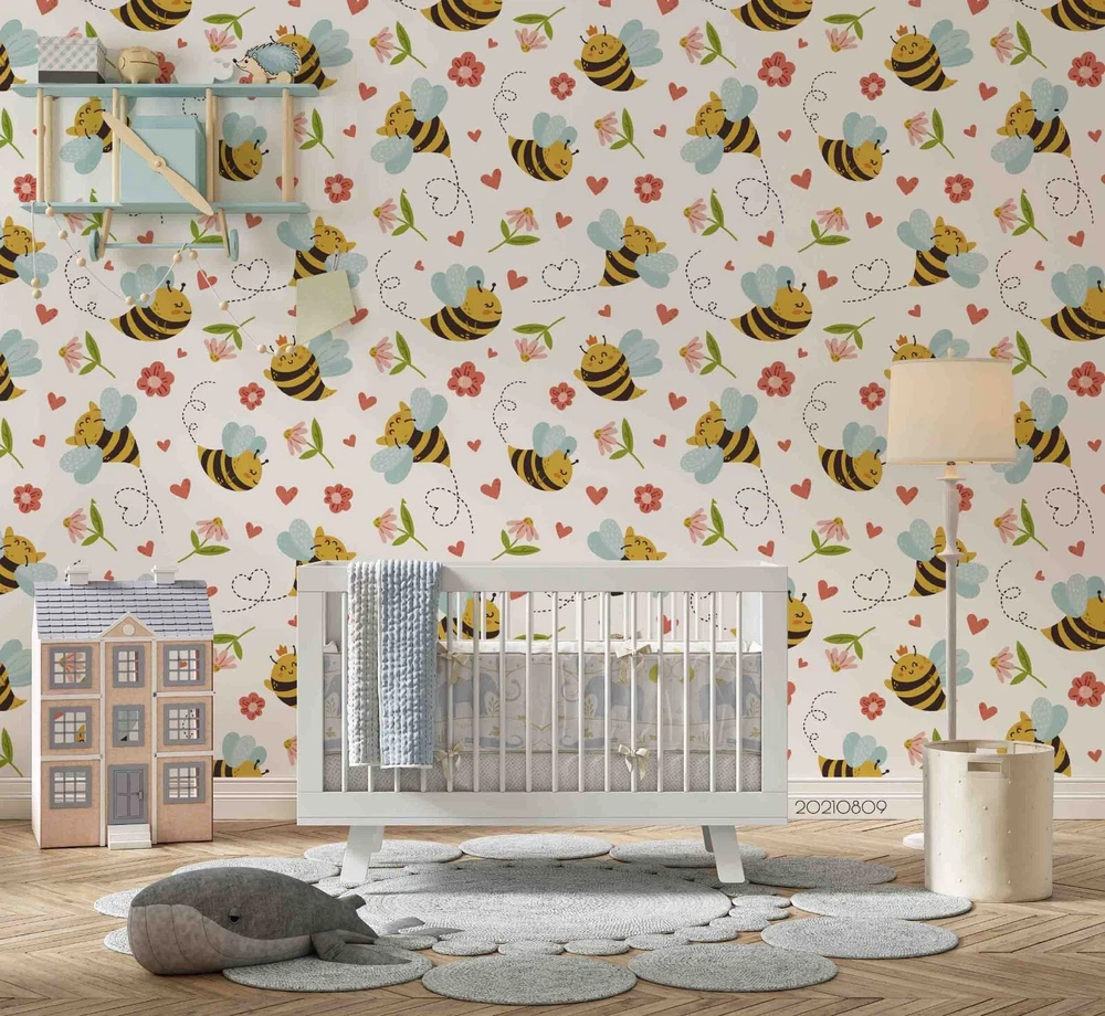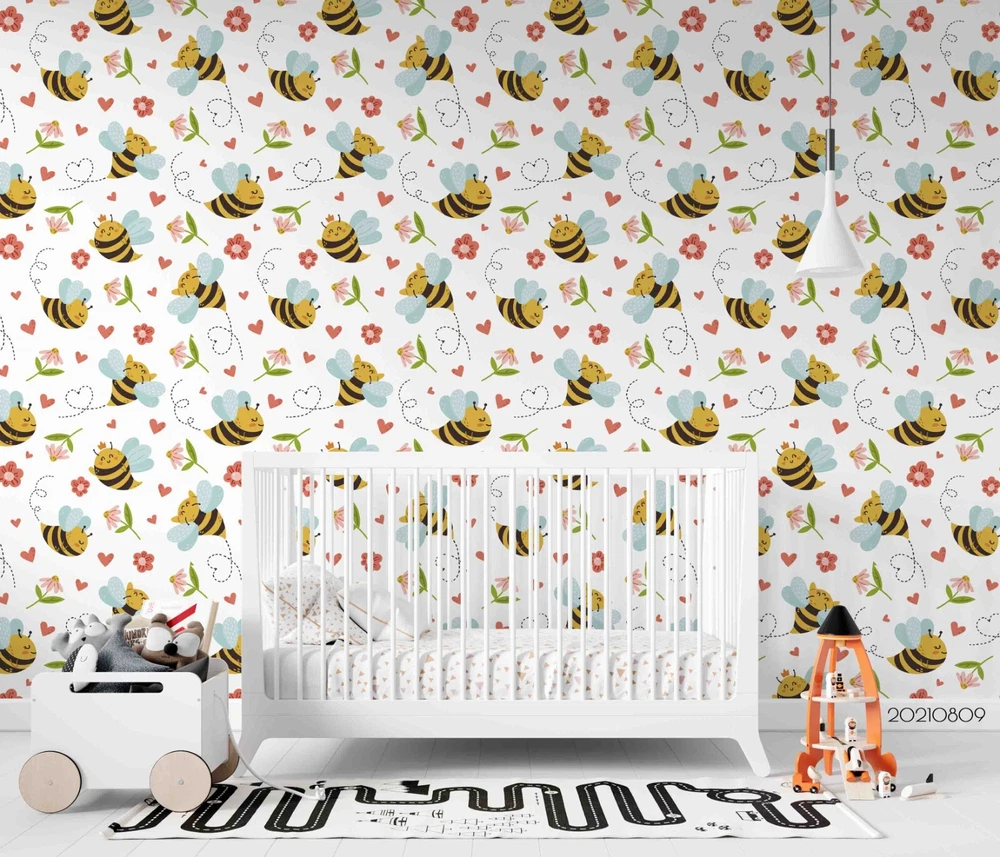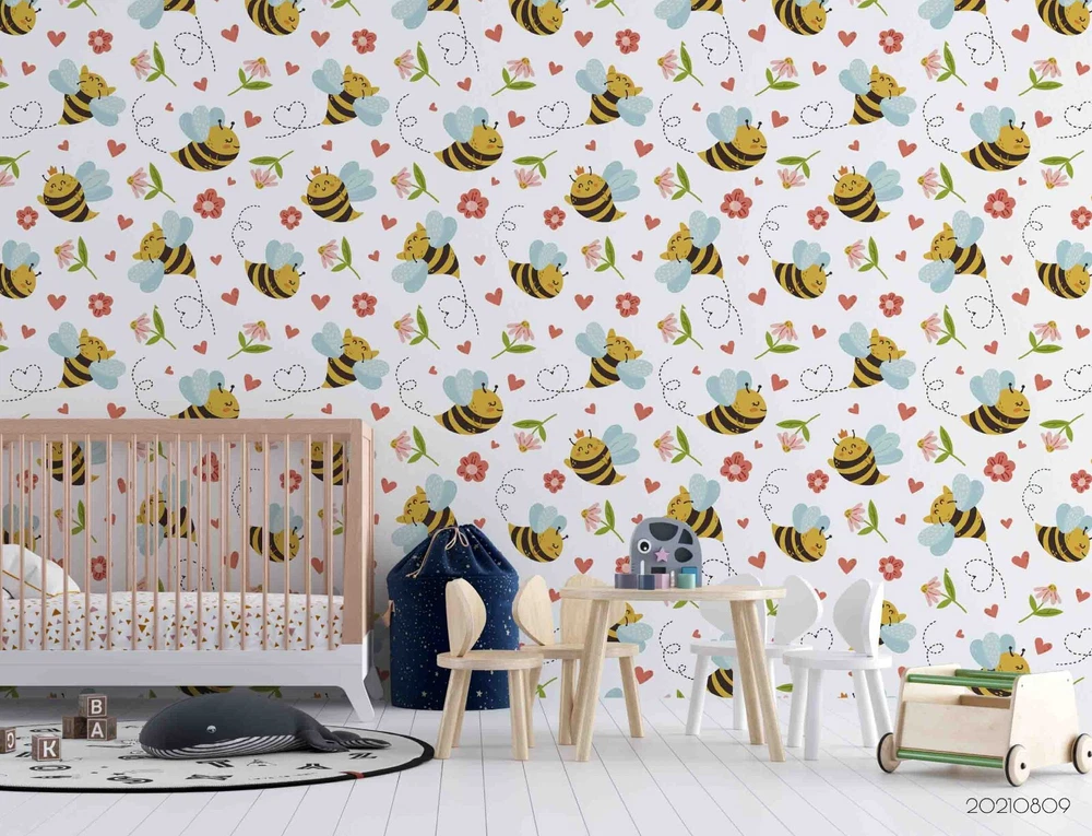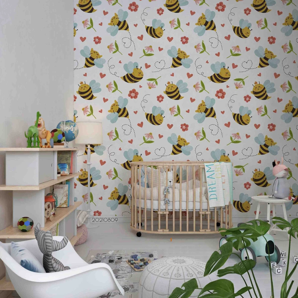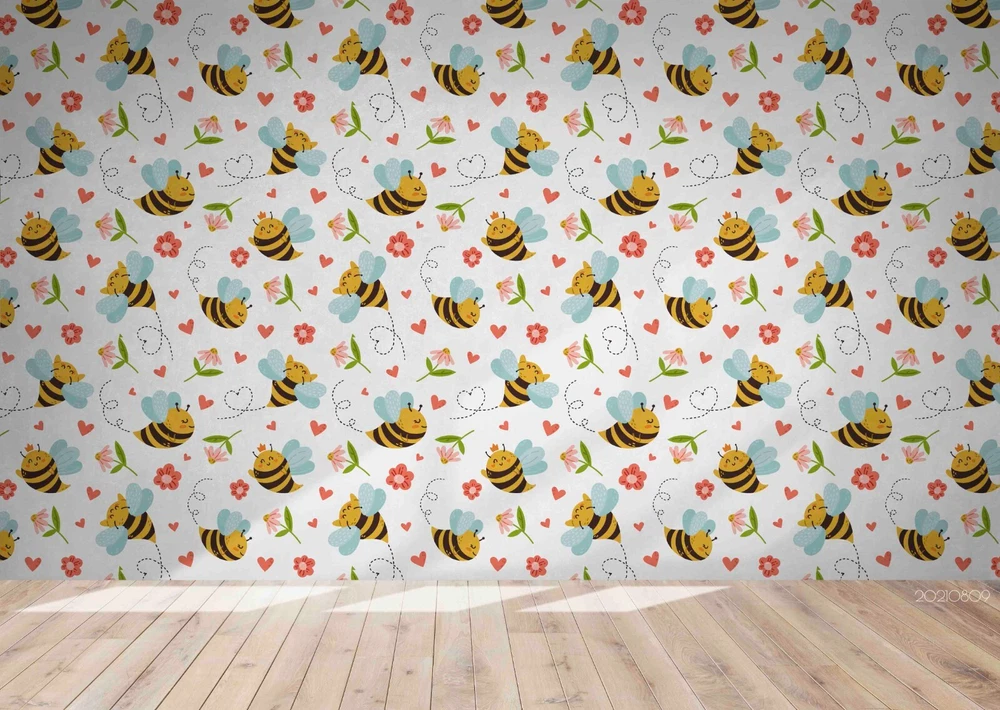 3D Cartoon Animal Bee Floral Wall Murals Wallpaper Murals Wall Sticker