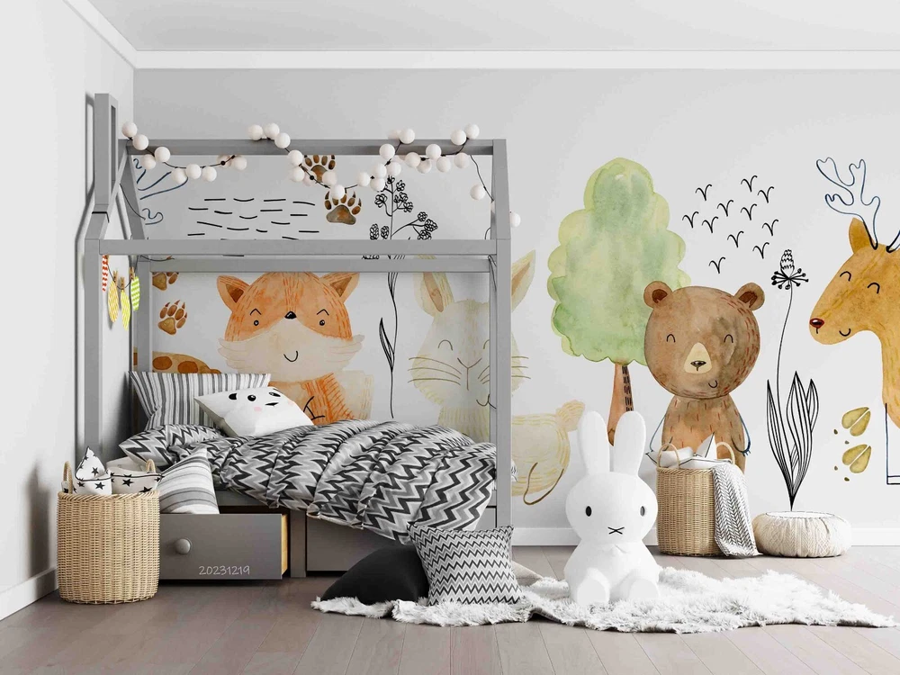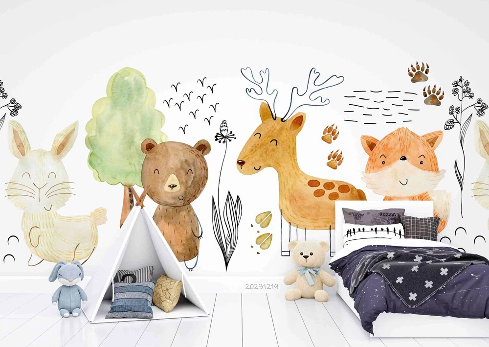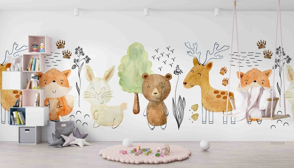 3D Cartoon Animal Forest Fox Bear Wall Murals Wallpaper Murals Wall Sticker