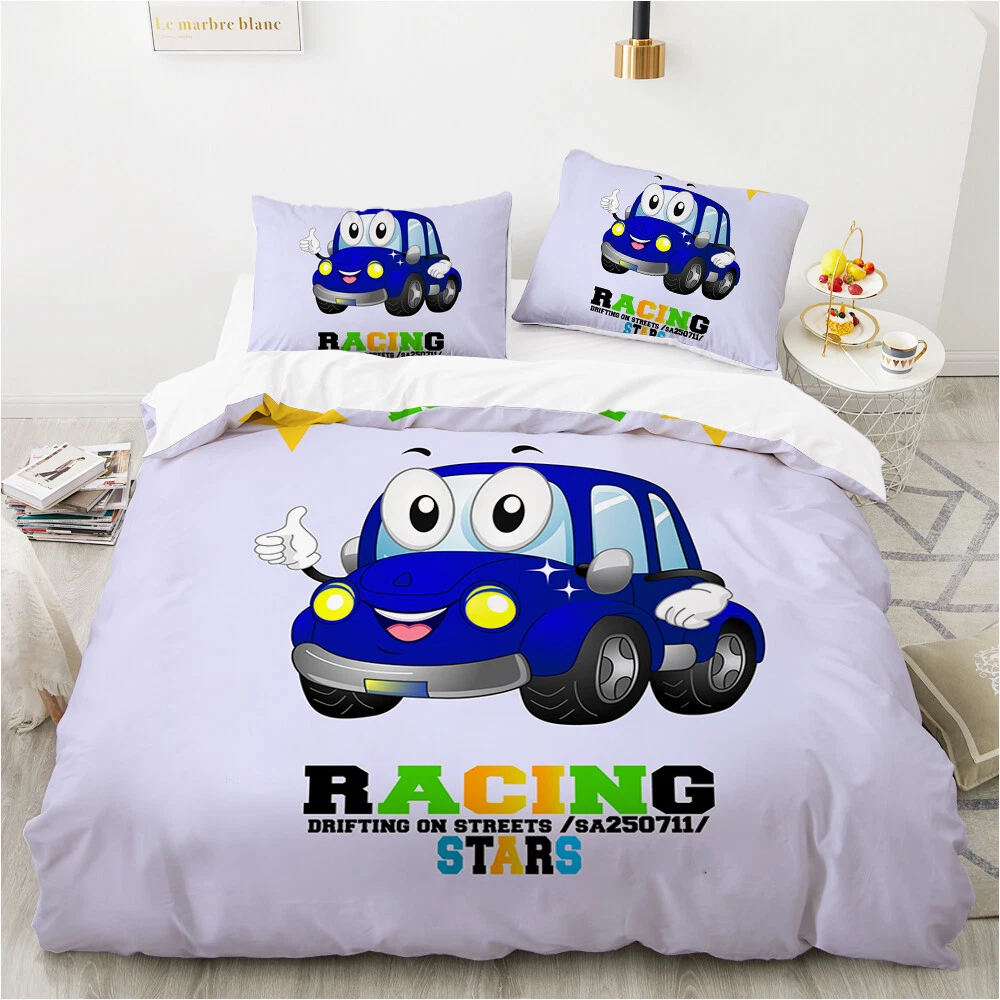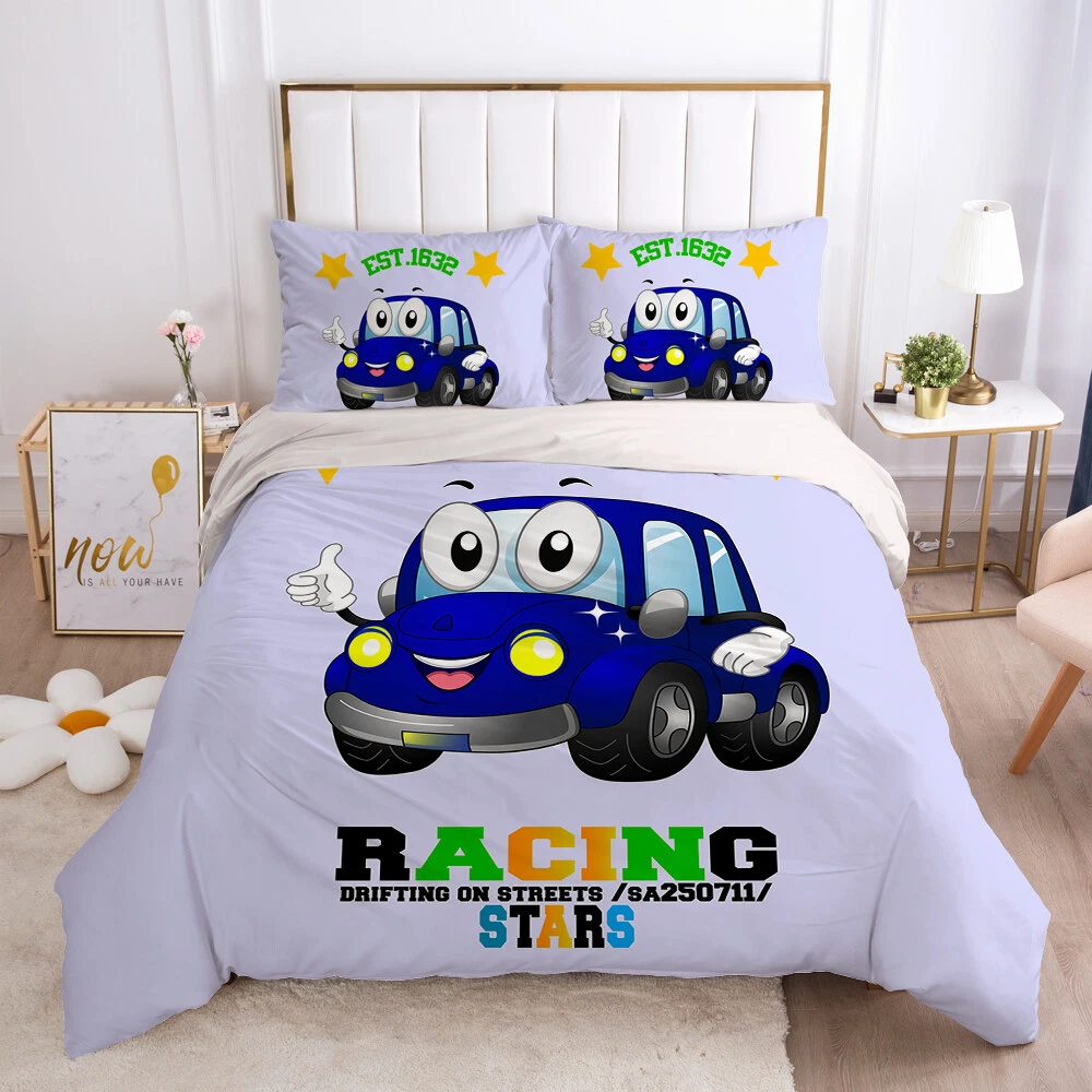 3D Cartoon Car ZHUA006 Bed Pillowcases Quilt Duvet Cover Set Queen King Zoe