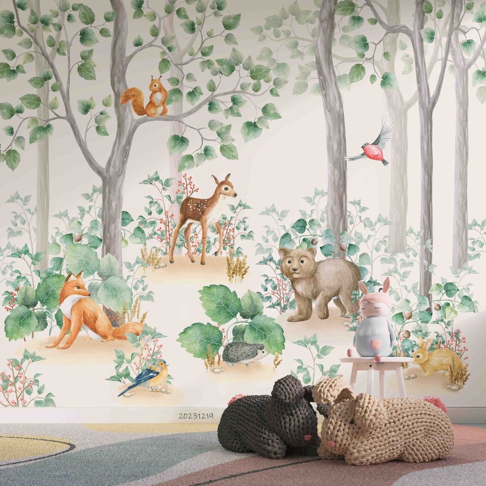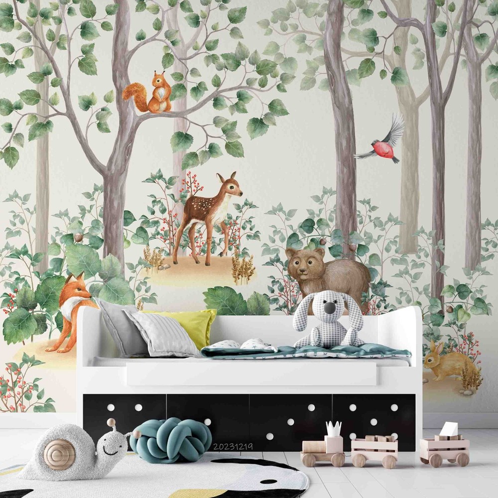 3D Cartoon Forest Fox Elk Wallpaper Murals Sticker for Walls