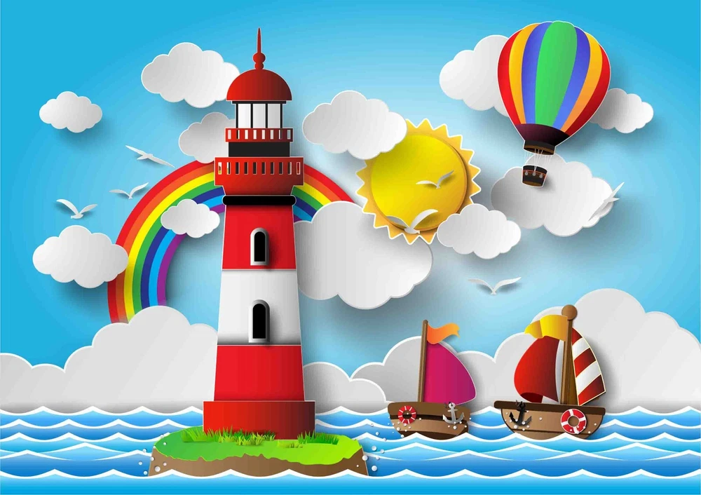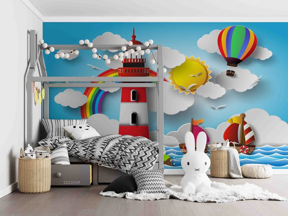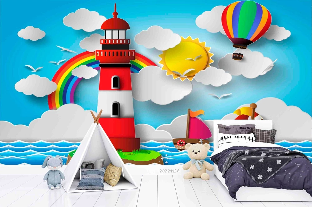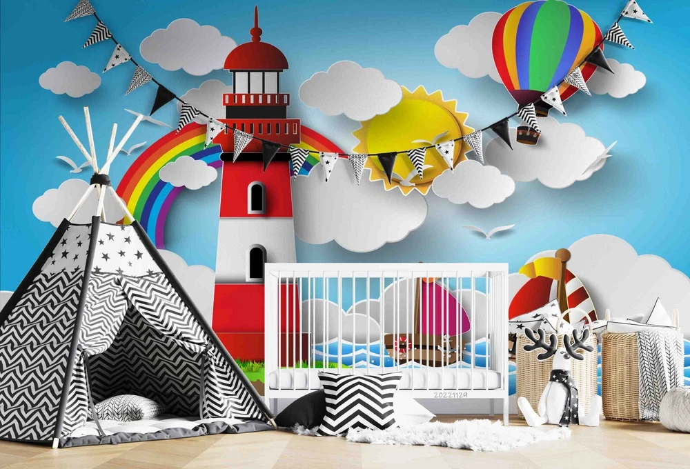 3D Cartoon Sky Cloud Sea Lighthouse Wall Murals Wallpaper Murals Wall Sticker
