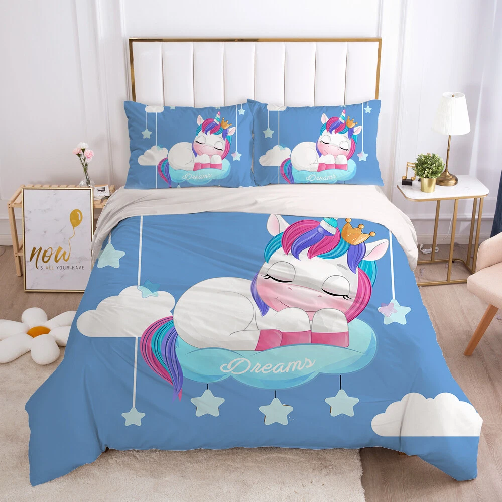 3D Cartoon Unicorn ZHUA057 Bed Pillowcases Quilt Duvet Cover Set Queen King Zoe