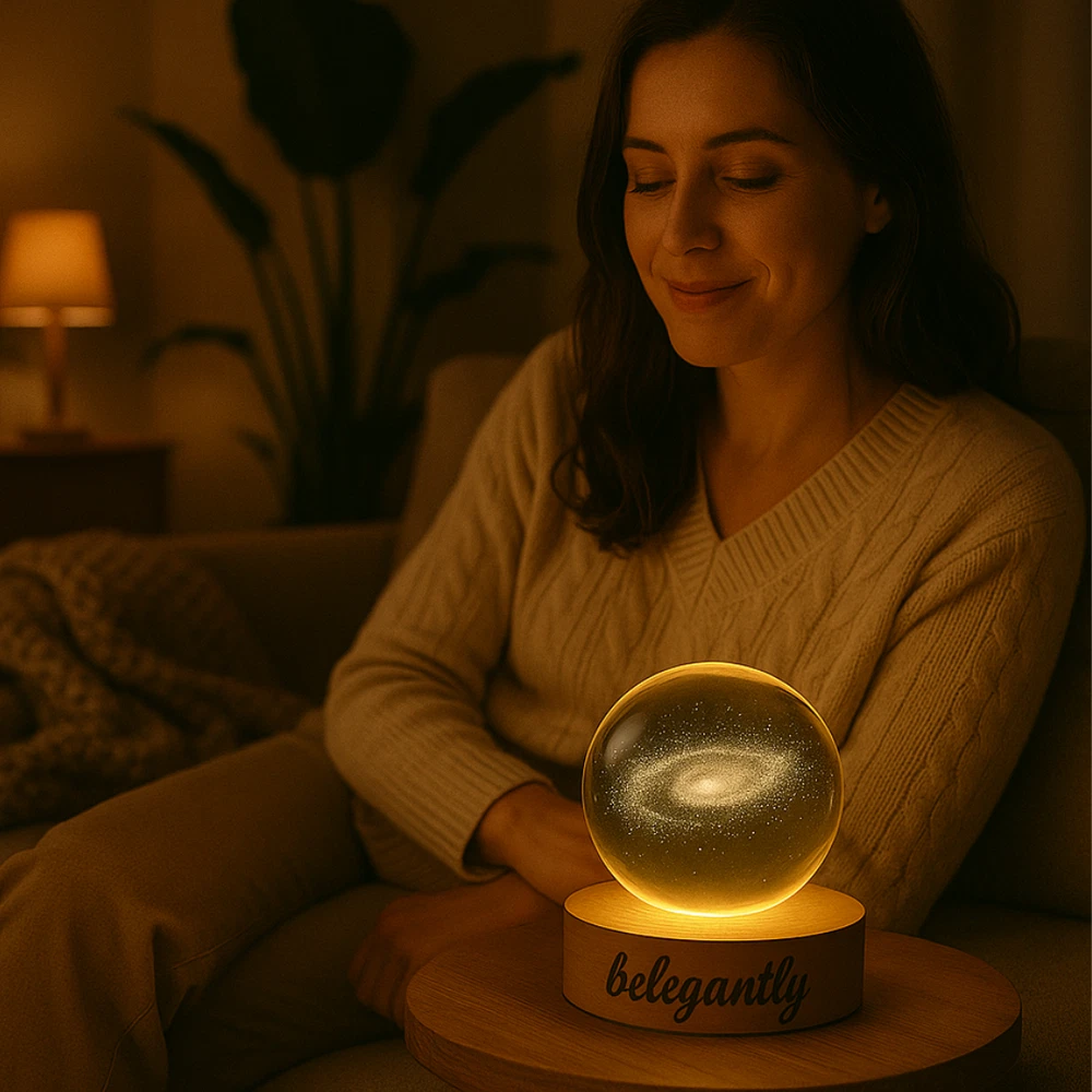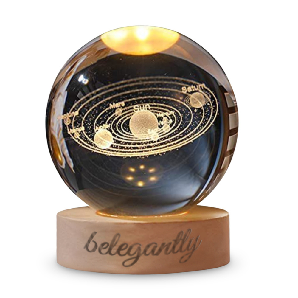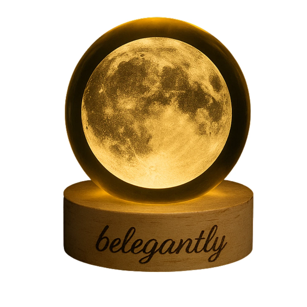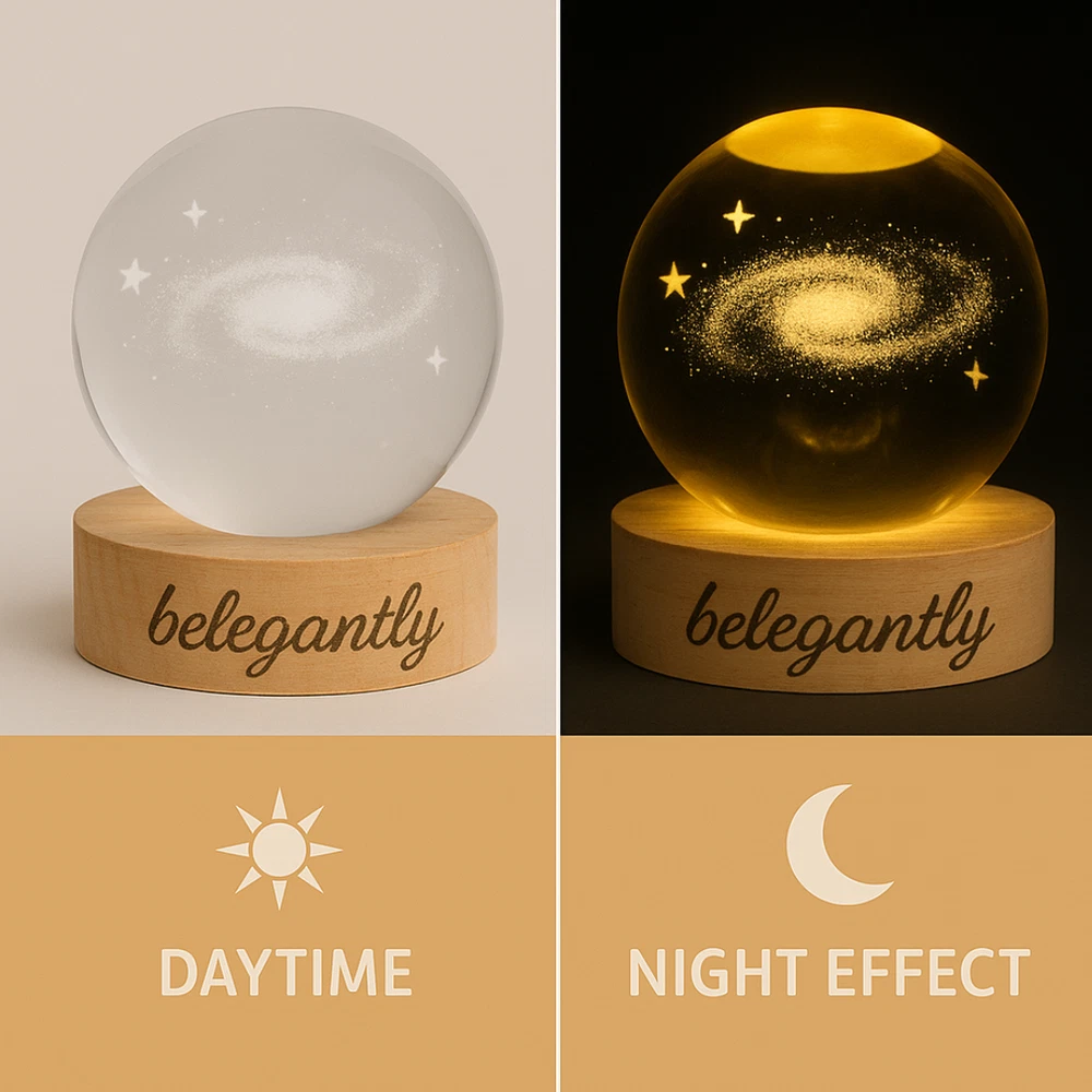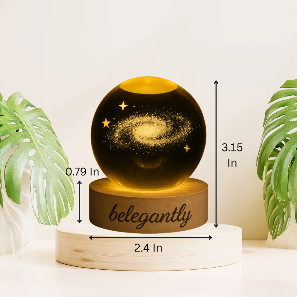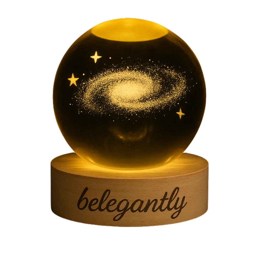Belegantly™ 3D Crystal Ball Lamp – Galaxy, Moon & Planet Projection Embrace the beauty of the cosmos with the Belegantly-designed 3D Crystal Ball Lamp — a luxurious fusion of art and light. Featuring a mesmerizing galaxy, moon, and planet projection, this crystal lamp transforms any space into a celestial sanctuary. Crafted from premium-quality crystal , this lamp offers both elegance and durability. Its compact design and USB-powered base make it effortless to set up on desks, nightstands, or shelves. Whether you're creating a peaceful atmosphere for sleep or adding a stylish touch to your workspace, the soft glow and intricate design offer a serene and sophisticated ambiance . ✨ Key Features: 3D Laser-Etched Galaxy Design – Moon, planets, and stars in stunning detail Elegant Crystal Craftsmanship – Luxurious and durable design Soft Ambient Lighting – Ideal for relaxation, focus, or decor USB Powered – Convenient and energy-efficient Perfect for Home or Office – A statement piece for any setting Bring the universe into your home with the Belegantly™ Crystal Ball Lamp – where style meets starlight.