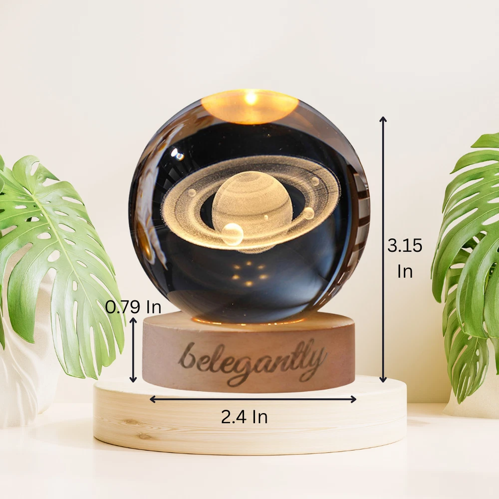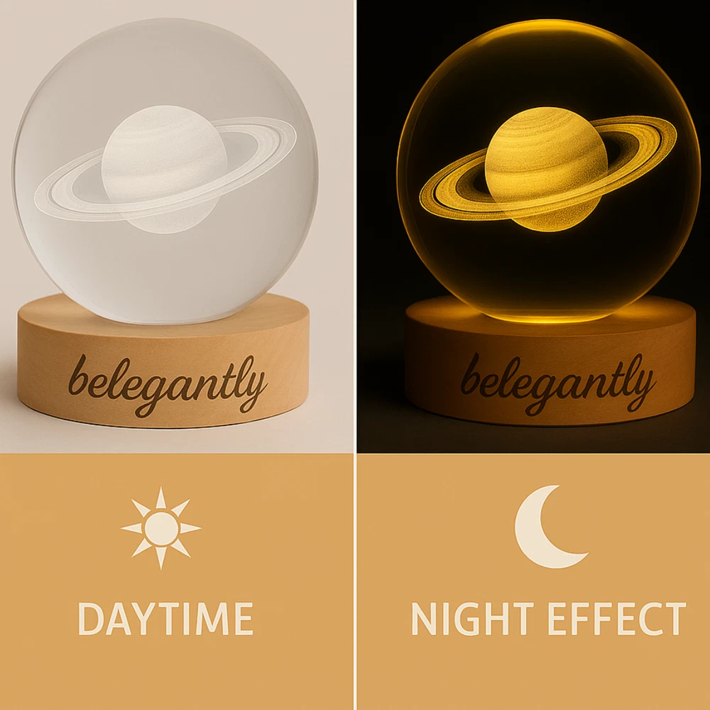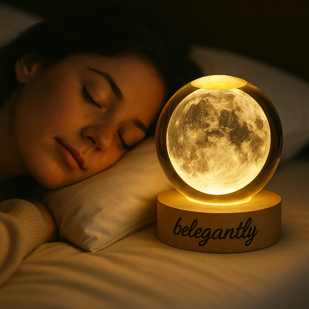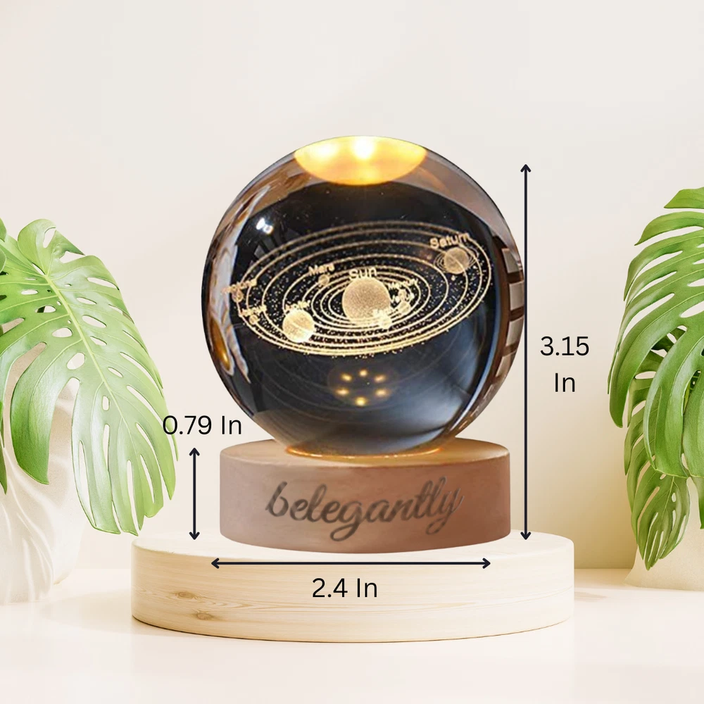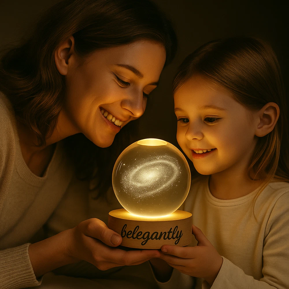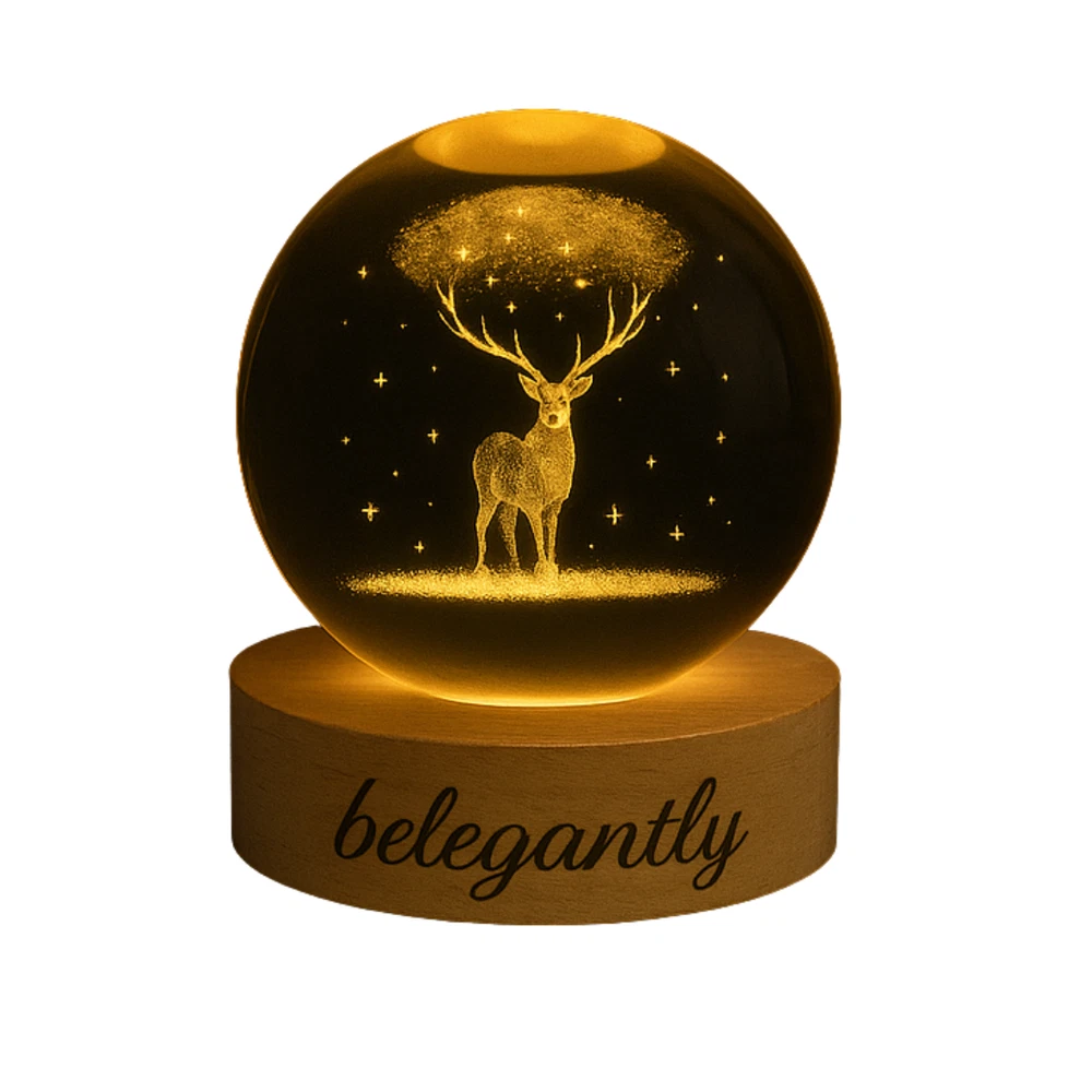 Belegantly™ 3D Crystal Ball Lamp – Galaxy, Moon & Planet Projection Embrace the beauty of the cosmos with the Belegantly-designed 3D Crystal Ball Lamp — a luxurious fusion of art and light. Featuring a mesmerizing galaxy, moon, and planet projection, this crystal lamp transforms any space into a celestial sanctuary. Crafted from premium-quality crystal , this lamp offers both elegance and durability. Its compact design and USB-powered base make it effortless to set up on desks, nightstands, or shelves. Whether you're creating a peaceful atmosphere for sleep or adding a stylish touch to your workspace, the soft glow and intricate design offer a serene and sophisticated ambiance . ✨ Key Features: 3D Laser-Etched Galaxy Design – Moon, planets, and stars in stunning detail Elegant Crystal Craftsmanship – Luxurious and durable design Soft Ambient Lighting – Ideal for relaxation, focus, or decor USB Powered – Convenient and energy-efficient Perfect for Home or Office – A statement piece for any setting Bring the universe into your home with the Belegantly™ Crystal Ball Lamp – where style meets starlight.
