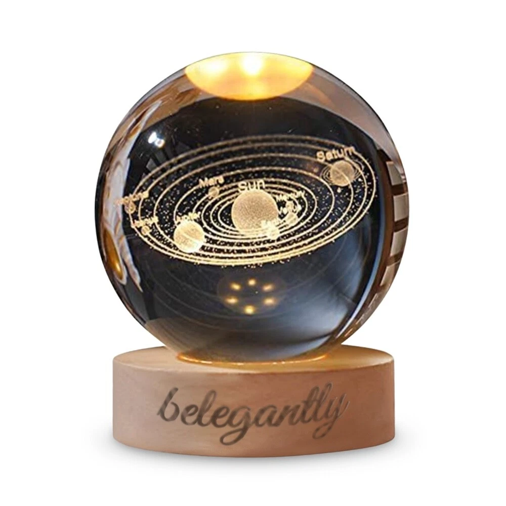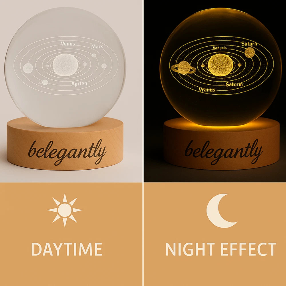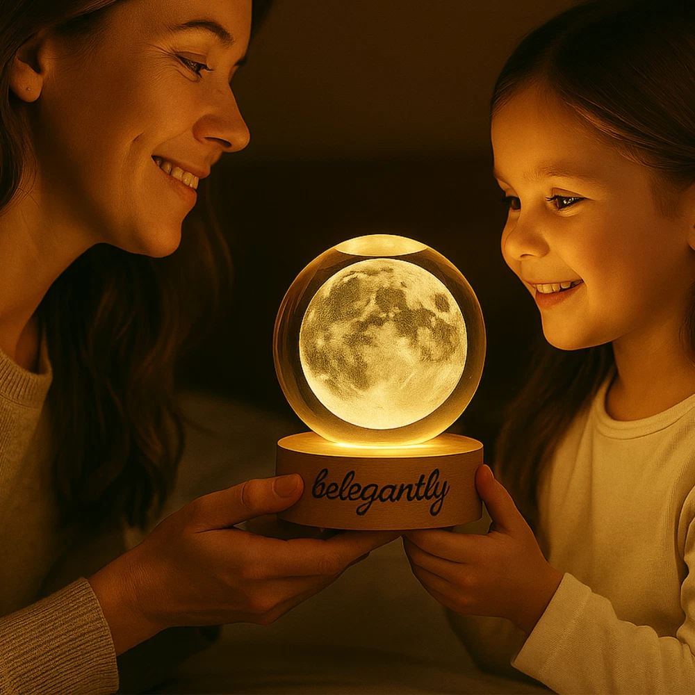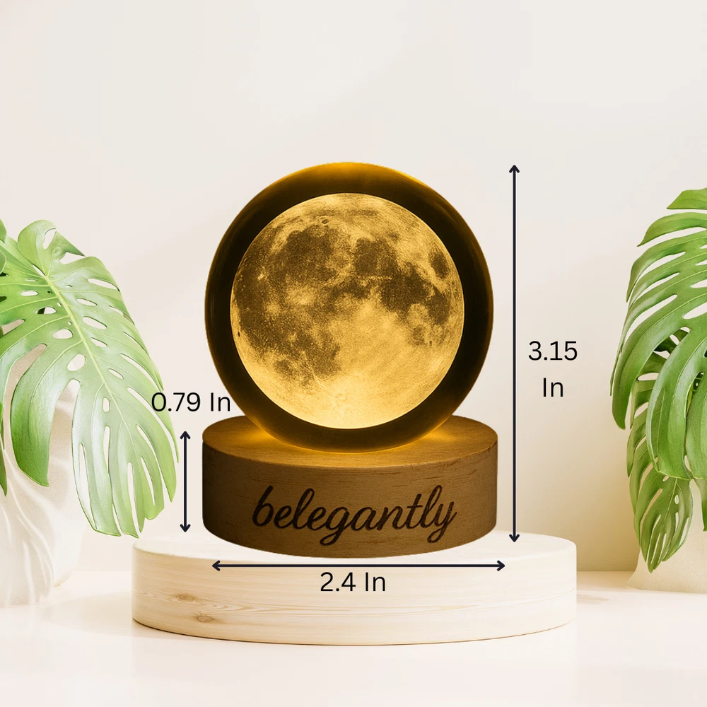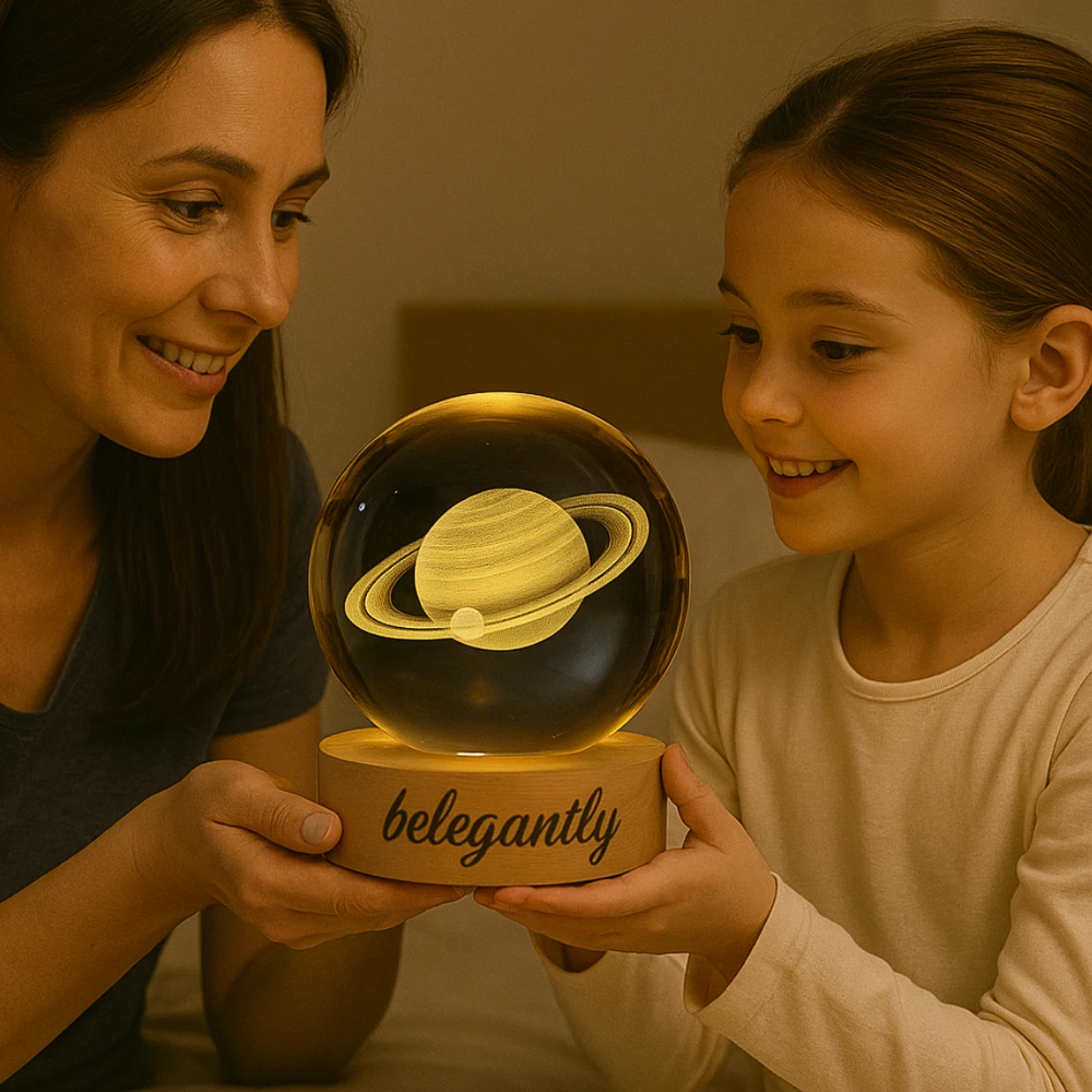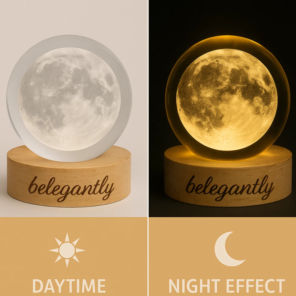 Belegantly™ 3D Crystal Ball Lamp – Galaxy, Moon & Planet Projection Embrace the beauty of the cosmos with the Belegantly-designed 3D Crystal Ball Lamp — a luxurious fusion of art and light. Featuring a mesmerizing galaxy, moon, and planet projection, this crystal lamp transforms any space into a celestial sanctuary. Crafted from premium-quality crystal , this lamp offers both elegance and durability. Its compact design and USB-powered base make it effortless to set up on desks, nightstands, or shelves. Whether you're creating a peaceful atmosphere for sleep or adding a stylish touch to your workspace, the soft glow and intricate design offer a serene and sophisticated ambiance . ✨ Key Features: 3D Laser-Etched Galaxy Design – Moon, planets, and stars in stunning detail Elegant Crystal Craftsmanship – Luxurious and durable design Soft Ambient Lighting – Ideal for relaxation, focus, or decor USB Powered – Convenient and energy-efficient Perfect for Home or Office – A statement piece for any setting Bring the universe into your home with the Belegantly™ Crystal Ball Lamp – where style meets starlight.