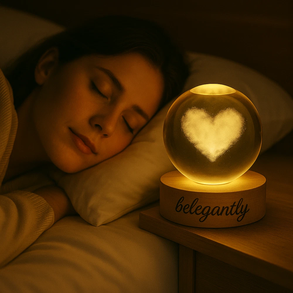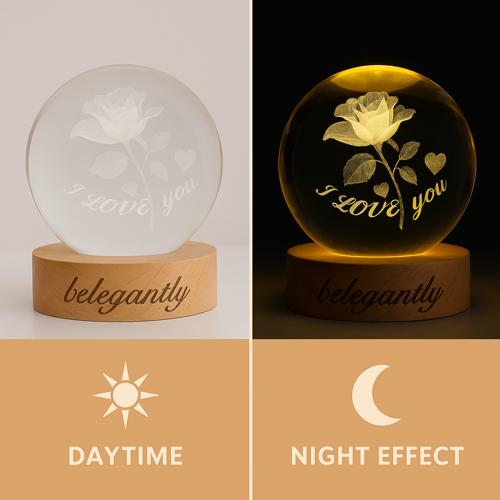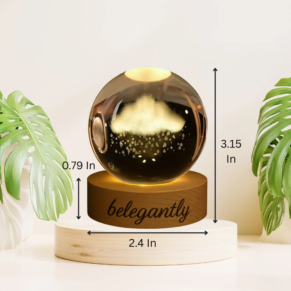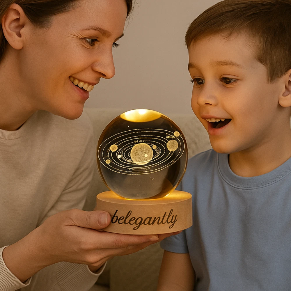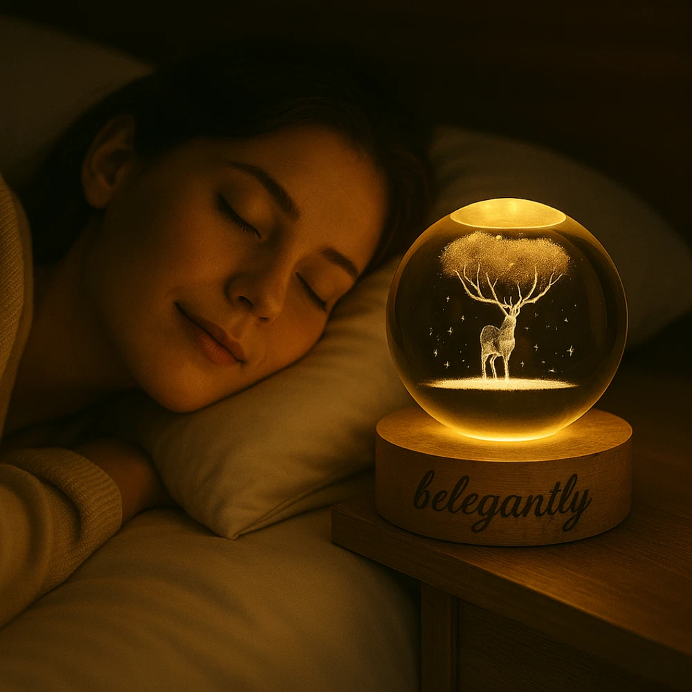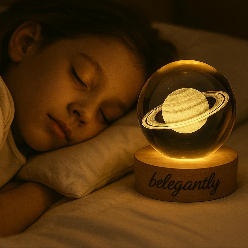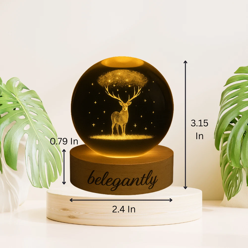 Belegantly™ 3D Crystal Ball Lamp – Galaxy, Moon & Planet Projection Embrace the beauty of the cosmos with the Belegantly-designed 3D Crystal Ball Lamp — a luxurious fusion of art and light. Featuring a mesmerizing galaxy, moon, and planet projection, this crystal lamp transforms any space into a celestial sanctuary. Crafted from premium-quality crystal , this lamp offers both elegance and durability. Its compact design and USB-powered base make it effortless to set up on desks, nightstands, or shelves. Whether you're creating a peaceful atmosphere for sleep or adding a stylish touch to your workspace, the soft glow and intricate design offer a serene and sophisticated ambiance . ✨ Key Features: 3D Laser-Etched Galaxy Design – Moon, planets, and stars in stunning detail Elegant Crystal Craftsmanship – Luxurious and durable design Soft Ambient Lighting – Ideal for relaxation, focus, or decor USB Powered – Convenient and energy-efficient Perfect for Home or Office – A statement piece for any setting Bring the universe into your home with the Belegantly™ Crystal Ball Lamp – where style meets starlight.