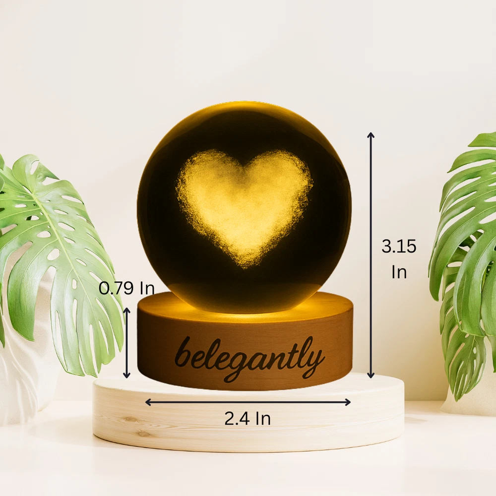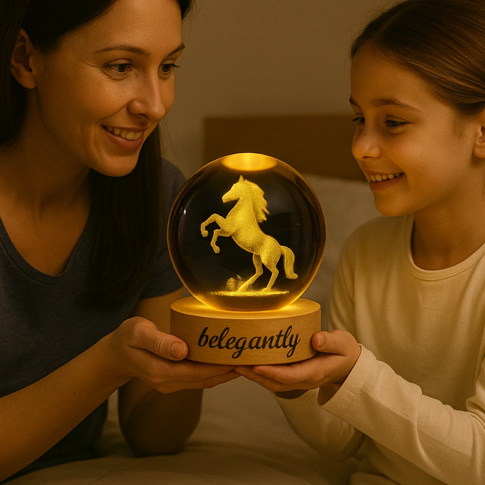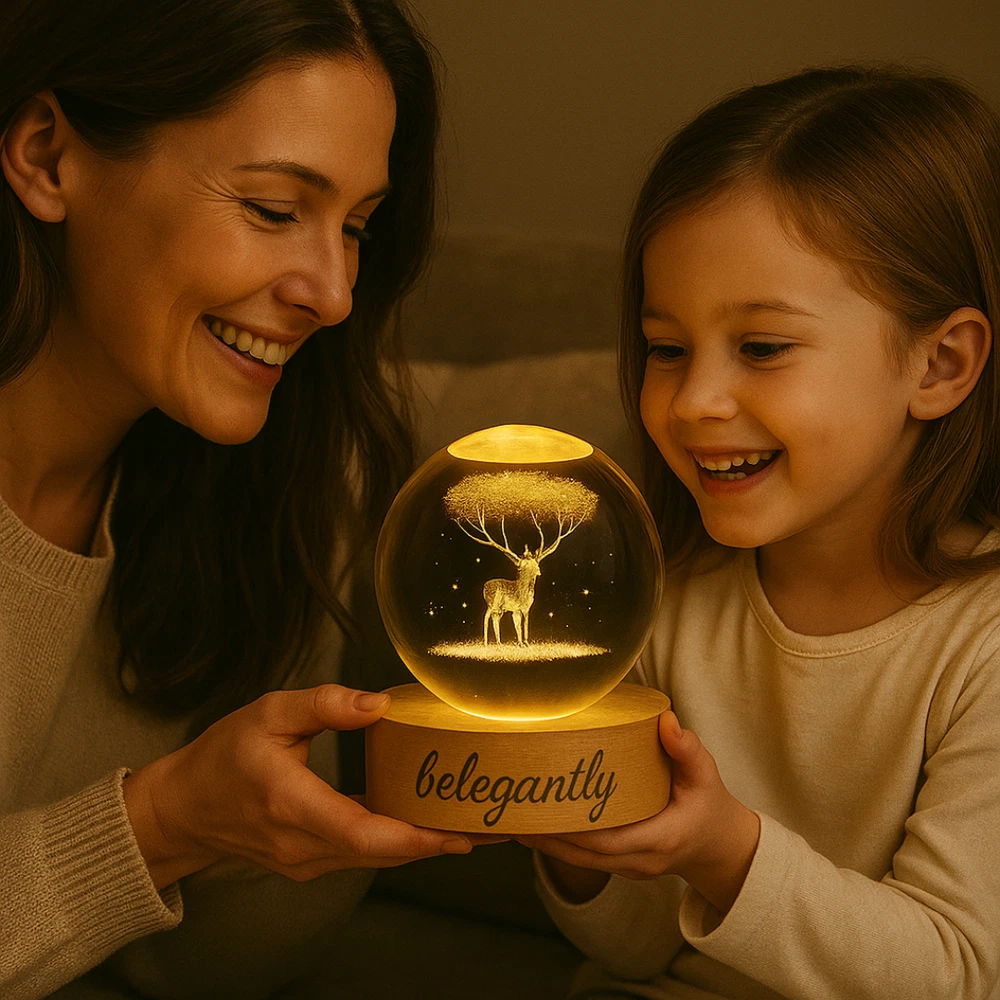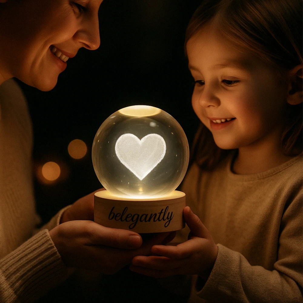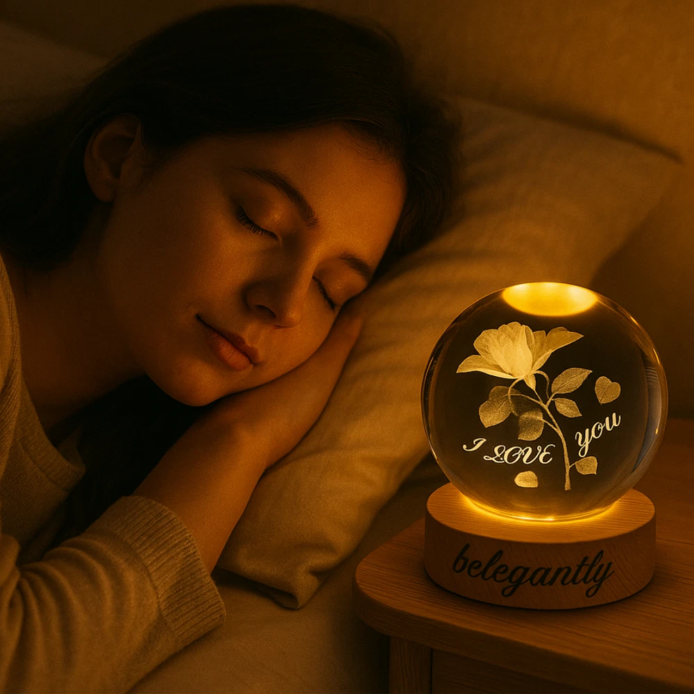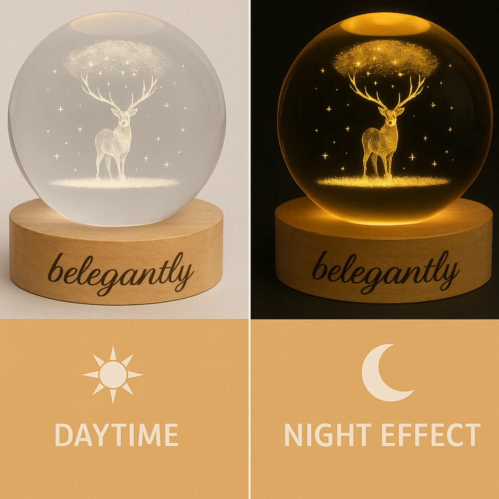 Belegantly™ 3D Crystal Ball Lamp – Galaxy, Moon & Planet Projection Embrace the beauty of the cosmos with the Belegantly-designed 3D Crystal Ball Lamp — a luxurious fusion of art and light. Featuring a mesmerizing galaxy, moon, and planet projection, this crystal lamp transforms any space into a celestial sanctuary. Crafted from premium-quality crystal , this lamp offers both elegance and durability. Its compact design and USB-powered base make it effortless to set up on desks, nightstands, or shelves. Whether you're creating a peaceful atmosphere for sleep or adding a stylish touch to your workspace, the soft glow and intricate design offer a serene and sophisticated ambiance . ✨ Key Features: 3D Laser-Etched Galaxy Design – Moon, planets, and stars in stunning detail Elegant Crystal Craftsmanship – Luxurious and durable design Soft Ambient Lighting – Ideal for relaxation, focus, or decor USB Powered – Convenient and energy-efficient Perfect for Home or Office – A statement piece for any setting Bring the universe into your home with the Belegantly™ Crystal Ball Lamp – where style meets starlight.